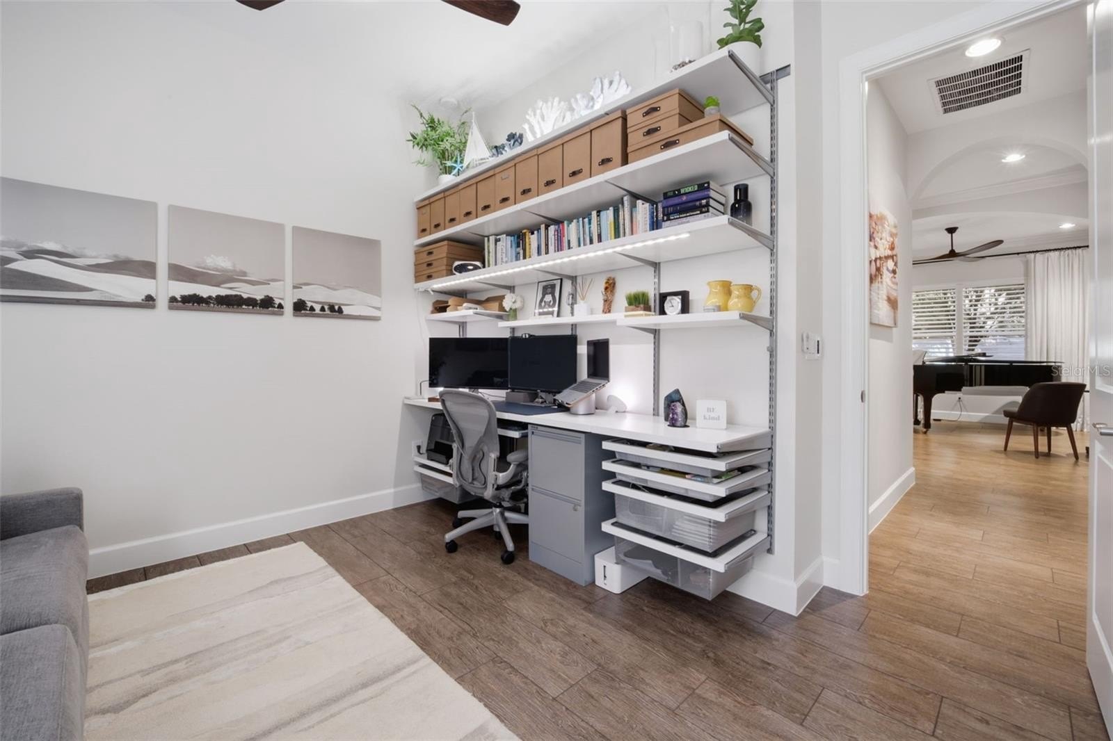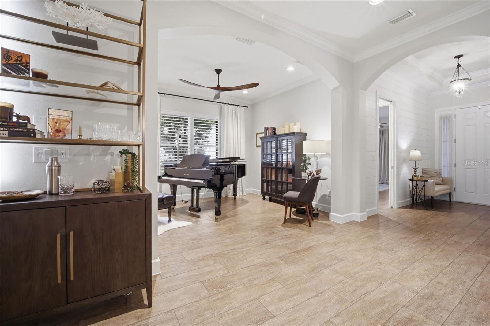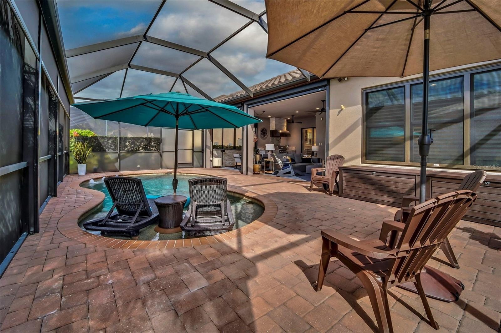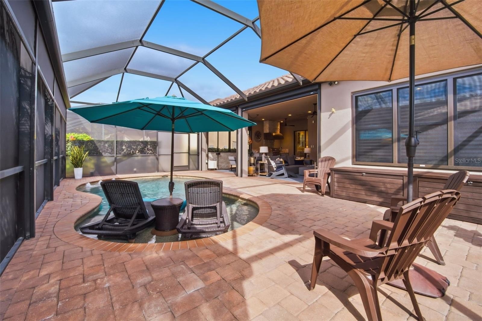 Discover affordable luxury living in this exceptional Lazio model with rare 3-car garage at Esplanade at Artisan Lakes. Every detail blends elegance, comfort, and modern convenience across 2,275+ sq. ft. of refined living space with 3 ensuite bedrooms, a versatile bonus room, and an open-concept layout overlooking a private lake. From the moment you enter through the shiplap-trimmed foyer, you’ll feel the sense of tranquility that defines this home. Nearly every builder option was selected, and thoughtful post-construction upgrades take it to the next level of luxury. The gourmet kitchen features a custom pantry with built-ins along with GE Café appliances, including a 6-burner gas range, under-counter wine/beverage fridge, and refrigerated drawers—ideal for entertaining. The chef in your family is going to love this feature! A large island provides generous prep, under-counter storage, and seating space flowing into spacious living and dining areas with oversized sliders and serene lake views. Elegant finishes include crown molding, coffered ceilings, designer lighting, and porcelain wood-look tile throughout. The owner’s suite offers custom blackout draperies, a large walk-in closet with built-ins, a spa like bath with dual vanities, a dual-entry shower with triple shower heads (including rainfall), and extra cabinetry. Outdoor living shines with a rescreened lanai with 17x20 polyester Super Screen® designed to safeguard against tiny pests such as "no-see-ums", freeform saltwater pool with sun shelf, custom pavers, and lush landscaping. Enjoy a built-in outdoor kitchen with grill, power burner, vent hood, and remote-controlled solar shades on the pool cage for privacy and comfort. Additional upgrades: whole-house Bahama Screen hurricane shutters, remote-controlled Hurricane Shades to protect covered lanai, screened front entry that provides wonderful cross-breeze, 3-car garage with epoxy floor and abundant ceiling rack storage, EV charger so bring your TESLA or favorite electric vehicle, whole-house water filtration, enhanced HVAC purification, custom closets, rain gutters, and fresh landscaping. Resort-style amenities: tennis, pickleball, bocce, dog park, two clubhouses with pools, fitness center, spa, card & massage rooms. HOA includes lawn care, landscaping, irrigation, cable, and internet. This home delivers luxury, functionality, and peace of mind—a rare opportunity to enjoy the Esplanade lifestyle in true comfort.