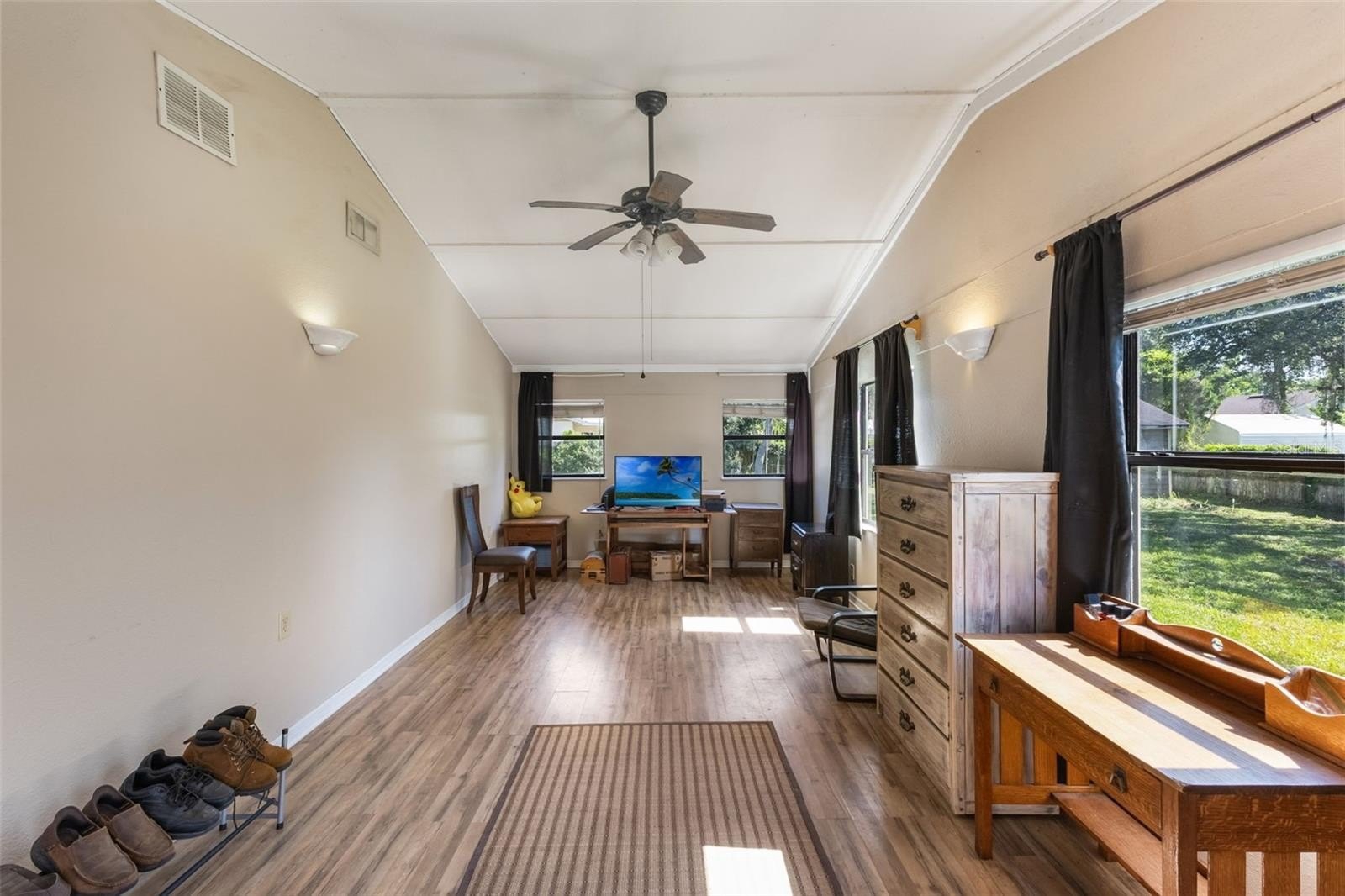 Inside, you’ll find vaulted ceilings, an updated kitchen, and a warm, inviting living space centered around a wood-burning fireplace. The split floor plan offers privacy, while the spacious fenced backyard is perfect for pets, entertaining, or relaxing under the Florida sky. A 2-car garage and extended driveway provide plenty of space for storage and guests.