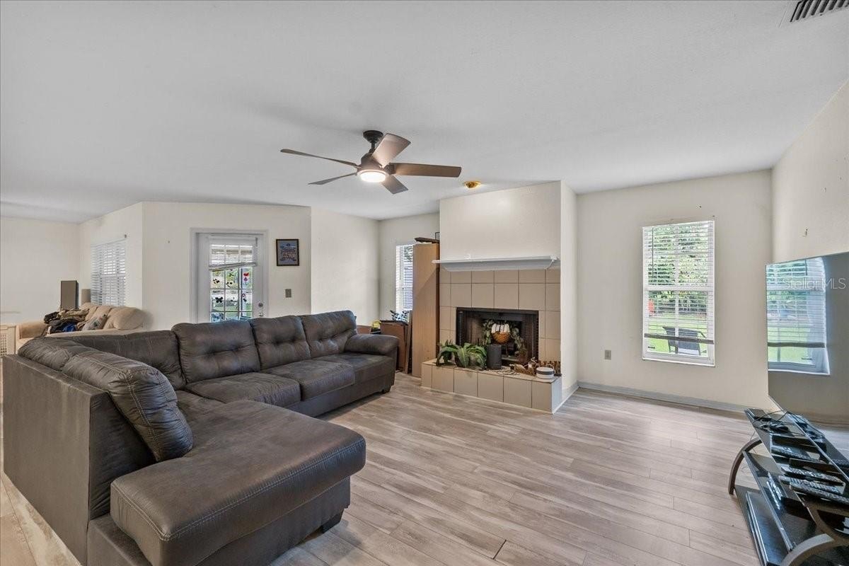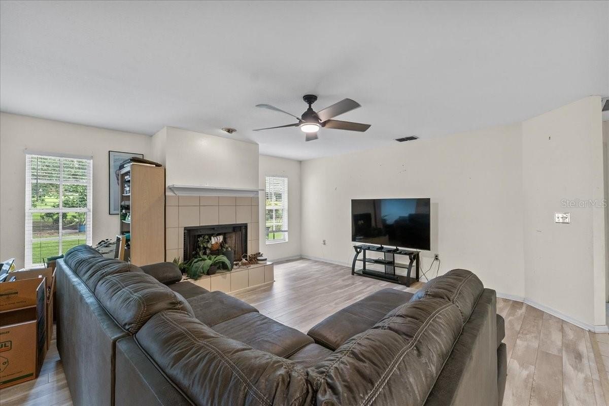 Step inside to an oversized great room featuring a cozy fireplace and hearth, abundant natural light, and an open floor plan that makes everyday living a breeze. The split bedroom design ensures privacy, while the kitchen with breakfast bar and stainless steel appliances flows seamlessly into the dining area—perfect for entertaining and holiday gatherings.