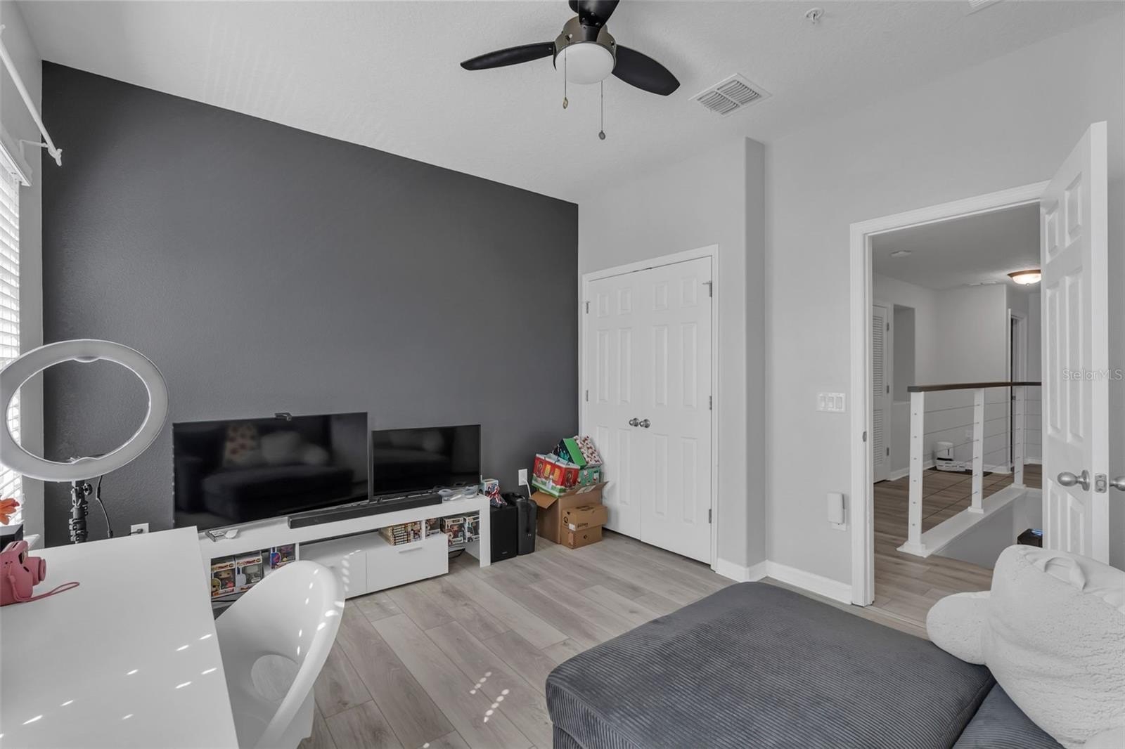 Storage is abundant throughout: from the hallway walk-in closet upstairs to the overhead storage in the garage and the rare side yard area unique to this end-unit location that offers outdoor flexibility. Recent updates include upgraded flooring, modern staircase and banister design, a newer AC system, refreshed cabinetry, and an updated garage door opener—ensuring you’re moving into a home where much has been handled.