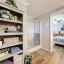 Interior finishes include waterproof vinyl flooring in a neutral tone that flows seamlessly throughout the home—no transitions between rooms. A custom built-in bookcase in the living room offers a serene place for your television, artwork, and personal library.