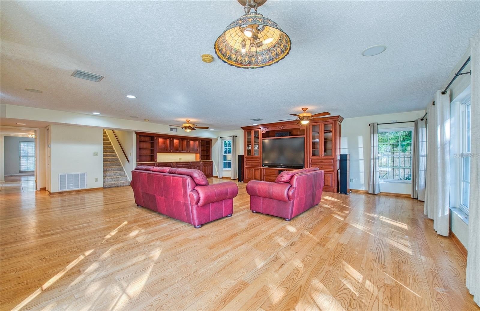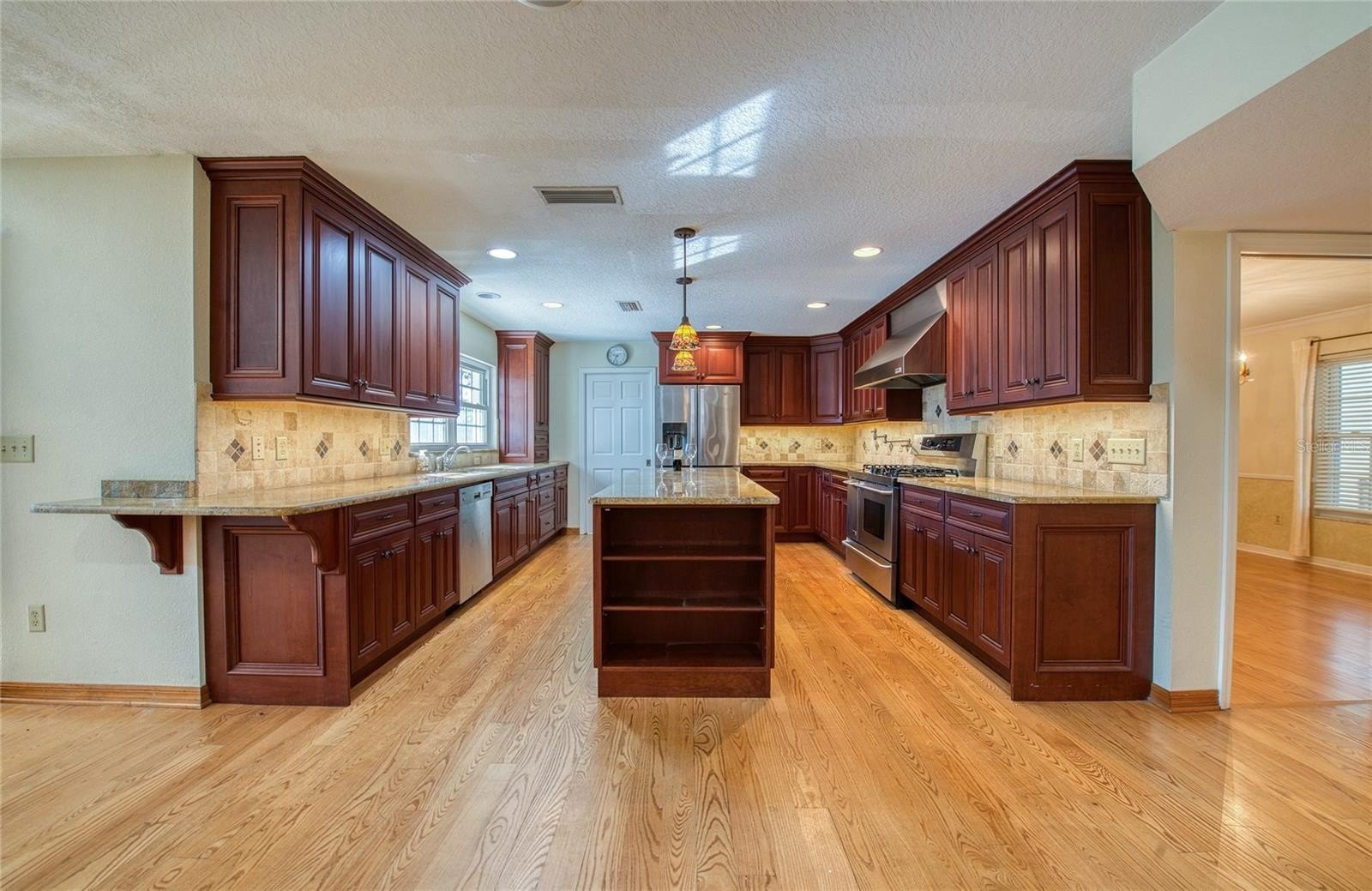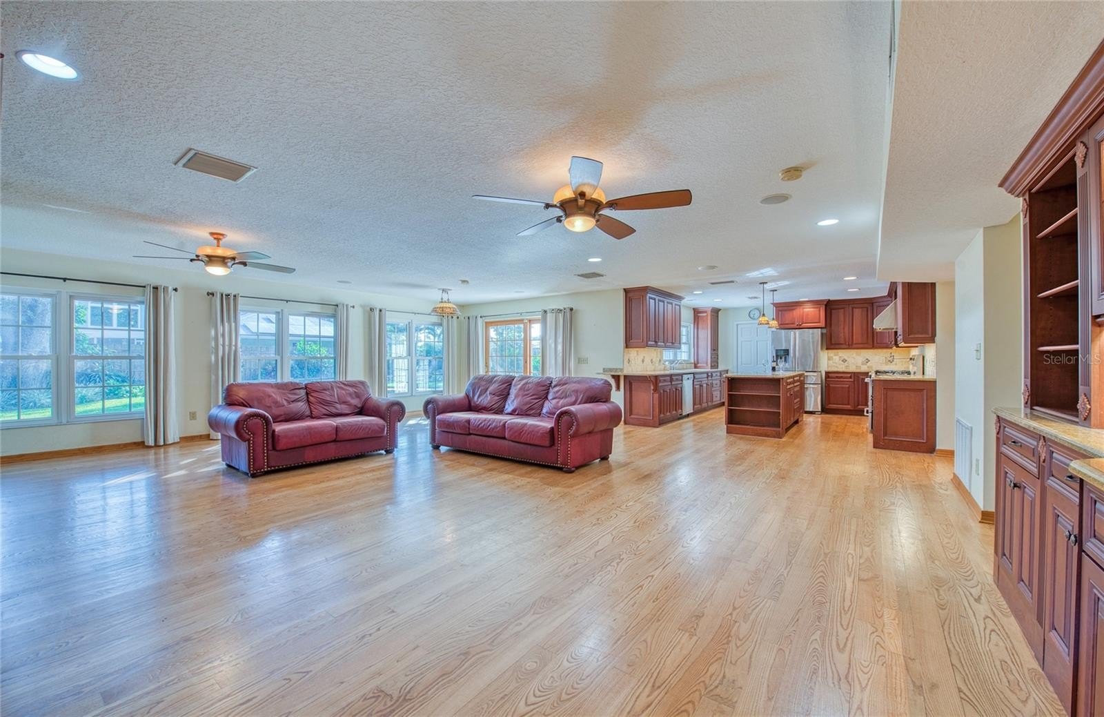 PRICE IMPROVEMENT! - This spectacular Countryside home in Clearwater is ready to nurture its next family. With 3,520 square feet of heated and cooled living space, it offers 5 spacious bedrooms, 3.5 bathrooms, and a spacious 3-car garage. Step outside and unwind among lush native Florida foliage, serenaded by the soothing sounds of a waterfall and koi pond. Mature oak trees shade the home and grounds. Irrigation system with private well sustains the vibrant yard and poolside landscaping, while the pool deck—crafted from exposed shell concrete with elegant travertine edging—adds a touch of coastal charm. The expansive kitchen and its storage are a chef’s paradise, featuring 30 feet of granite countertops, custom cherry cabinetry, a warming drawer, built-in wine cooler, and a dual-power gas/electric stove with five burners, one and a half ovens, and a convenient pot filler. Under-cabinet lighting sets a warm ambiance, and stainless-steel appliances beautifully complement the oak and ash wood flooring. Entertain effortlessly in the immense great room, complete with a custom-built entertainment center and a 73-inch Mitsubishi TV enhanced by a surround sound system. The large living room features a wood burning fireplace and a separate dining room is just steps from the kitchen. The downstairs 5th bedroom with full wall shelving and closets can be used as a very private home office. The master bathroom offers spa-like luxury with a whirlpool tub, walk-in shower, and double-sink vanity. Practical upgrades include: Roof replaced in 2016 with Owens-Corning Lifetime dimensional shingles with a transferable warranty. Downstairs AC replaced in 2024; upstairs in 2016. Rinnai tankless gas water heater replaced in 2022. Pool pump, pool filter system and pool sweep replaced in 2024. Hurricane-rated Anderson sliding doors and insulated impact resistant windows provide energy efficiency and a very quiet environment, while ensuring lasting protection in this high-and-dry, no-flood-zone location. Ideally situated between Tampa International and St. Pete-Clearwater airports, this home is just minutes from the charming downtowns of Safety Harbor and Dunedin, Countryside Westfield Mall, Countryside Country Club, Countryside Rec Center, and less than 30 minutes from the world-famous Clearwater Beach. No HOA fees. Owner Financing Possible!