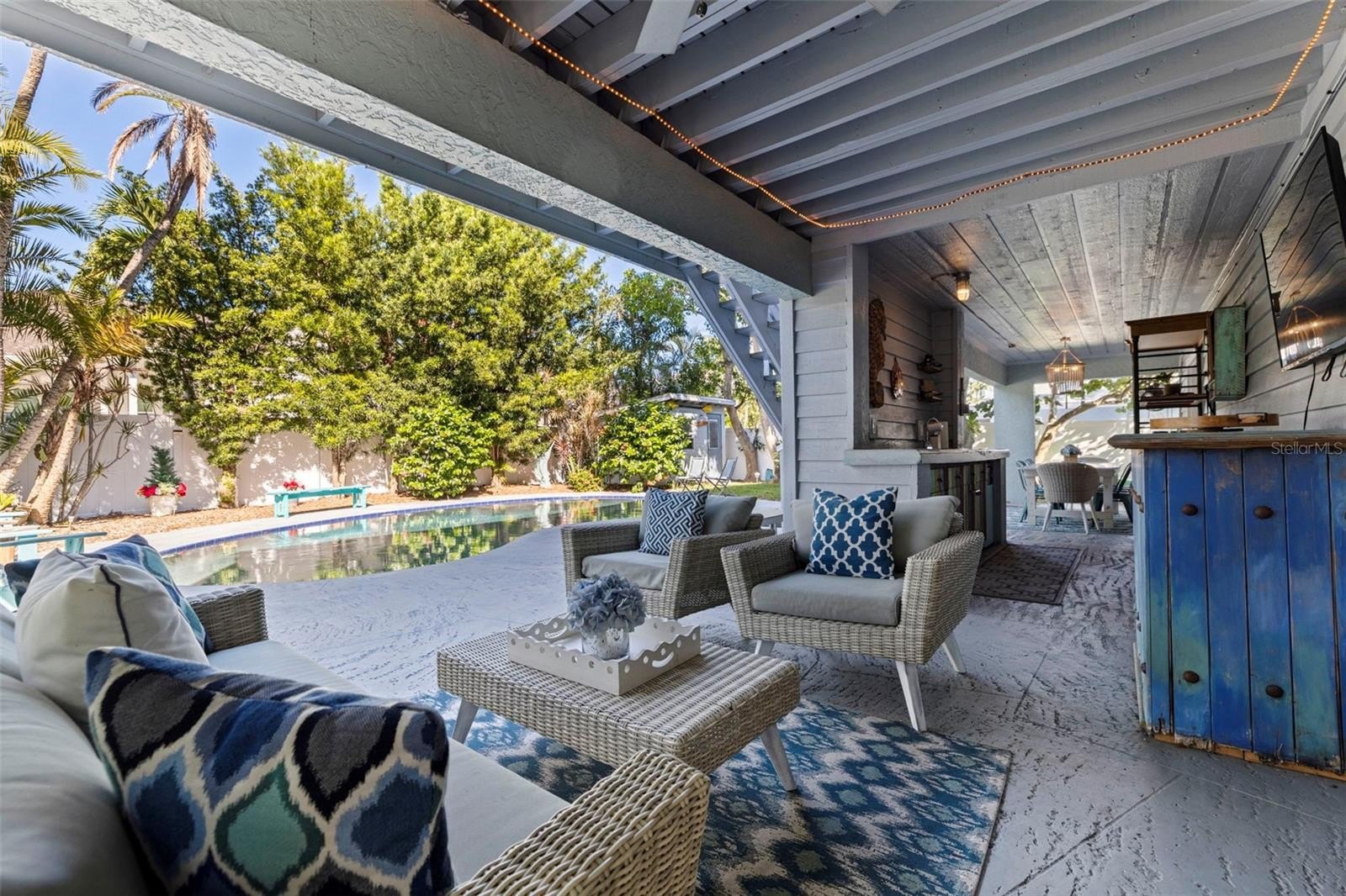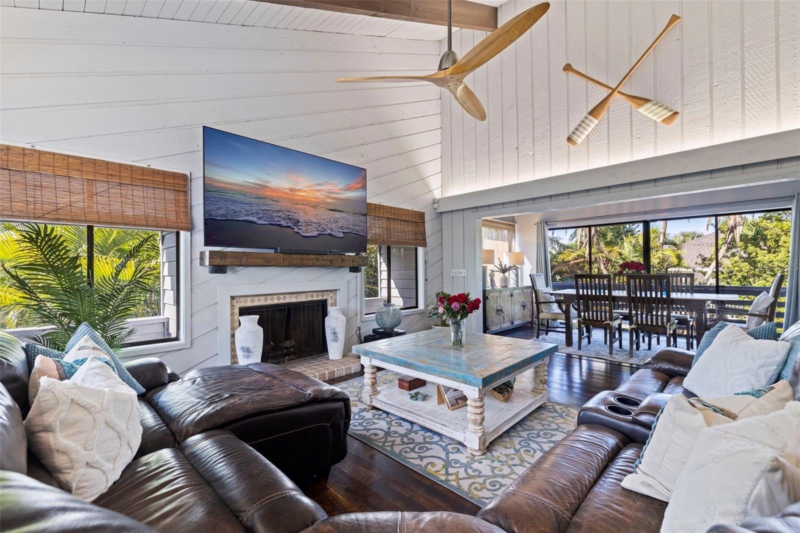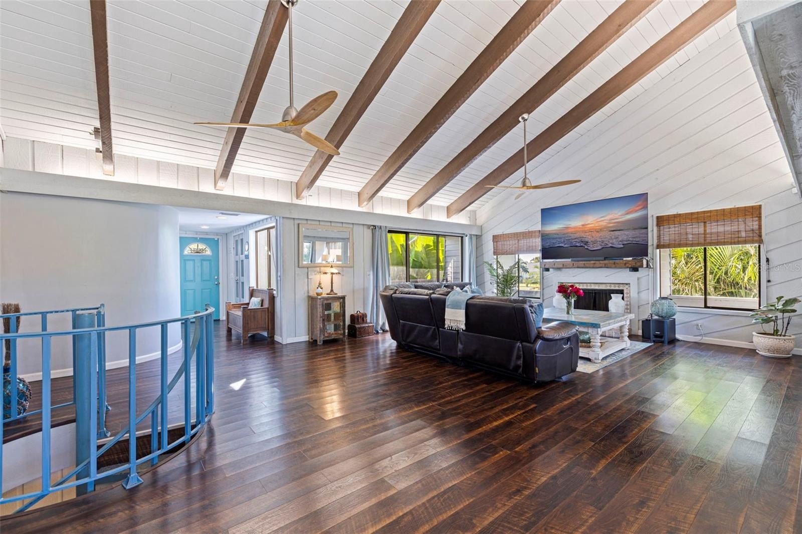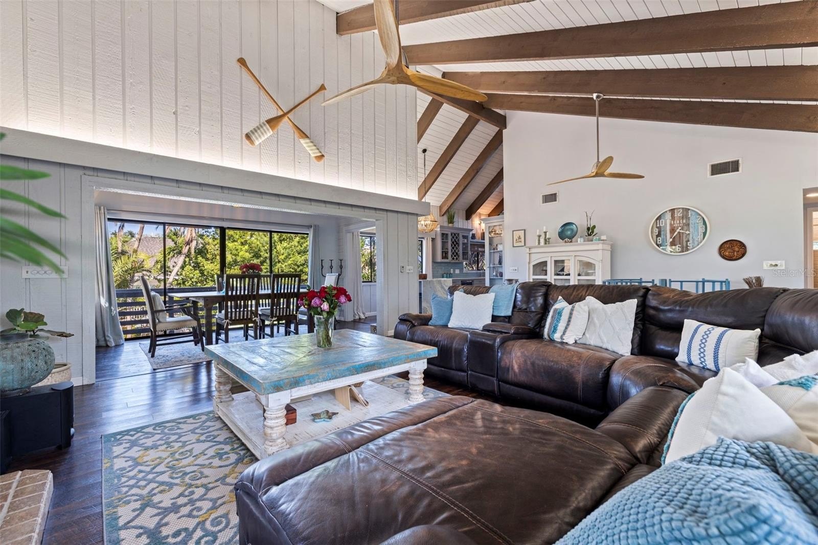 Experience true Florida living in this coastal, move-in ready, high & dry, two-story home located in Tierra Verde’s highly sought-after Sands Point neighborhood. Set in a quiet yet very vibrant and active waterfront community, this residence offers comfort, privacy, and peace of mind, having remained completely dry through the recent hurricanes. The welcoming, light blue front door opens to soaring ceilings with exposed beams, wood-look luxury vinyl floors, and abundant windows that fill the home with natural light. A sliding door connects seamlessly to the pool area, creating an easy indoor-outdoor flow. The main upper level offers a spacious living room featuring a wood-burning fireplace and a cozy formal dining corner, blending into the stunning updated kitchen. The kitchen showcases elegant countertops, ample cabinet space, and a sleek island that connects the dining and kitchen areas while offering convenient casual counter seating. Around the corner a spacious guest bedroom with dramatic ceilings, a full closet, and a beautifully updated bath. The expansive primary suite on the east side features an office nook or space to expand the already generous walk-in closet, plus a stunning ensuite bath with an oversized walk-in shower. The lower level is accessible via staircase and offers another private bedroom with ensuite bath. There is a bonus family/playroom with walkout access to the pool, and a two-car garage with laundry area, an additional refrigerator, water softener, and plenty of storage. In addition to the garage parking, the large driveway provides convenient space for multiple cars, perfect for extended family and guests. Out back, enjoy a fully fenced oasis with in-ground pool, ample space for entertaining, a setup ideal for an outdoor entertaining kitchen, plus a shed tucked in the corner for tools and water toys. The landscaping is low-maintenance, lush, and private, perfectly embracing the Florida lifestyle.