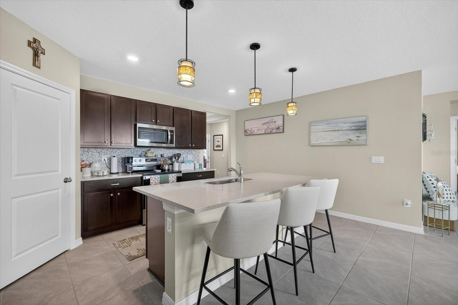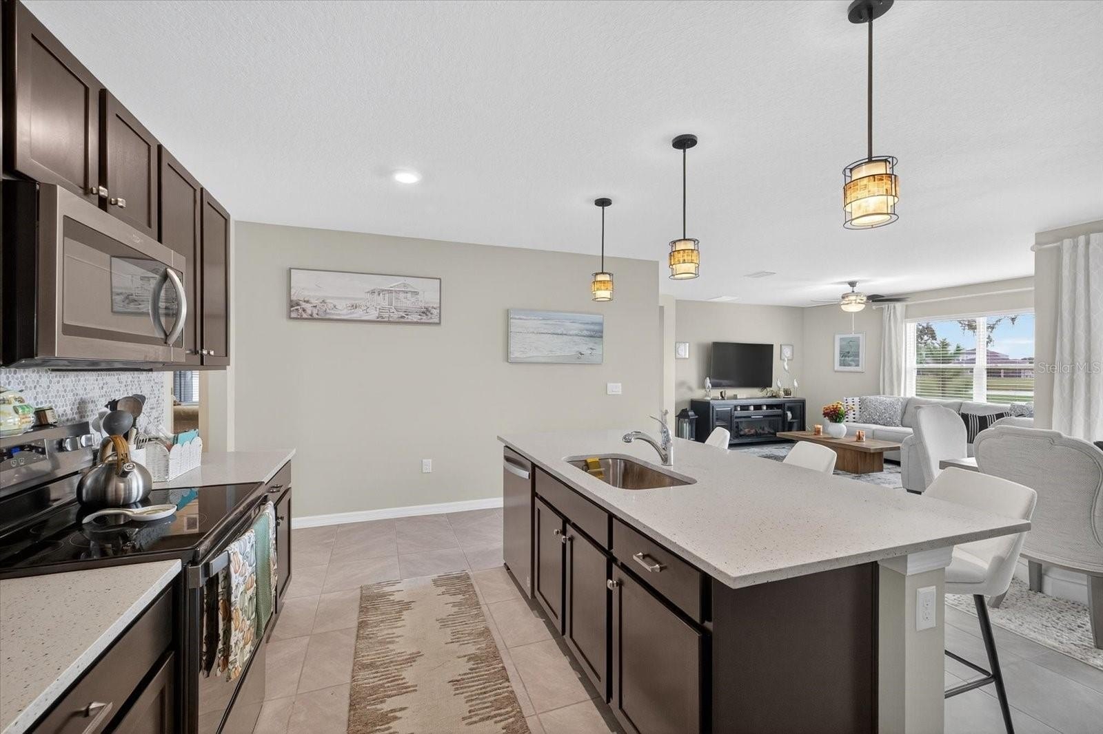 Brand-new home located in the highly sought-after Mirada Lagoon community of San Antonio, FL! This stunning 4-bedroom, 2-bath, 2-car garage residence features an open-concept design with a bright modern kitchen, elegant finishes, and spacious living areas ideal for today’s lifestyle. The interior has been professionally painted throughout, complemented by new ceiling fans in every room, a designer backsplash, chandelier, and drop-light pendants adding a touch of sophistication. The home also features custom shelving in the master walk-in closet, garage, and laundry room, plus a new epoxy-coated garage floor for a polished, durable finish. Enjoy relaxing evenings in your private backyard retreat with stunning sunsets—perfect for entertaining family and friends. Residents of Mirada enjoy access to a spectacular 15-acre Crystal Lagoon, offering a swim-up bar, kayaking, paddle boarding, in-water obstacle platform, water slide, and family beach. The community also includes a dog park, walking trails, golf cart paths, shaded tot lot, passive park, and an event & picnic pavilion, along with ULTRAFI 2.0 high-speed internet and cable as part of the innovative Connected City lifestyle. All brand-new furniture throughout the home is available for purchase separately, providing an optional fully furnished, move-in-ready experience for buyers seeking turnkey luxury. Experience true resort-style living in one of Pasco County’s most desirable master-planned communities—schedule your private showing today!