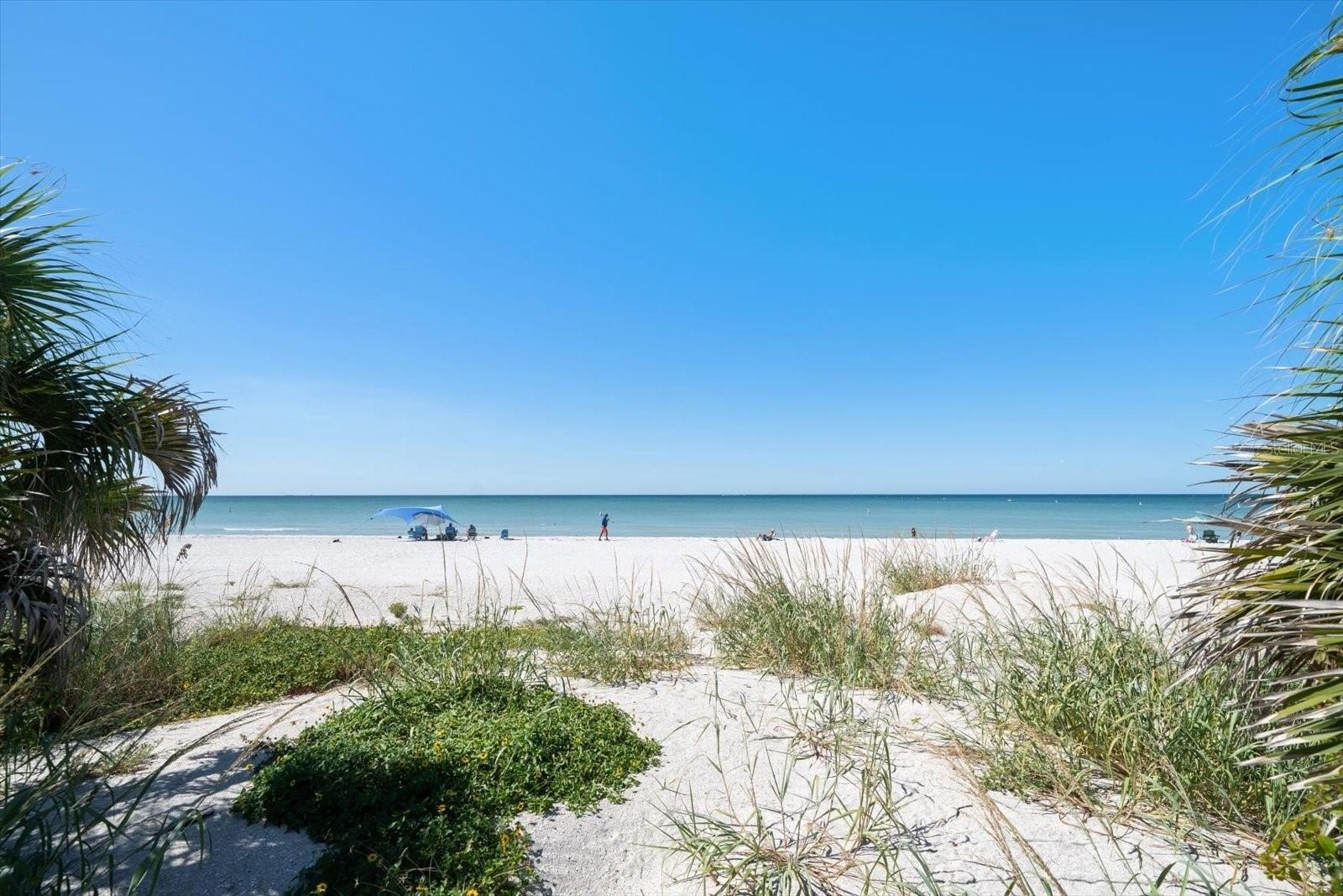 Exceptional Beachfront living! Beautifully furnished and ready for immediate use as a primary, vacation or investment property with its sought after 7-day minimum rental policy, the property offers flexibility in usage and lucrative income potential. Contemporary finishes are beautifully balanced with classic Florida charm! Bathed by natural light to create a welcoming feeling, this is an impressive property. Sleek oversized porcelain tile, spacious fully equipped kitchen with breakfast bar, gleaming complementary stone counters, abundant storage, this is a floor plan appreciated by the most selective homeowners. The primary suite with Gulf views offers a large walk-in closet, and private ensuite bath area with walk in shower detailed by stunning vertical tile. Additional two guest suites allow for privacy for guests- ideal for vacationing families. Watch the sunsets from the terrace spanning the entire width of the condo. Easily access wonderful beachside amenities via a private circular staircase just steps to the resort style pool, heated spa, grilling station and expansive lawn area-while taking in the beach side ambiance. Relax on the pool deck and enjoy the views of the glimmering gentle waves of the Gulf and white sandy beach. This is your coastal haven! All systems have been updated – top of the line sliders, HVAC, appliances. Additional attributes include the full-size washer/dryer, and underbuilding assigned parking. This pet friendly community is comprised of 16 condos which add to its charming, casual appeal and is a short walk to restaurants, recreational venues such as pickleball, parks, library and art center. Rarely do these 3-bedrooms, 2 bath condos offering direct Gulf-front access, outstanding rental income, location and convenience to a myriad of activities become available-just minutes to major access roads to Tampa, Clearwater and St Pete. This is an exceptional property for those who desire a beach get away and income to offset expenses when not using. Don't miss this opportunity!