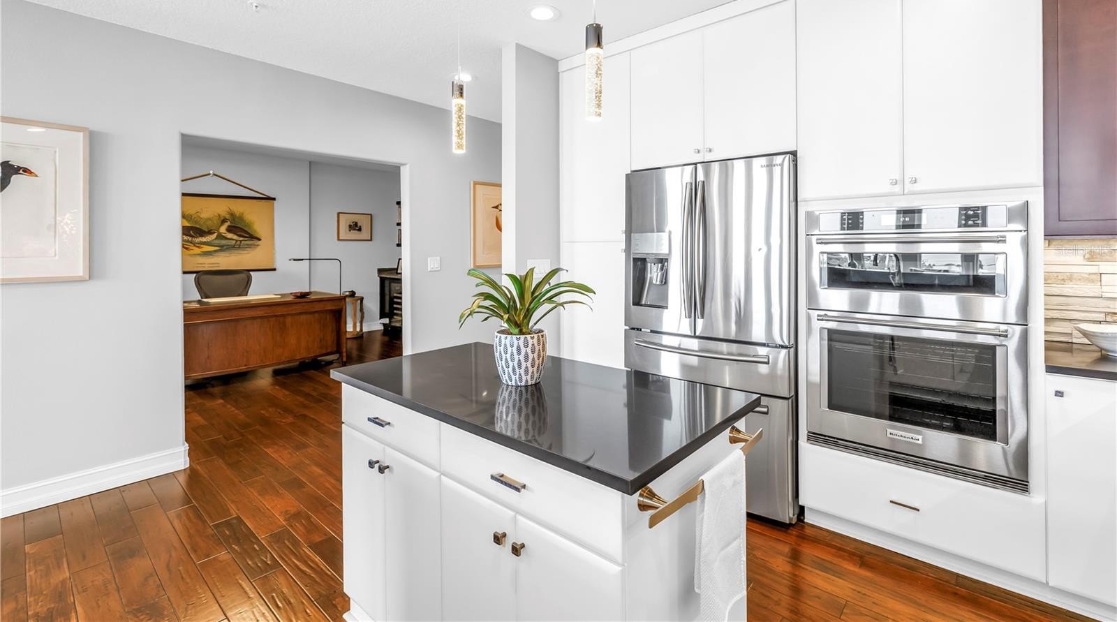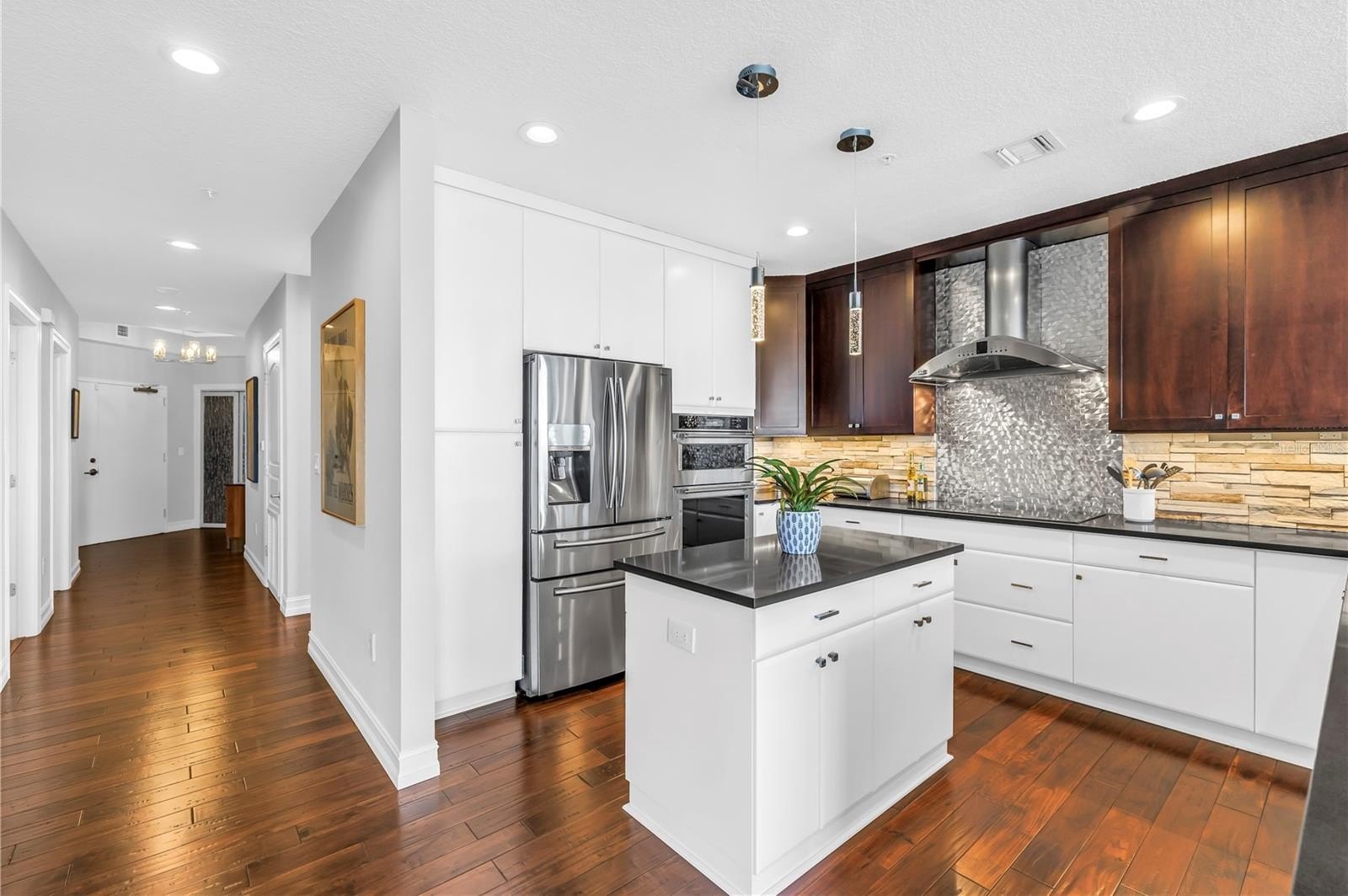 Every detail has been thoughtfully designed to create a seamless blend of comfort and style. The open floor plan is bathed in natural light through floor-to-ceiling windows, framing panoramic water views from nearly every room. The kitchen is a masterpiece of design and function, featuring quartz countertops, kitchen island, the induction range technology provides precise temperature control, stainless-steel appliances and double ovens—perfect for hosting sophisticated dinners or casual gatherings.