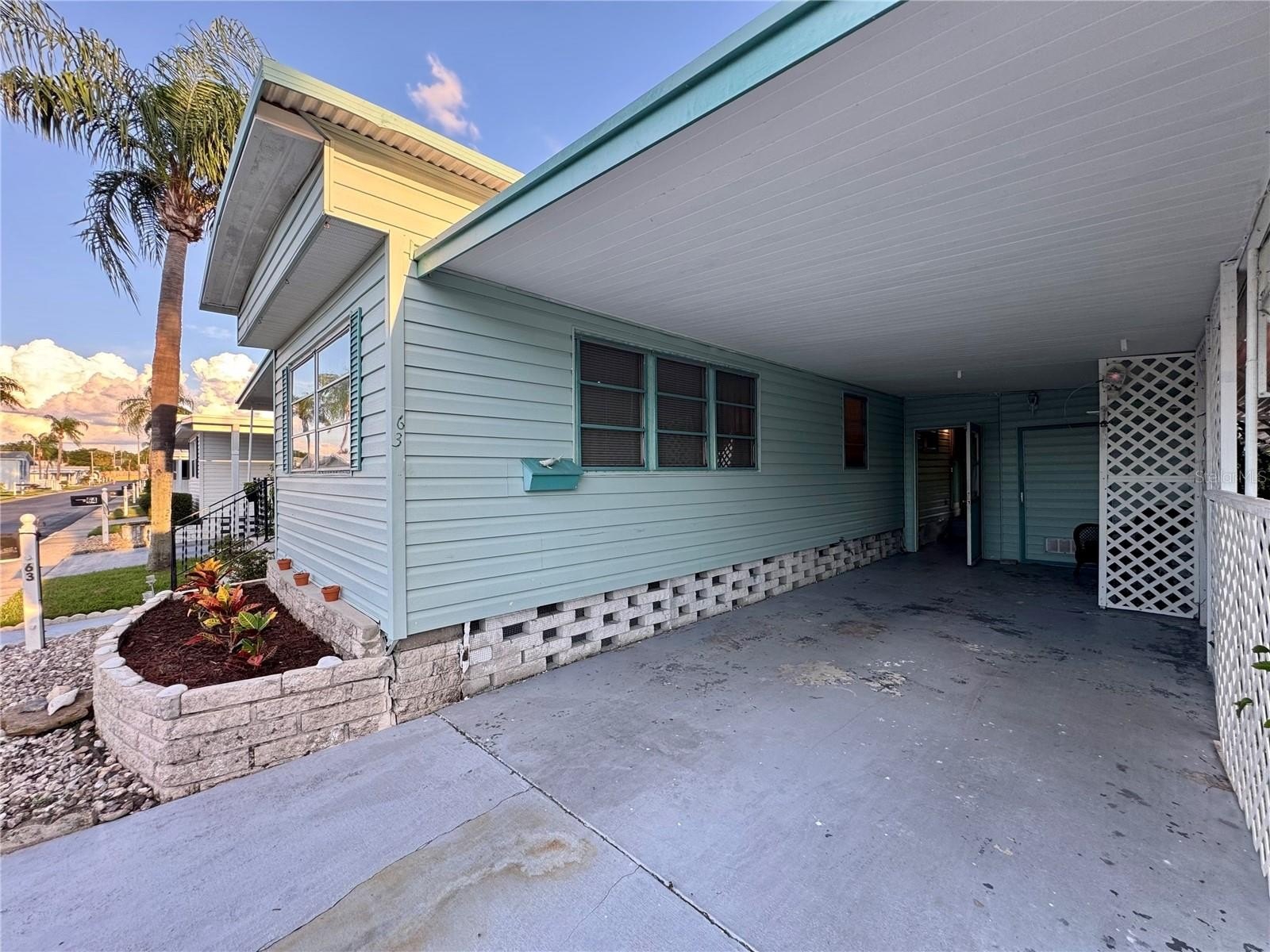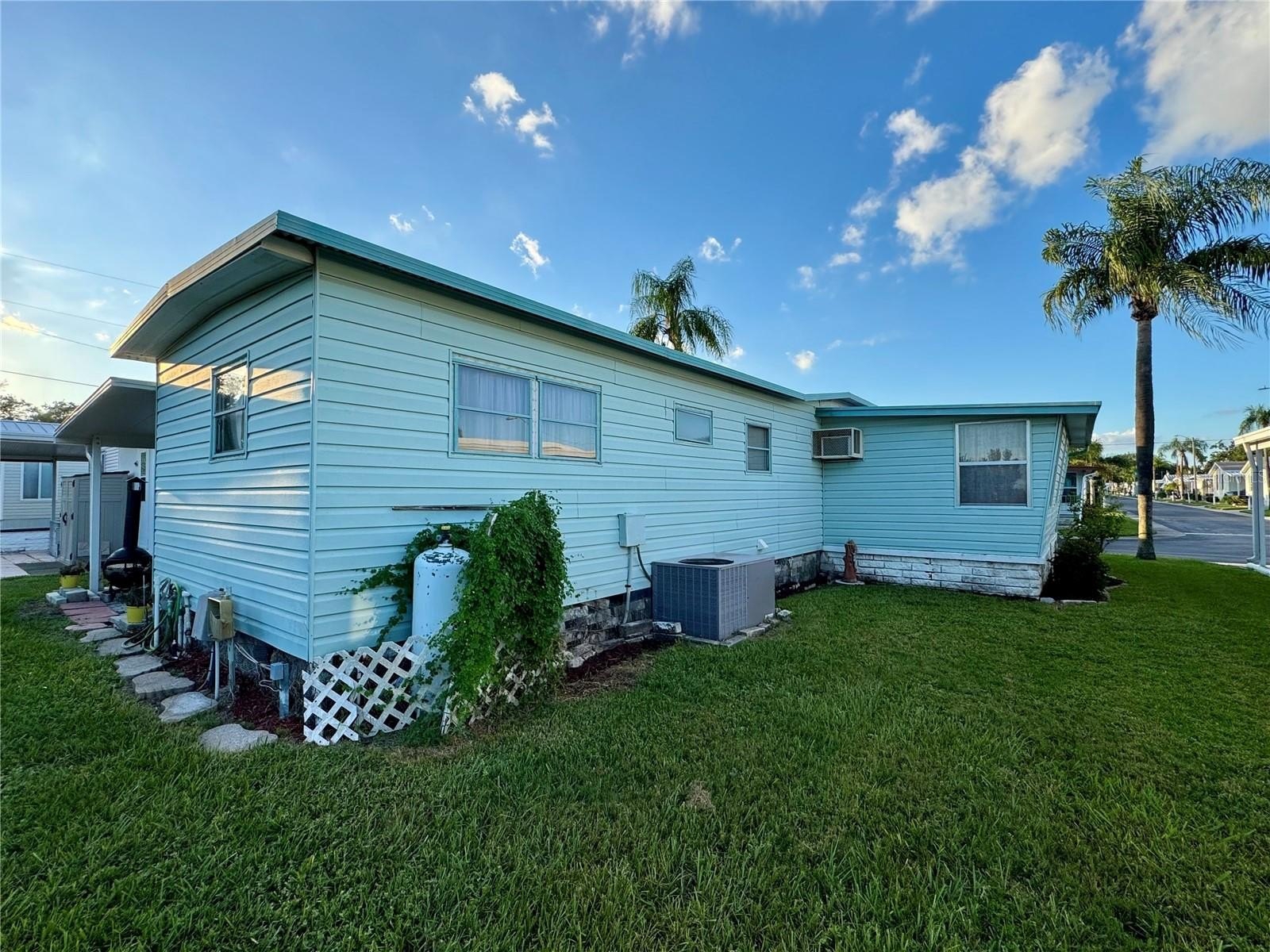 Welcome to DUNEDIN PALMS, a 55+ community with individually OWNED homes and LOW monthly HOA fees ($215), including a year-round POOL, clubhouse, ping-pong table, SHUFFLEBOARD, and a POND where residents can watch the sunrises & sunsets from the community PIER. This charming, fully furnished 1/1 home features a large Florida room that could be used as a dining/family room and adjoins a living room space. Spacious laundry room with its own washer/gas dryer and closet, could be converted to another bedroom. Propane gas also powers the stove and water heater. New flooring and ceiling with a new ventilation fan recently installed in the bathroom. The carport has enough space to fit a GOLF cart. The storage area and outdoor hallway lead to a covered patio and backyard, making it an ideal place to unwind, read, or enjoy a barbecue with friends and family. This "indoor CATS" friendly community is nicely tucked away yet centrally located, only 1 mile from the vibrant and artistic DOWNTOWN Dunedin, with your choice of boutiques, shops, restaurants, and open-air MARKETs (held on weekends from November through June), with local foods, crafts, and live music. Only 0.5 mile to the TD BALLPARK field, home of the Toronto Blue Jays spring training. A BOWLING alley is across the street. Bay Medical Center is located right next to one of the community entrances, and it's 1 mile to Dunedin HOSPITALs. A short distance from the stunning Dunedin SHORELINE walking path, the extensive Pinellas BIKE trail, and a MARINA. Less than 7 miles to the world-famous Clearwater BEACH and 19 miles to the Tampa International AIRPORT. No FLOOD insurance is required in this zone. Whether looking for a winter home, downsizing, or a low-maintenance lifestyle, give this home some TLC and you can own just the right balance of simplicity and comfort. Come see it today, make new friends, and start living your Florida lifestyle tomorrow! Walkthrough video available.