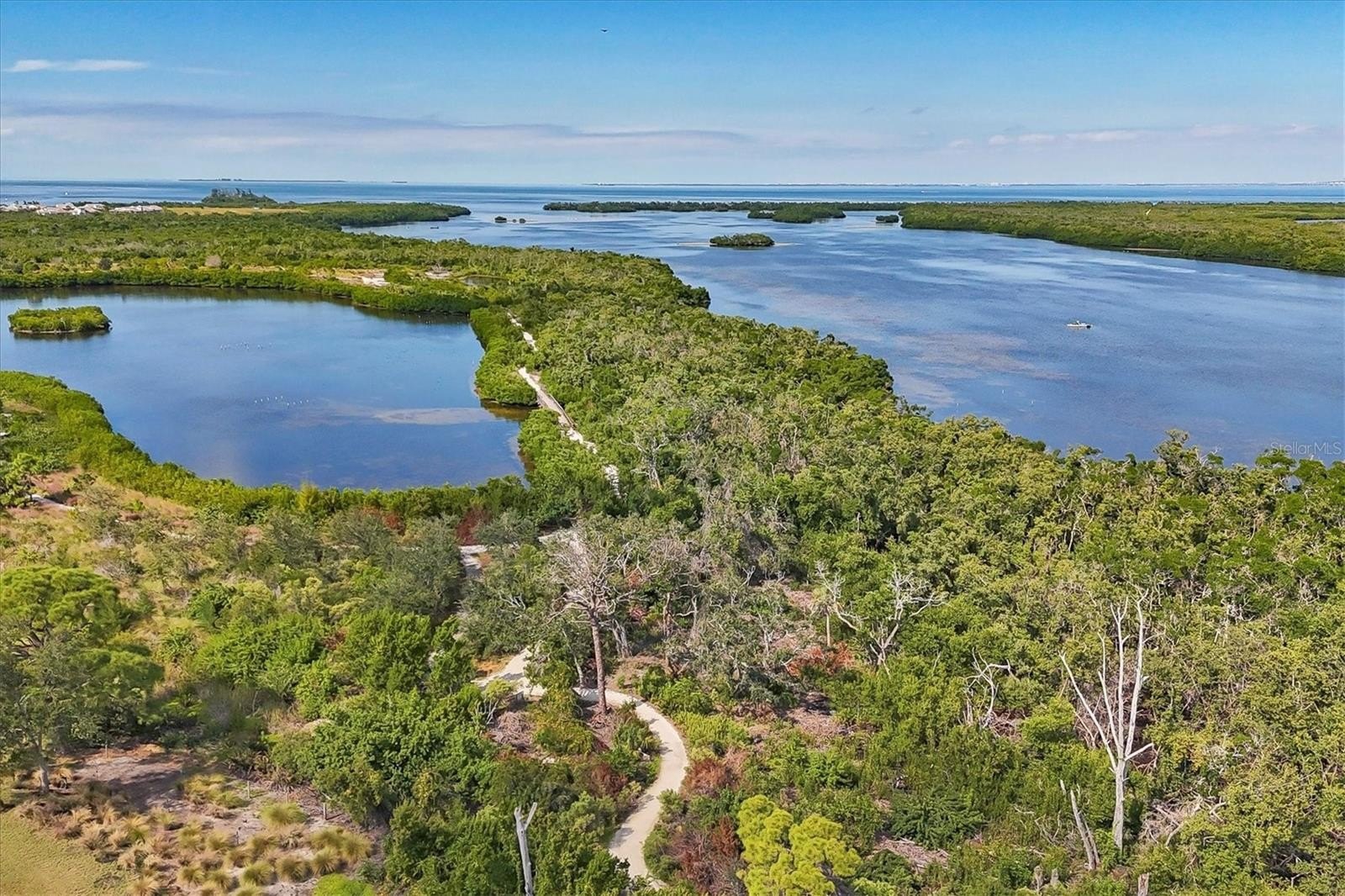 Preserve with walking and biking trails, birdwatching, and kayaking.