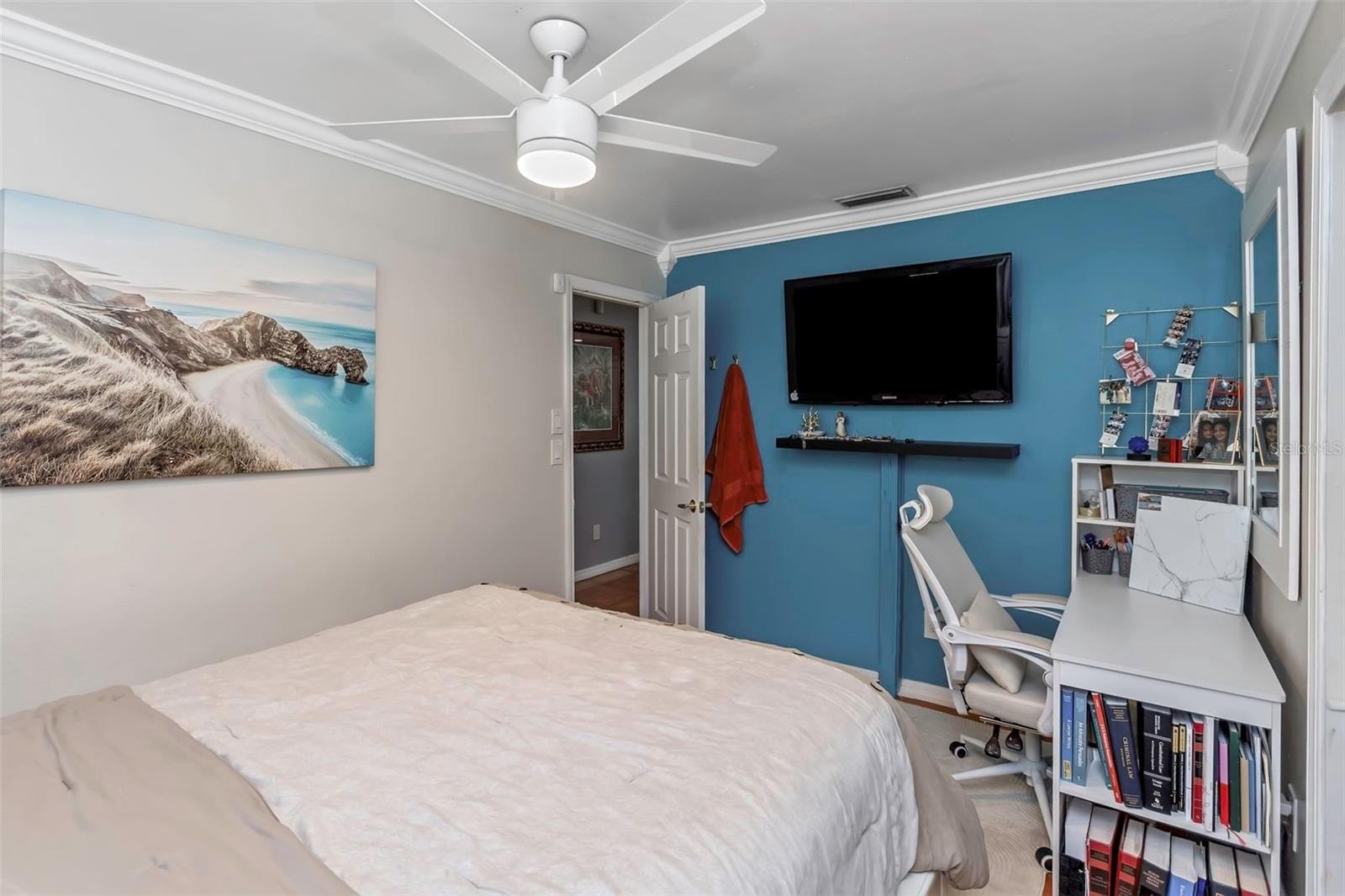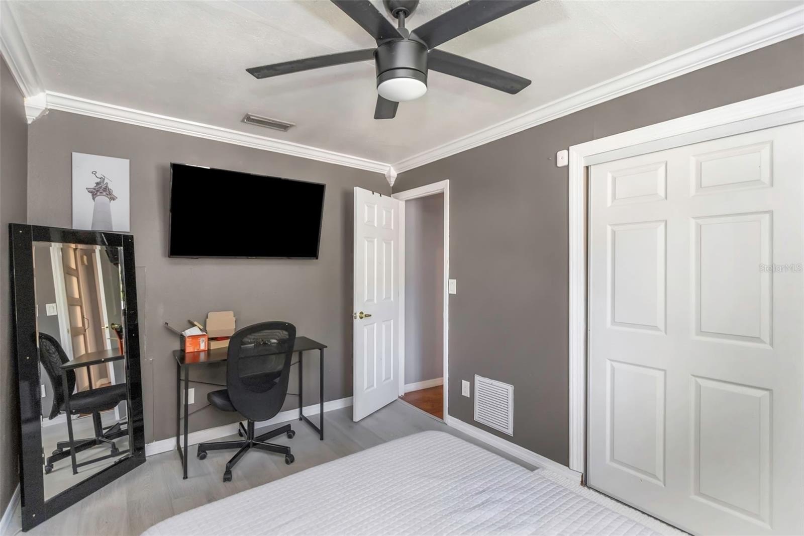 The oversized primary bedroom easily accommodates a king-sized bed and includes a private en suite bath with a step-in shower. Two additional bedrooms provide flexibility for guests, a home office, or a growing family.