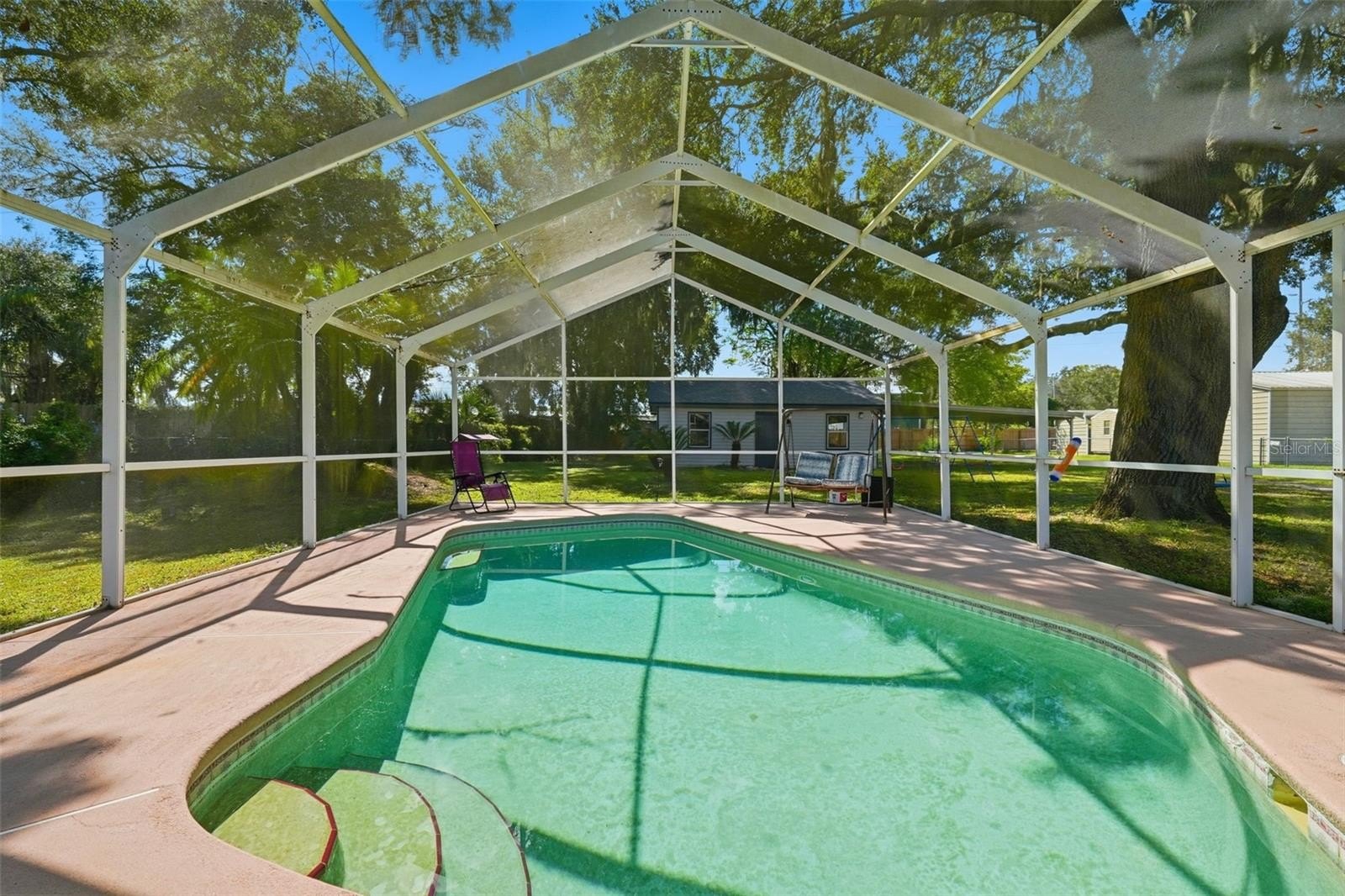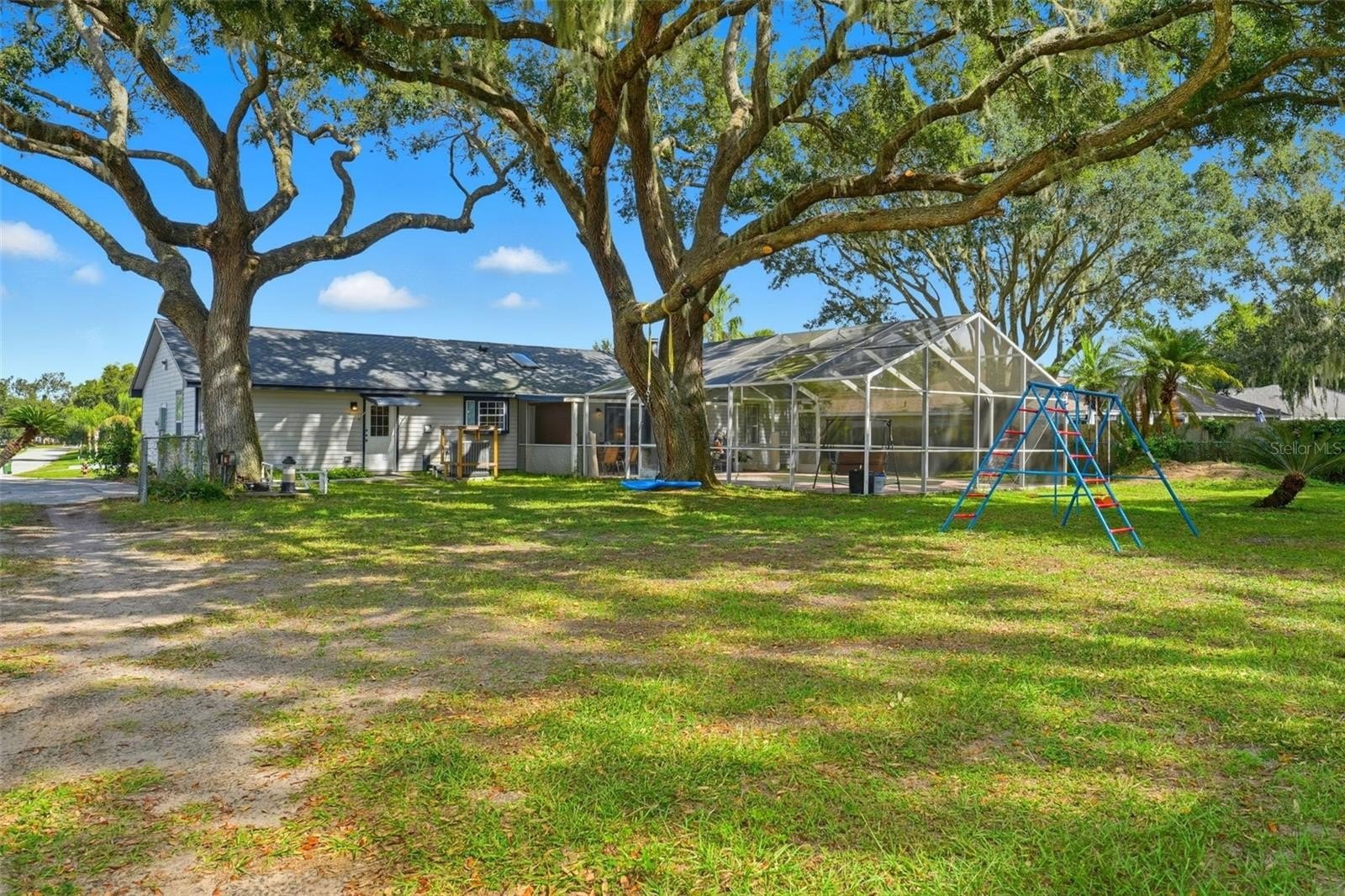 Prime Leesburg Pool Home with Chain of Lakes Access! Enjoy the best of Florida living in this inviting 3-bedroom, 2-bath home with deeded access to Lake Griffin and the Chain of Lakes—complete with a private community boat ramp and dock for endless boating and fishing adventures. Situated on just over a half-acre, this property offers the perfect balance of indoor comfort and outdoor enjoyment. Relax or entertain in your own backyard oasis featuring a screened-in inground pool, spacious covered back porch, and a fully fenced yard shaded by a stunning canopy of live oaks. Inside, you’ll find a bright and open layout with an eat-in kitchen that opens to the pool area through sliding glass doors and features a cozy wood-burning fireplace, creating a warm and inviting gathering space. A flex room provides versatile use for an office, craft room, or hobby area. Both bathrooms feature skylights, adding natural light throughout, and one bedroom includes a loft area—perfect for storage or a child’s hideaway. The property also boasts an oversized detached 2-car garage/workshop with a 2-car carport, offering flexible use for vehicles, projects, or storage. Additional highlights include a generator hook-up, city water and sewer, a reverse osmosis system at the kitchen sink, and plenty of room to park a boat or RV. Major updates include a new roof (2022) and HVAC system (2021). Don’t miss this rare opportunity to own a pool home with private lake access, a workshop, and beautiful natural surroundings—schedule your showing today! Seller is offering $5,000 to the buyer for prepaids|closing costs|rate buydown with an accepted contract.