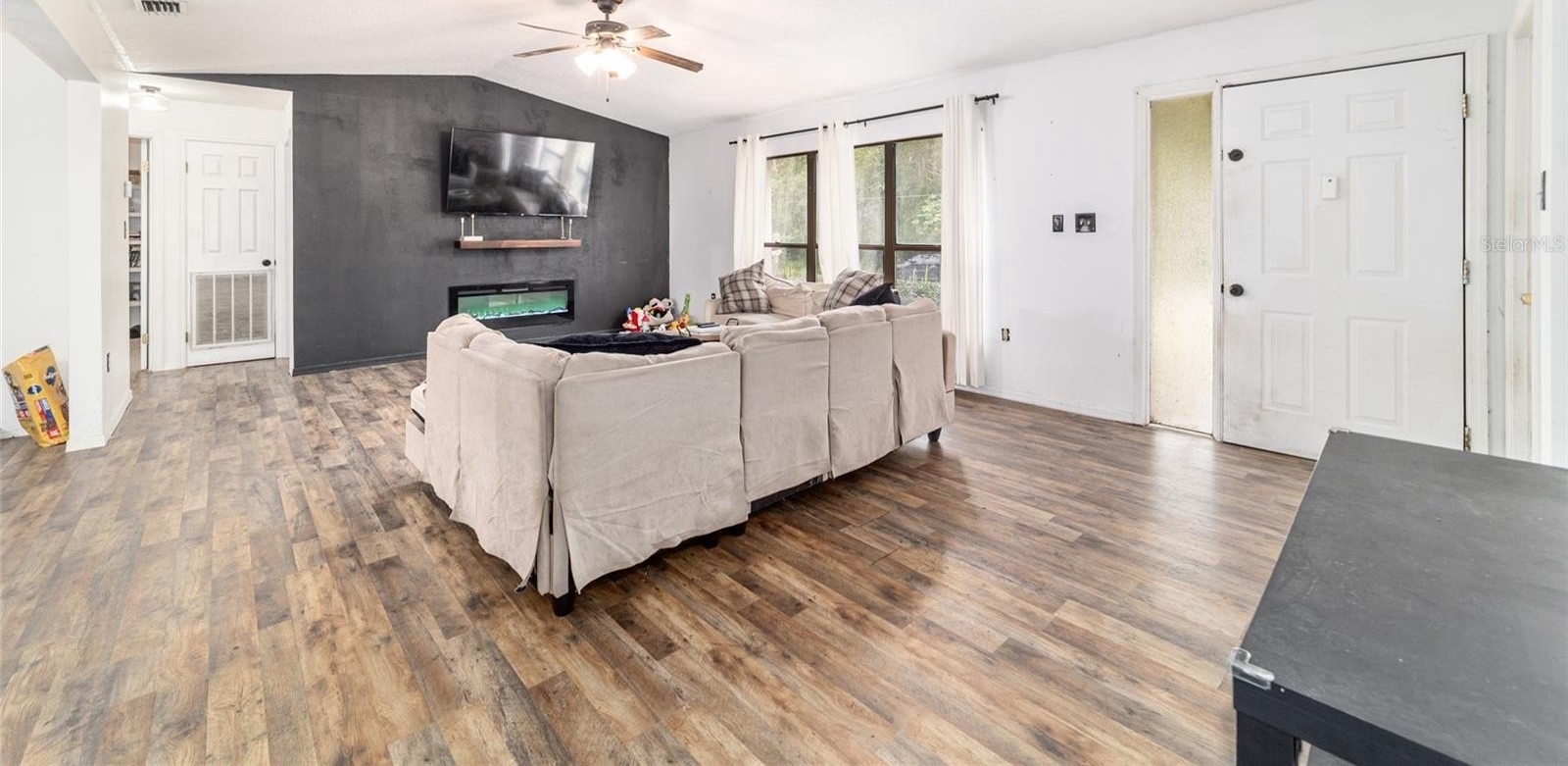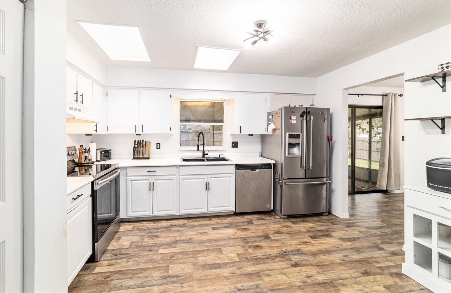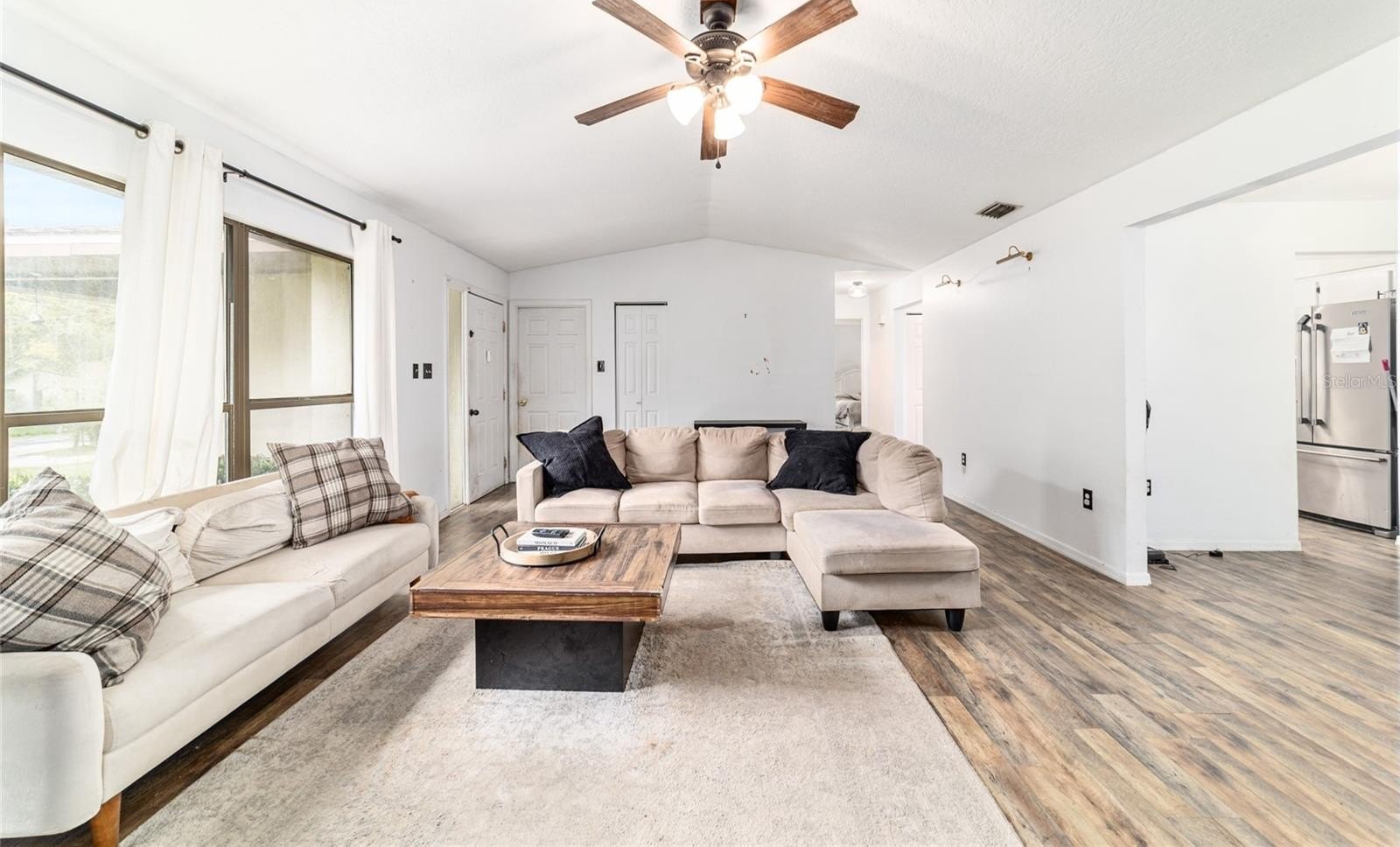 Start your homeownership journey with this inviting 3-bedroom, 2-bath home in Sun Ray Estates, complete with a newer roof and a location that puts shopping, dining, and entertainment just minutes away. Inside, you’ll love the spacious family room with high ceilings, luxury vinyl plank flooring, and oversized windows that fill the space with natural light. The kitchen is both charming and functional, featuring stainless steel appliances, a tiled backsplash, pantry storage, and even space for your dream coffee bar. Enjoy meals in the separate dining area, where sliding glass doors lead to a screened-in back porch and a privacy-fenced yard ready for weekend barbecues, pets, or just relaxing outdoors. The owner’s suite offers a private bath and walk-in closet, while two additional bedrooms provide flexible space for family members, guests, or a home office. Plus, you’re just minutes from the Ocala National Forest, with endless opportunities for hiking, kayaking, and exploring Juniper Springs, Silver Glen, and Salt Springs. Silver Springs State Park is only 8 minutes away, where you can hop on a glass-bottom boat or spot manatees in the wild. This is more than a house, it’s a lifestyle waiting to be lived.