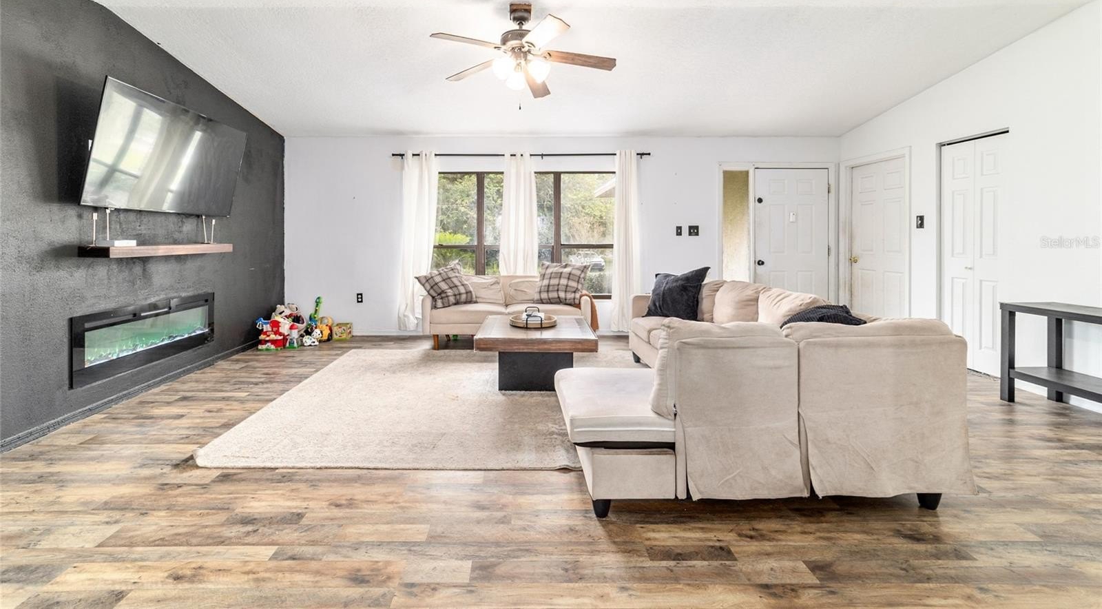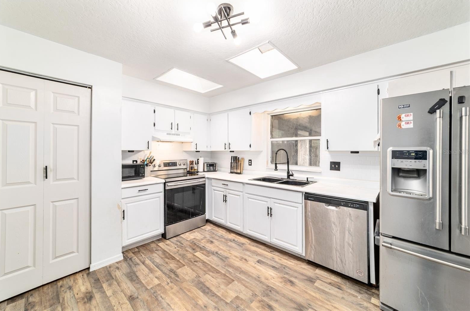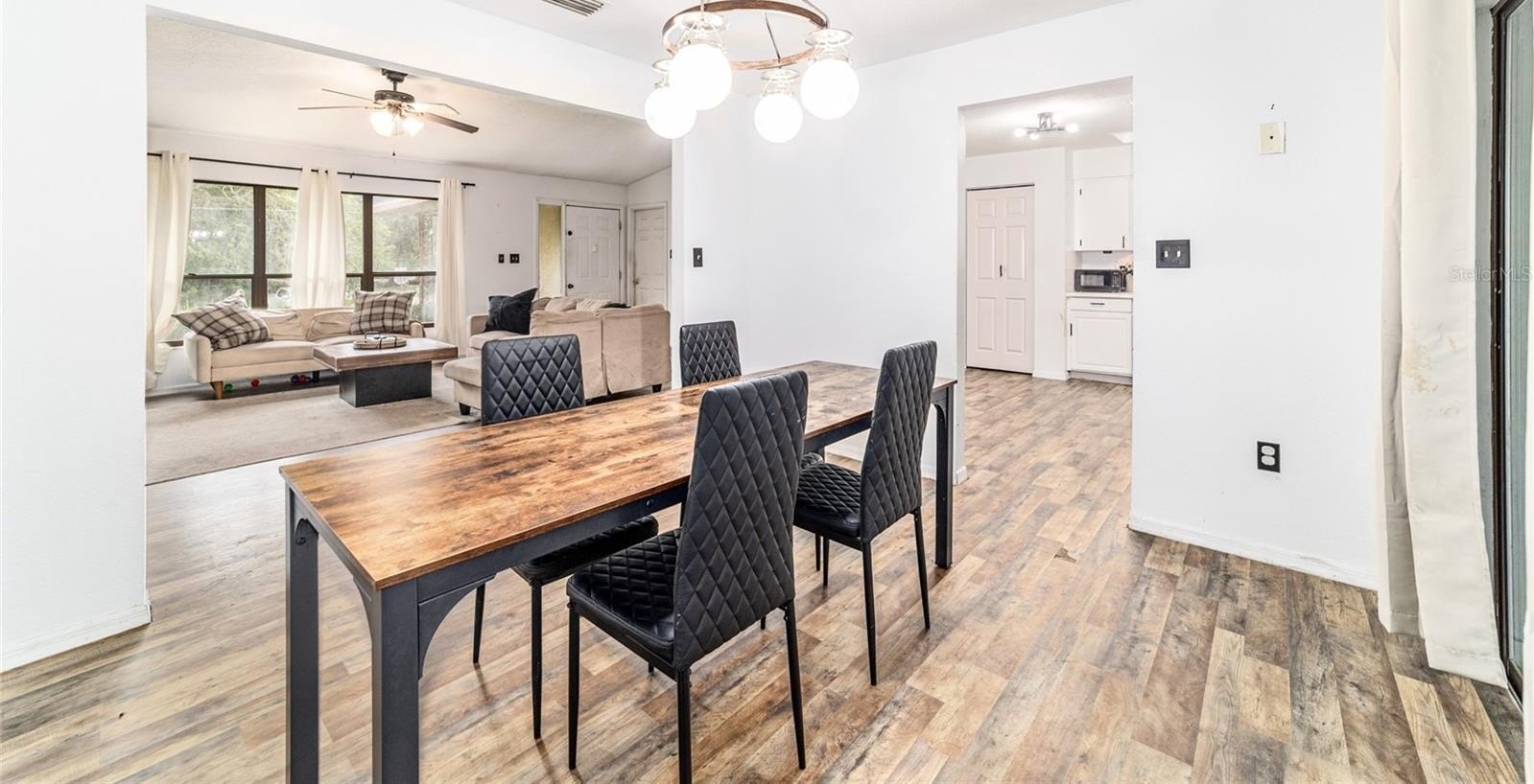 Start your homeownership journey with this inviting 3-bedroom, 2-bath home in Sun Ray Estates, complete with a newer roof and a location that puts shopping, dining, and entertainment just minutes away. Inside, you’ll love the spacious family room with high ceilings, luxury vinyl plank flooring, and oversized windows that fill the space with natural light. The kitchen is both charming and functional, featuring stainless steel appliances, a tiled backsplash, pantry storage, and even space for your dream coffee bar. Enjoy meals in the separate dining area, where sliding glass doors lead to a screened-in back porch and a privacy-fenced yard ready for weekend barbecues, pets, or just relaxing outdoors. The owner’s suite offers a private bath and walk-in closet, while two additional bedrooms provide flexible space for family members, guests, or a home office. Plus, you’re just minutes from the Ocala National Forest, with endless opportunities for hiking, kayaking, and exploring Juniper Springs, Silver Glen, and Salt Springs. Silver Springs State Park is only 8 minutes away, where you can hop on a glass-bottom boat or spot manatees in the wild. This is more than a house, it’s a lifestyle waiting to be lived.