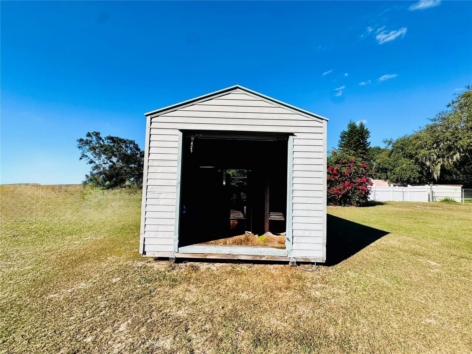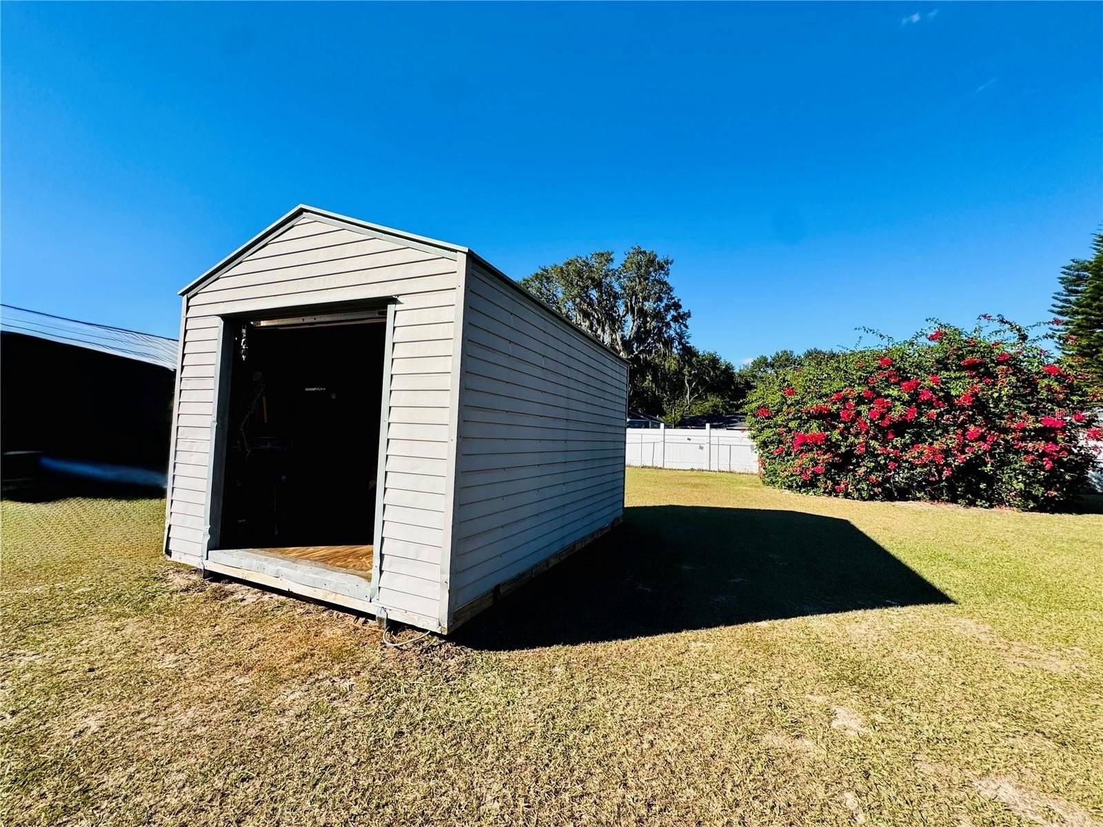 Large storage shed with electricity — perfect for tools, hobbies, or a workshop