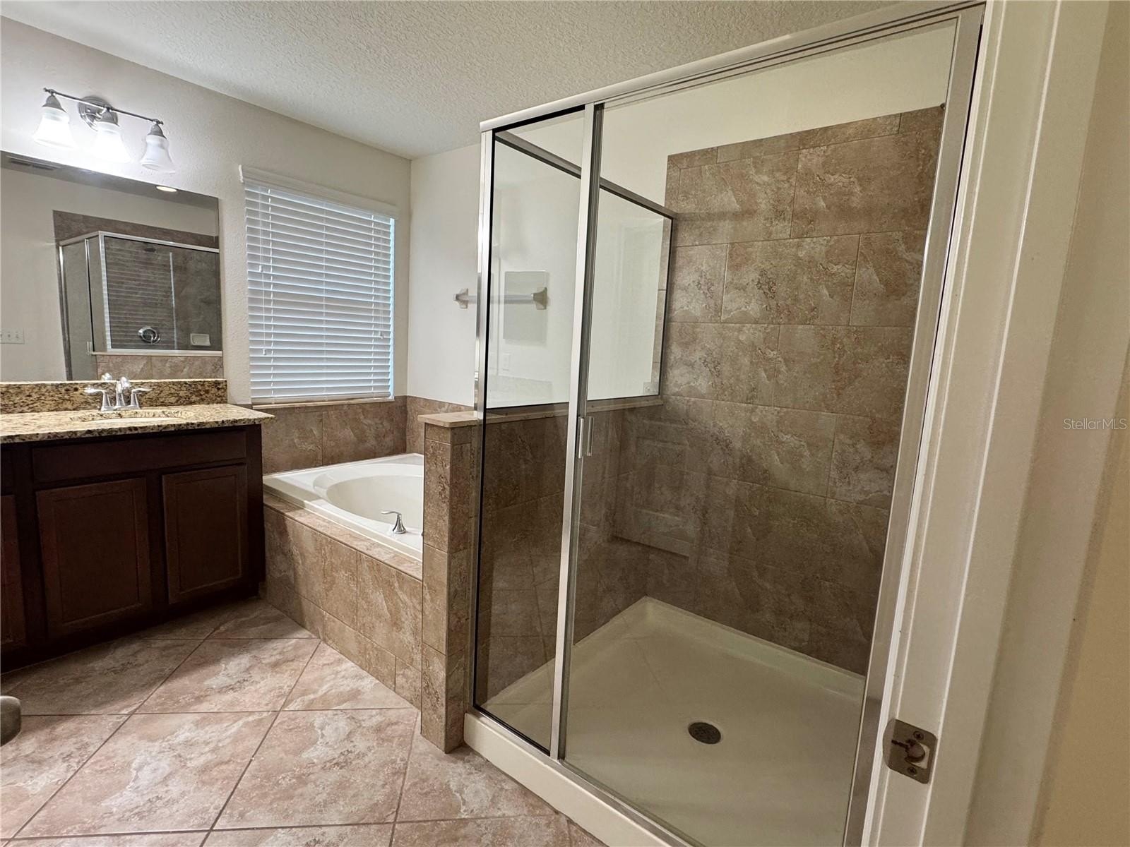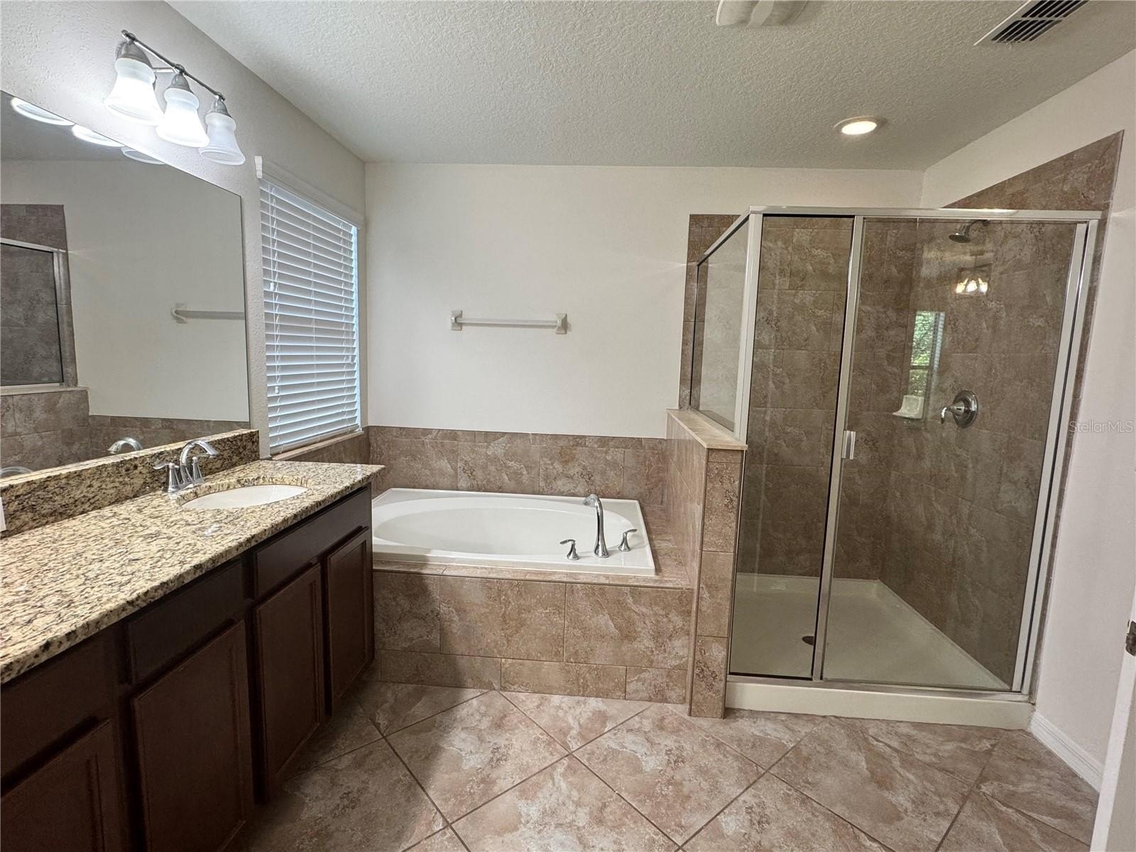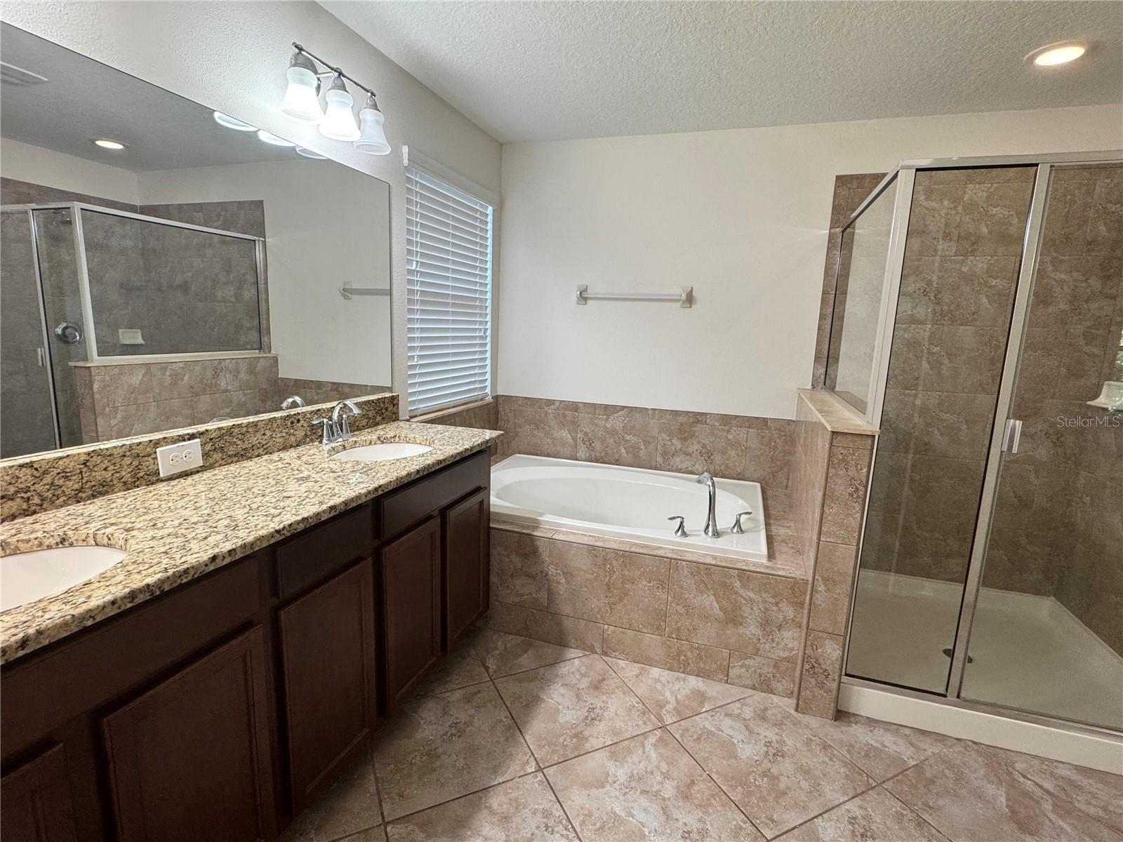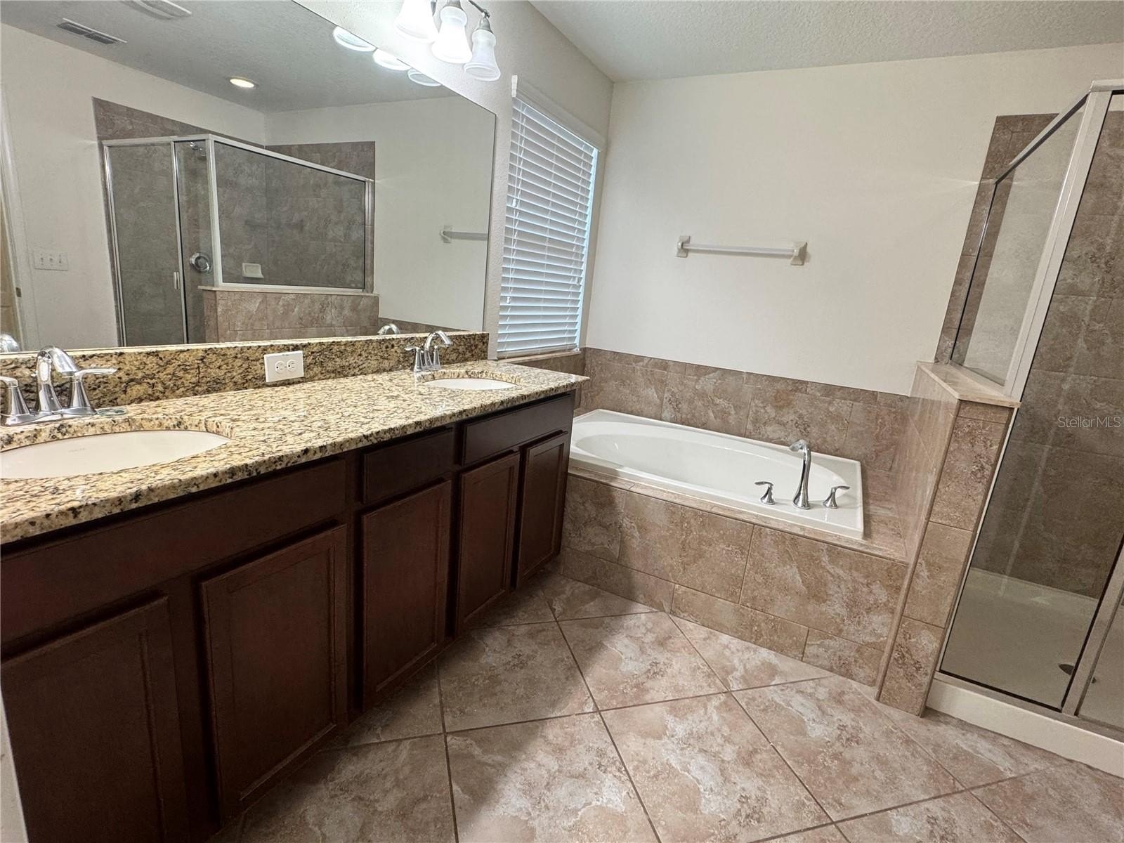This beautifully designed 4-bedroom, 2.5-bathroom home features an open and airy floor plan with abundant natural light. The spacious great room flows seamlessly into an eat-in kitchen, complete with 42" maple cabinets, quartz countertops, and stainless steel appliances—perfect for both everyday living and entertaining. A separate formal dining room adds an elegant touch, while the living area overlooks a peaceful lanai, ideal for relaxing in the shade thanks to the home's northern exposure. The luxurious owner's suite offers a walk-in closet and a spa-like ensuite bath with dual sinks, a garden tub, and a separate shower. Three additional bedrooms provide plenty of space for family or guests.