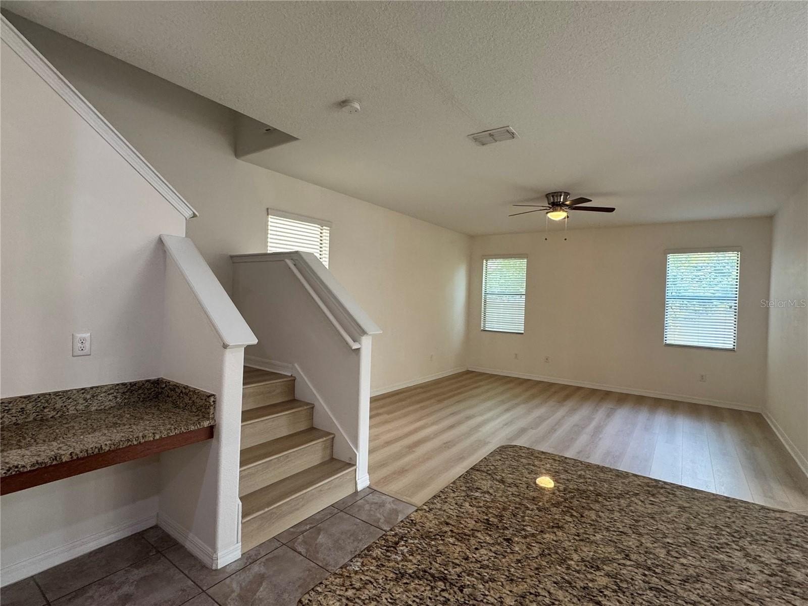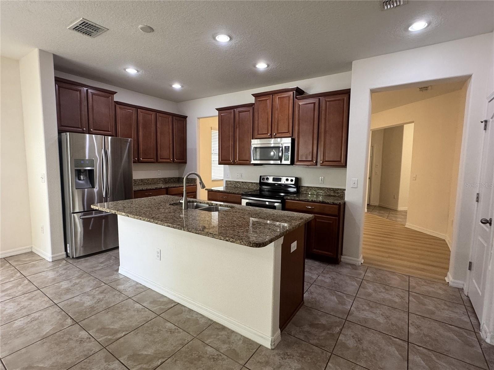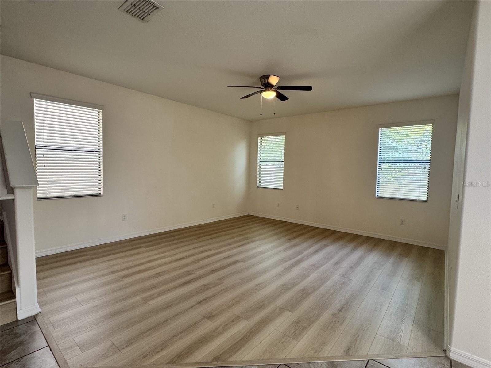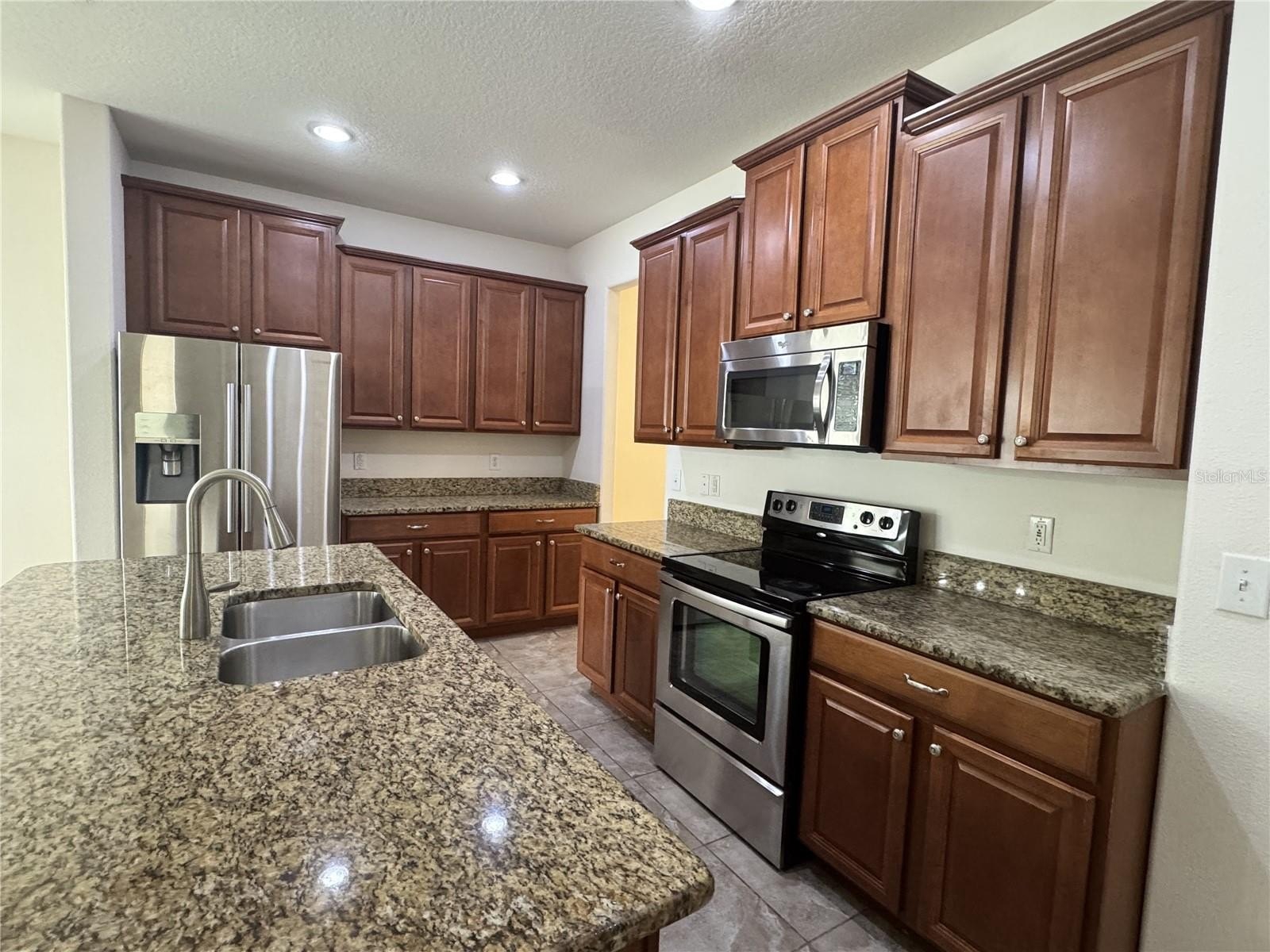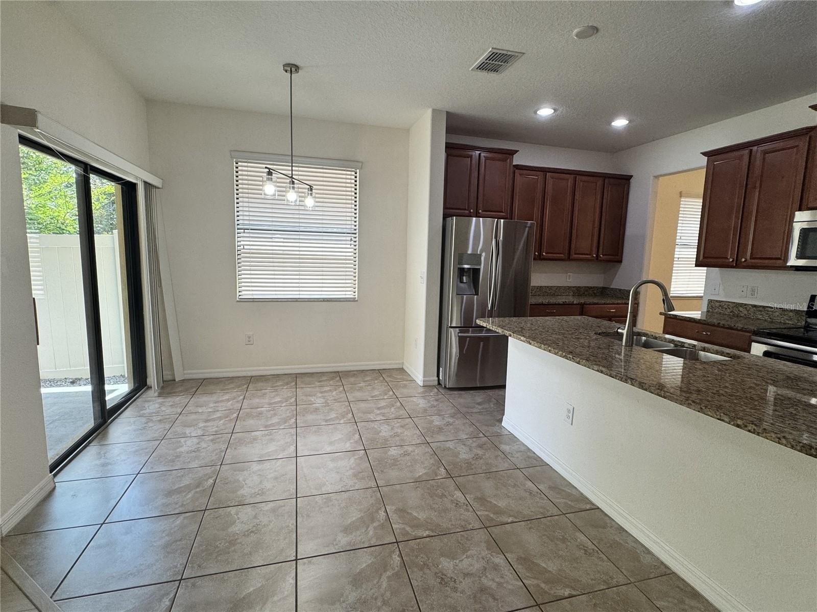 This beautifully designed 4-bedroom, 2.5-bathroom home features an open and airy floor plan with abundant natural light. The spacious great room flows seamlessly into an eat-in kitchen, complete with 42" maple cabinets, quartz countertops, and stainless steel appliances—perfect for both everyday living and entertaining. A separate formal dining room adds an elegant touch, while the living area overlooks a peaceful lanai, ideal for relaxing in the shade thanks to the home's northern exposure. The luxurious owner's suite offers a walk-in closet and a spa-like ensuite bath with dual sinks, a garden tub, and a separate shower. Three additional bedrooms provide plenty of space for family or guests.