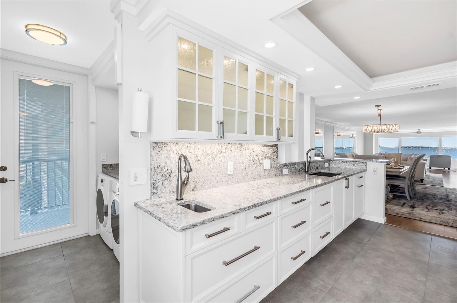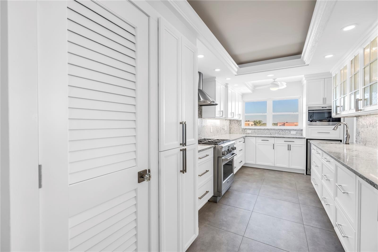 The gourmet kitchen is a true showpiece — featuring Monogram and Wolf appliances, a premium Franke sink with touch faucets, a separate bar/prep sink, two dishwashers, and a fully appointed butler’s pantry. A spacious breakfast bar completes this entertainer’s dream, ideal for hosting intimate dinners or grand holiday gatherings.
