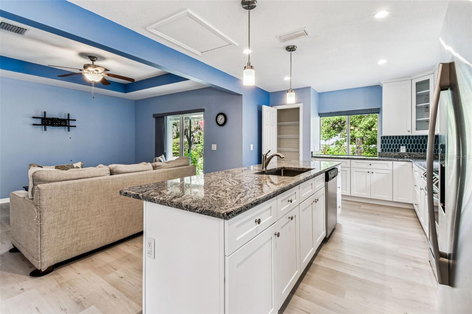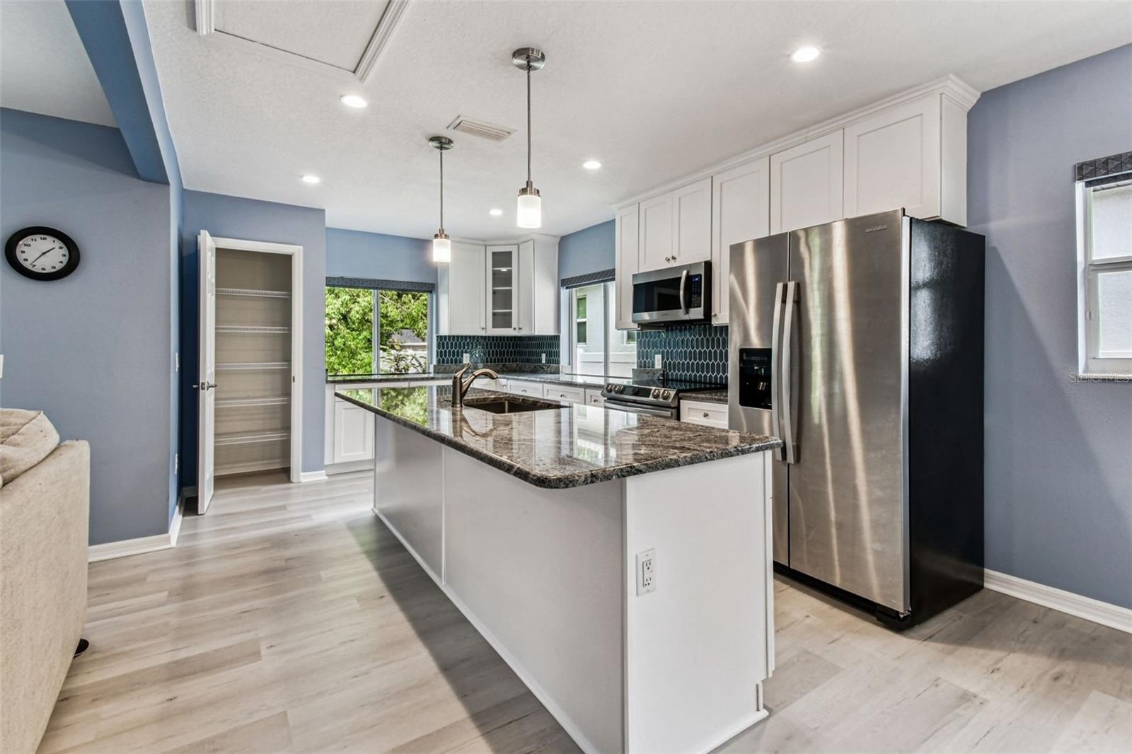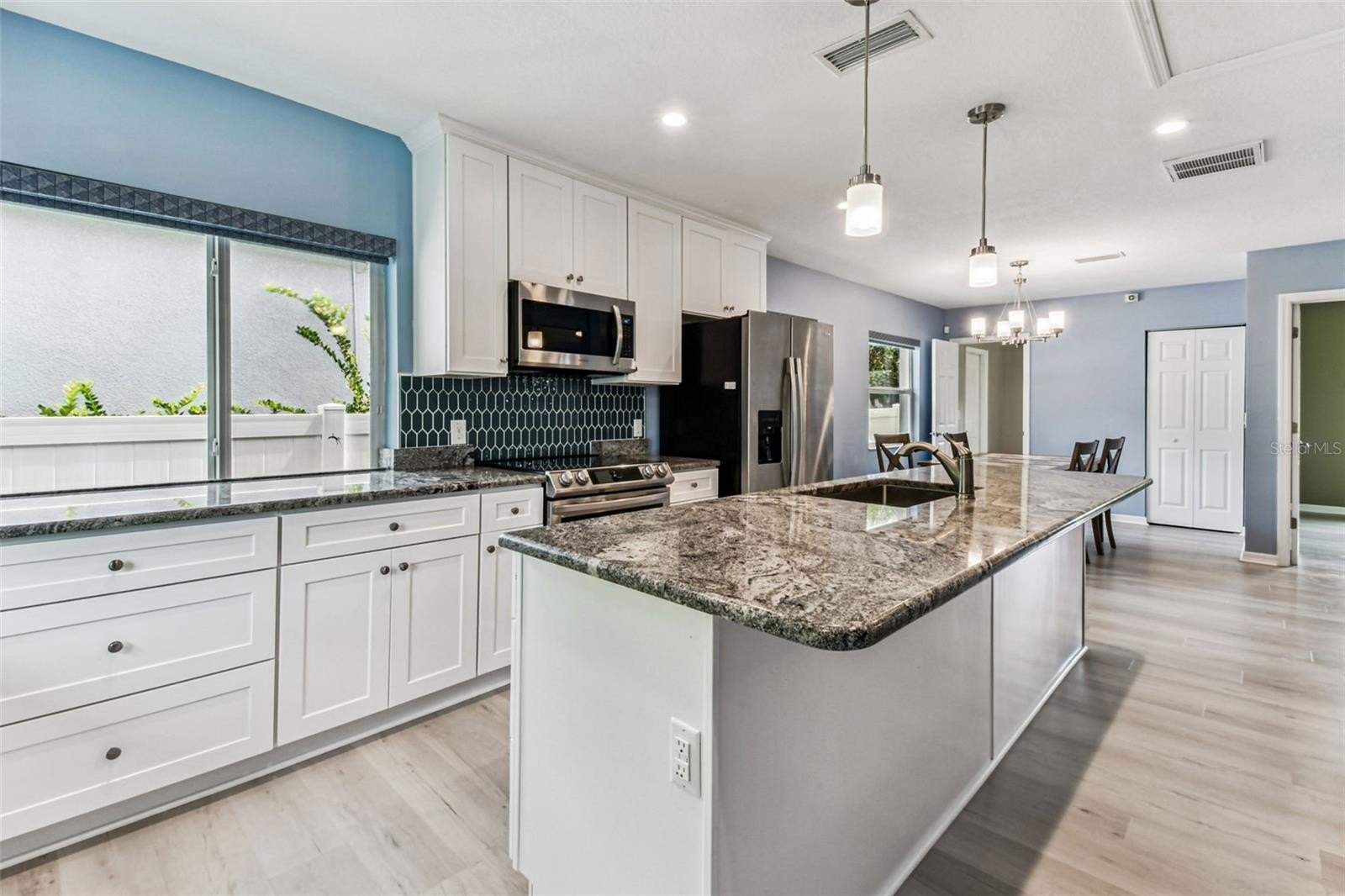 Step inside to a spacious open-concept layout that seamlessly blends the kitchen, dining area, and great room—perfect for entertaining and everyday living. The large chef’s kitchen is a standout feature, boasting stone countertops, an oversized 5+ foot island, a pantry, and a Samsung induction range with air fryer and double oven.