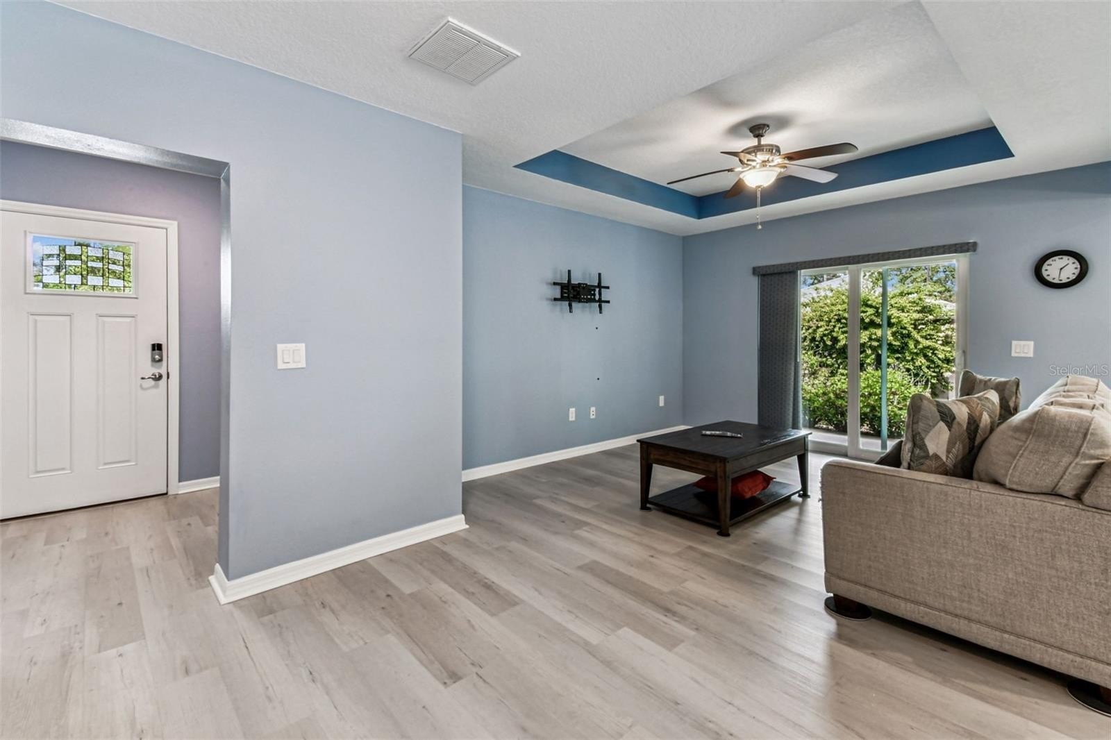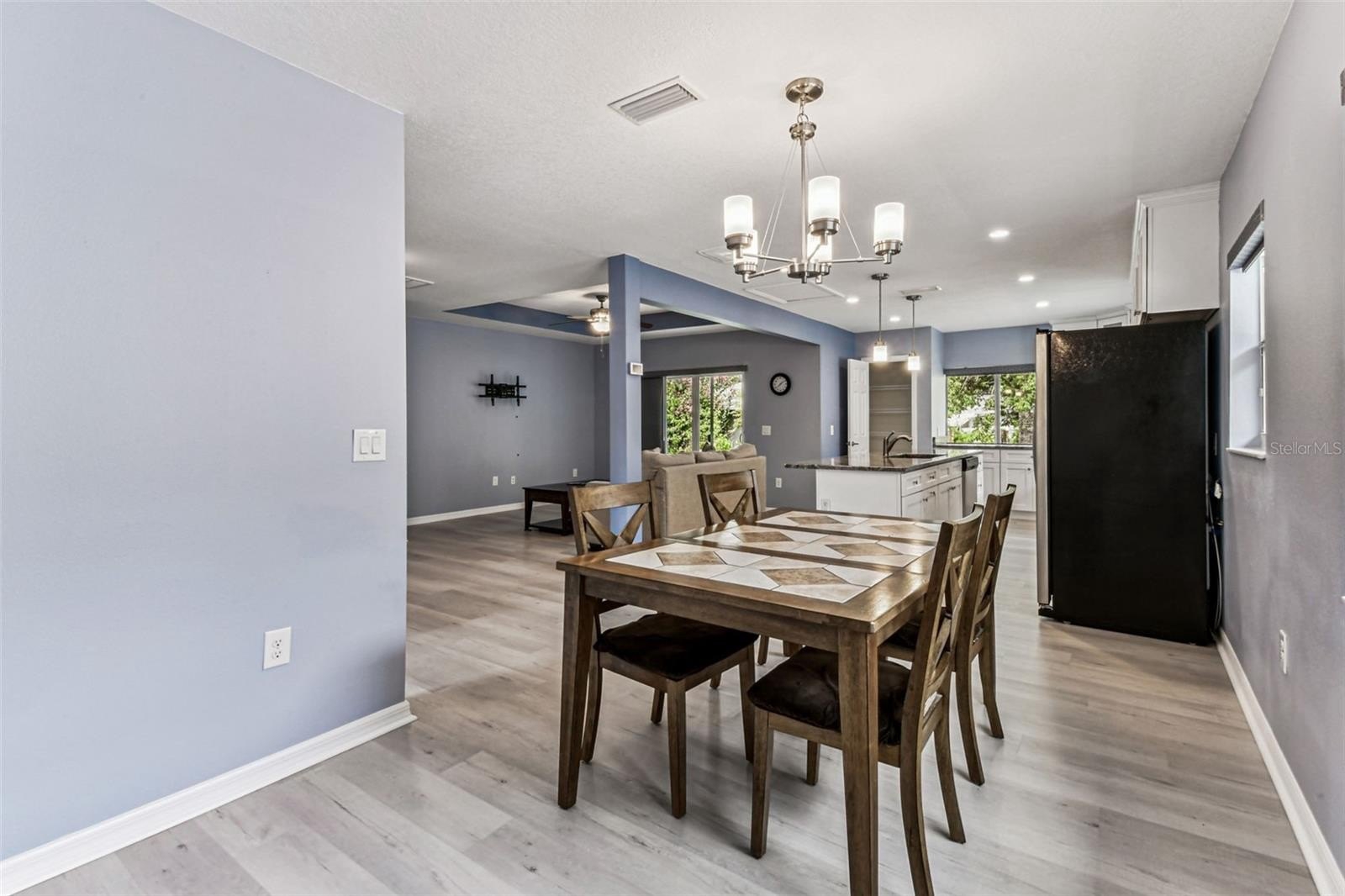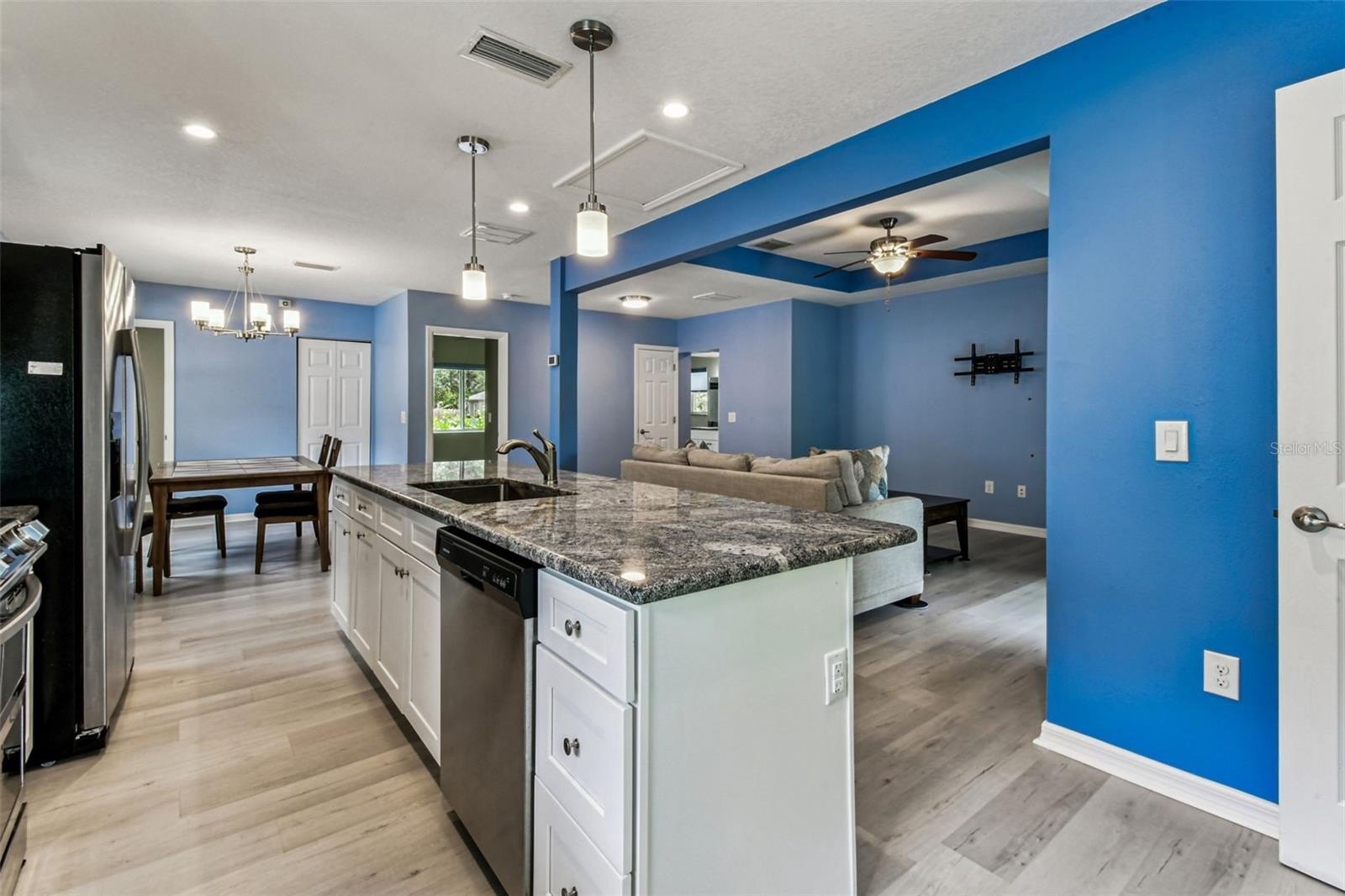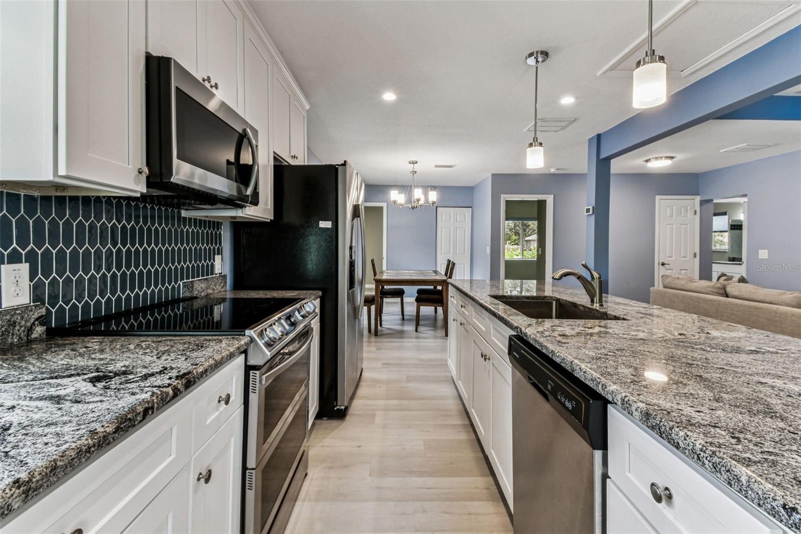 Step inside to a spacious open-concept layout that seamlessly blends the kitchen, dining area, and great room—perfect for entertaining and everyday living. The large chef’s kitchen is a standout feature, boasting stone countertops, an oversized 5+ foot island, a pantry, and a Samsung induction range with air fryer and double oven.