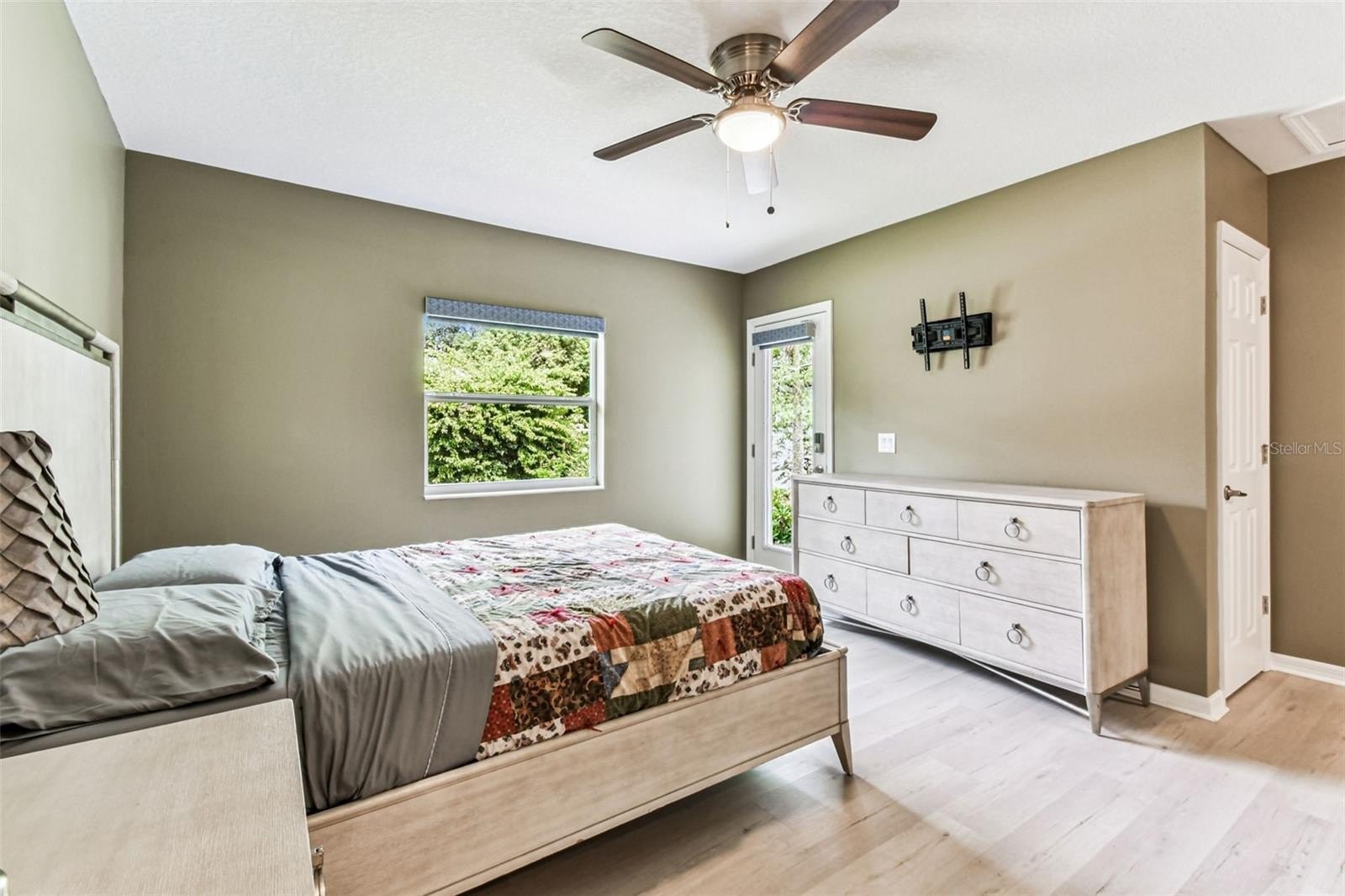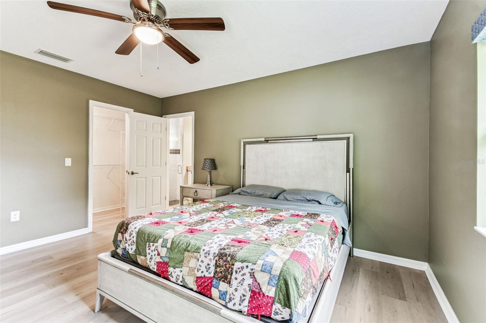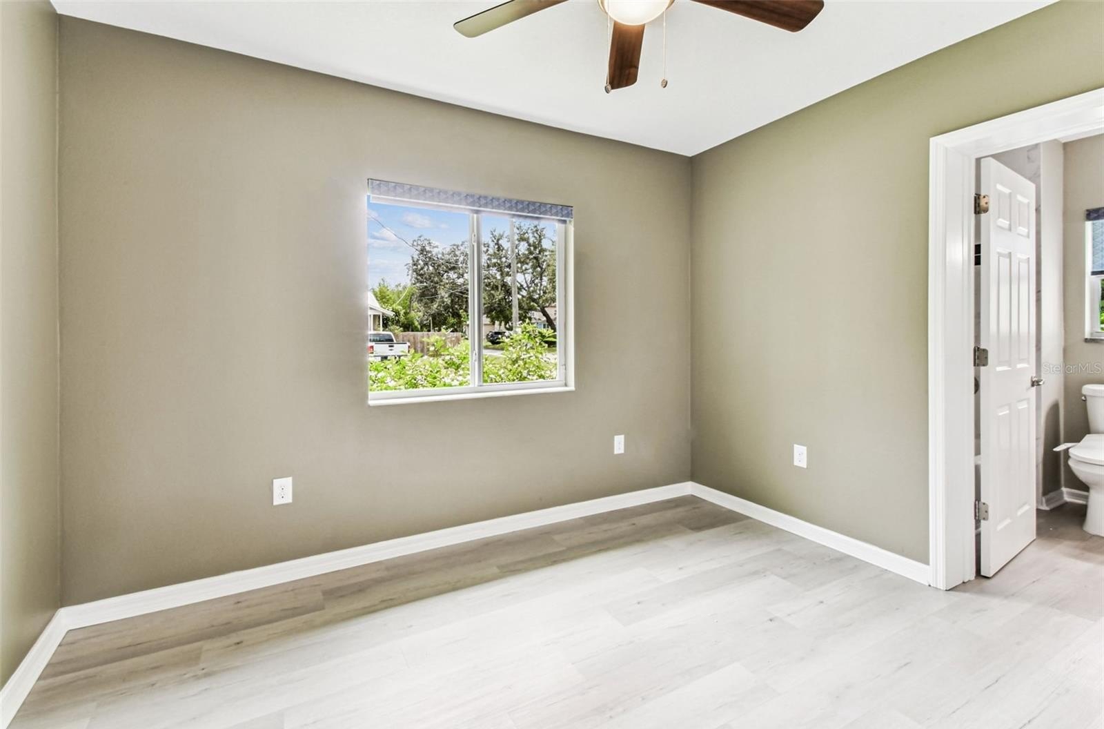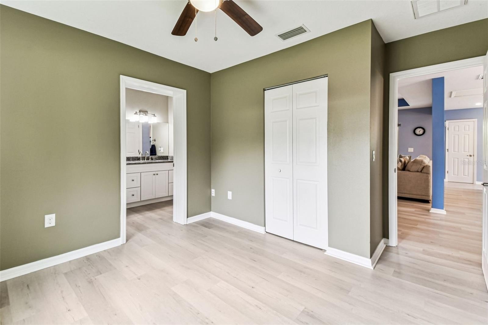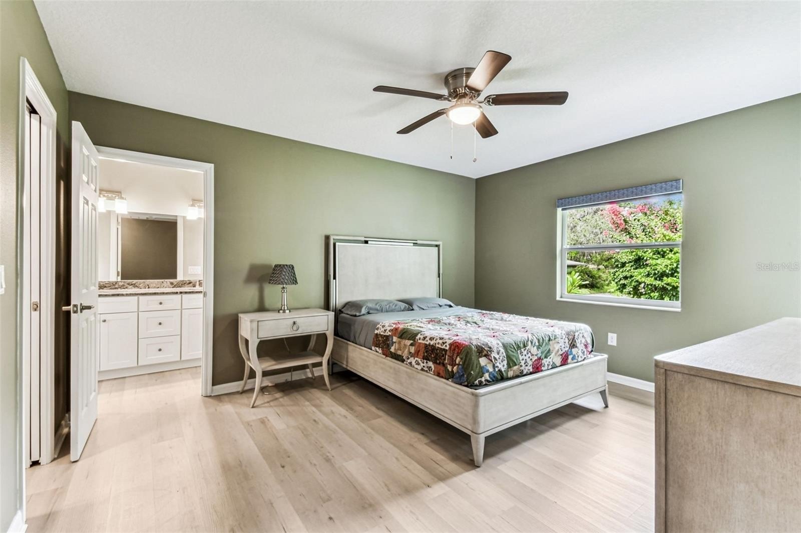 This home offers 2 bedrooms and 2 full bathrooms, including a serene primary suite with a walk-in closet, private ensuite bath with a walk-in shower, and direct access to the side yard patio. The guest bedroom features convenient ensuite access to the guest bath, which includes a tub/shower combo.