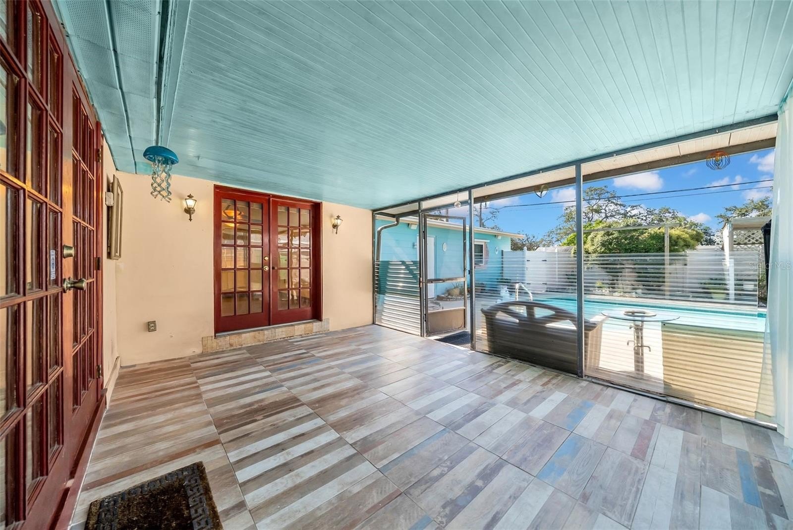 Welcome to your new home in the highly desired Disston Heights neighborhood of St. Petersburg! This solid block construction, 3 bedroom, 2 bathroom POOL HOME sits high and dry in the heart of the city. Just under 2,000 sqft! This home has a split floor plan layout, a cozy wood-burning fireplace, and peace of mind with big ticket items updated. Upon entering through the front door, there is a seamless flow and open sightline from the living room through the dining area, bonus room, through the glass French doors and the large covered screened porch all the way to the sparkling pool. The primary bedroom has it's own private en suite bathroom with separate makeup area and a walk-in closet
