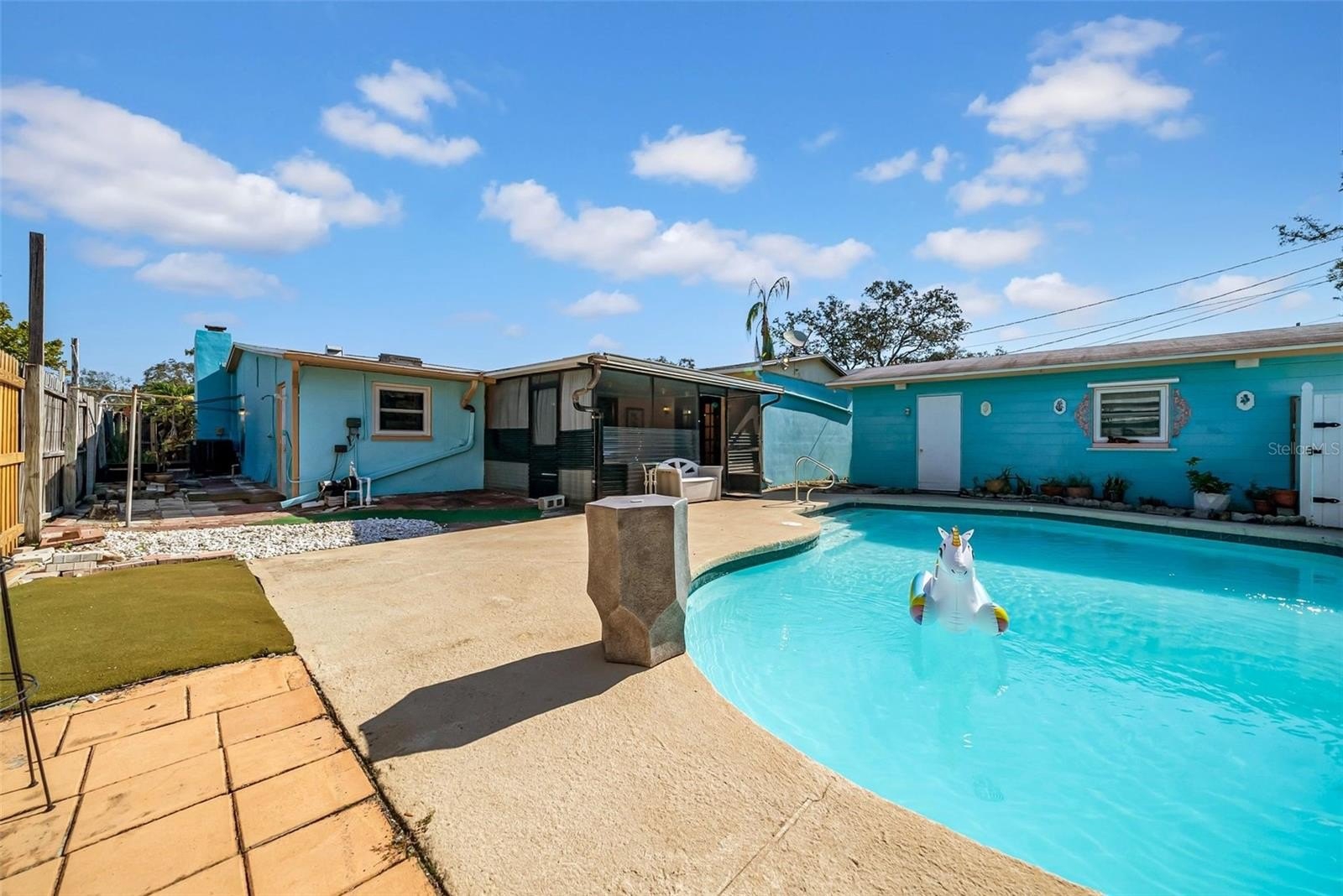 Outside, the property boasts a sparkling pool, a relaxing screened-in porch, a detached garage, a long driveway with plenty of parking, and convenient alley access. Ideally located just 15 minutes to the world-famous beaches and 10 minutes to vibrant Downtown St. Pete!