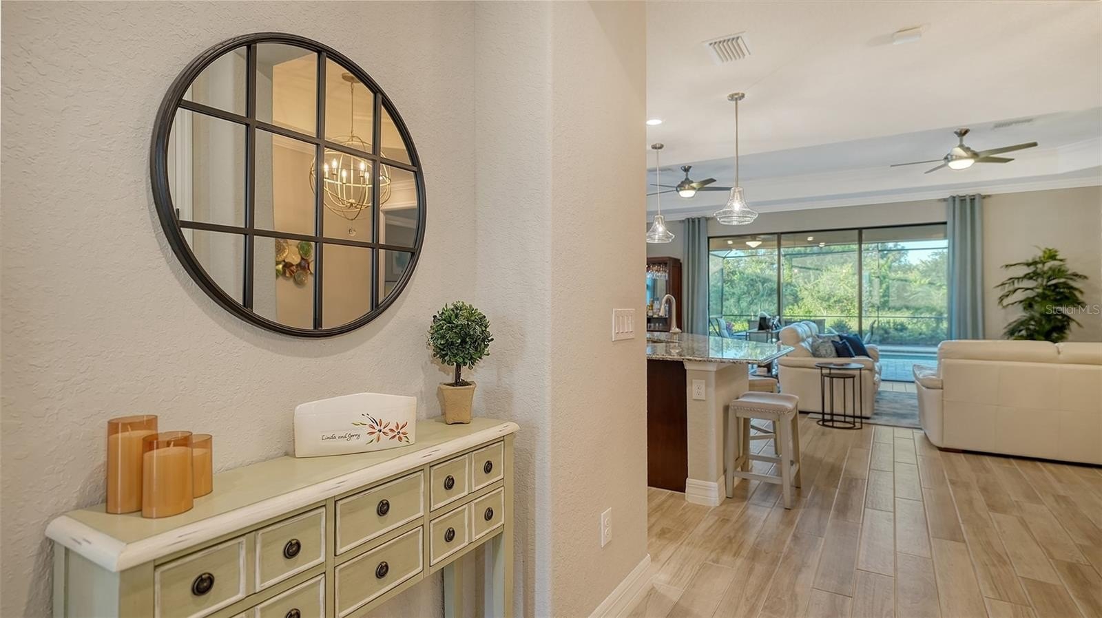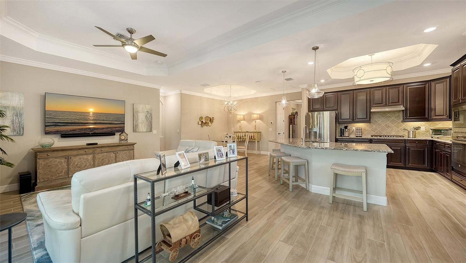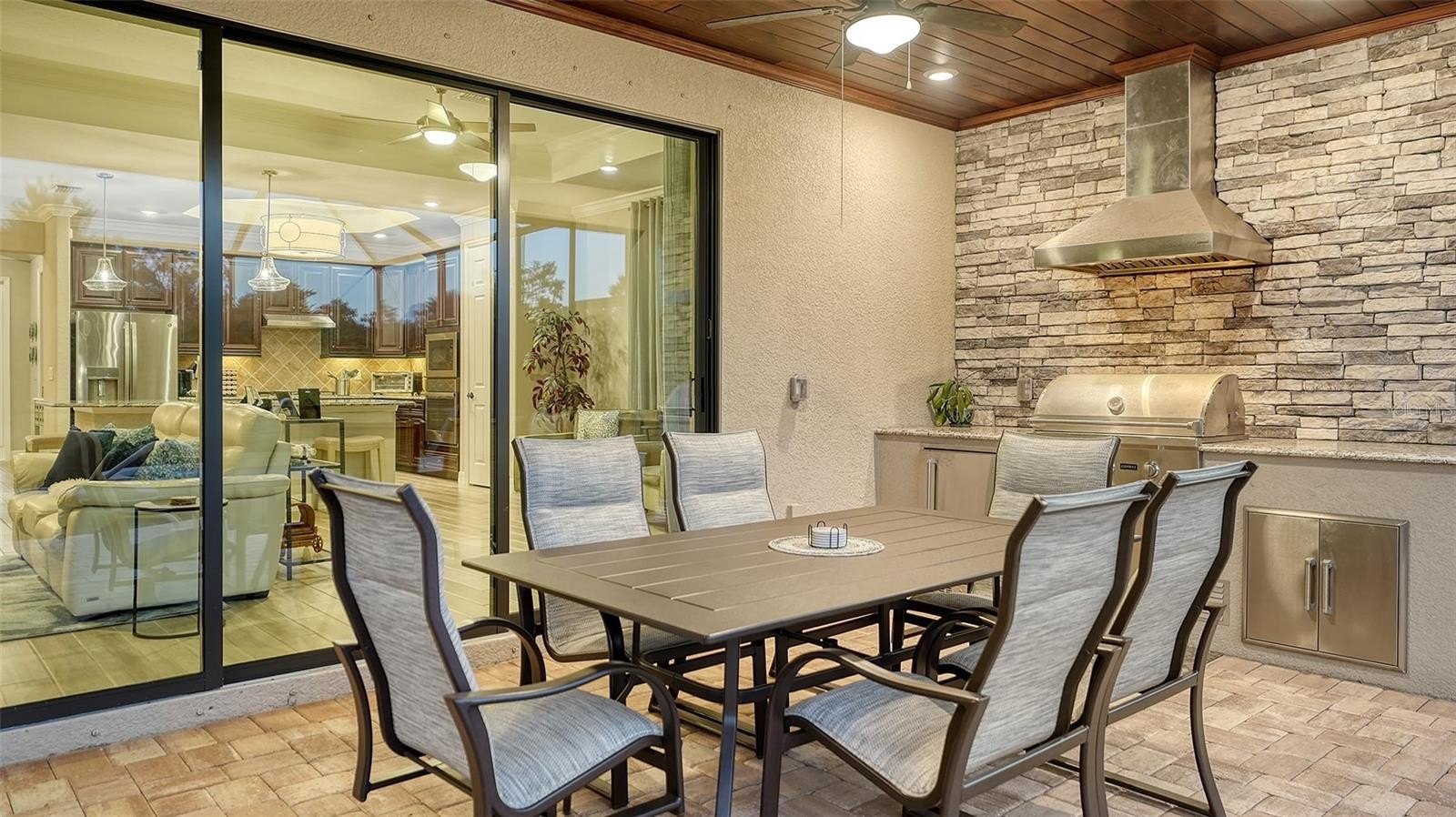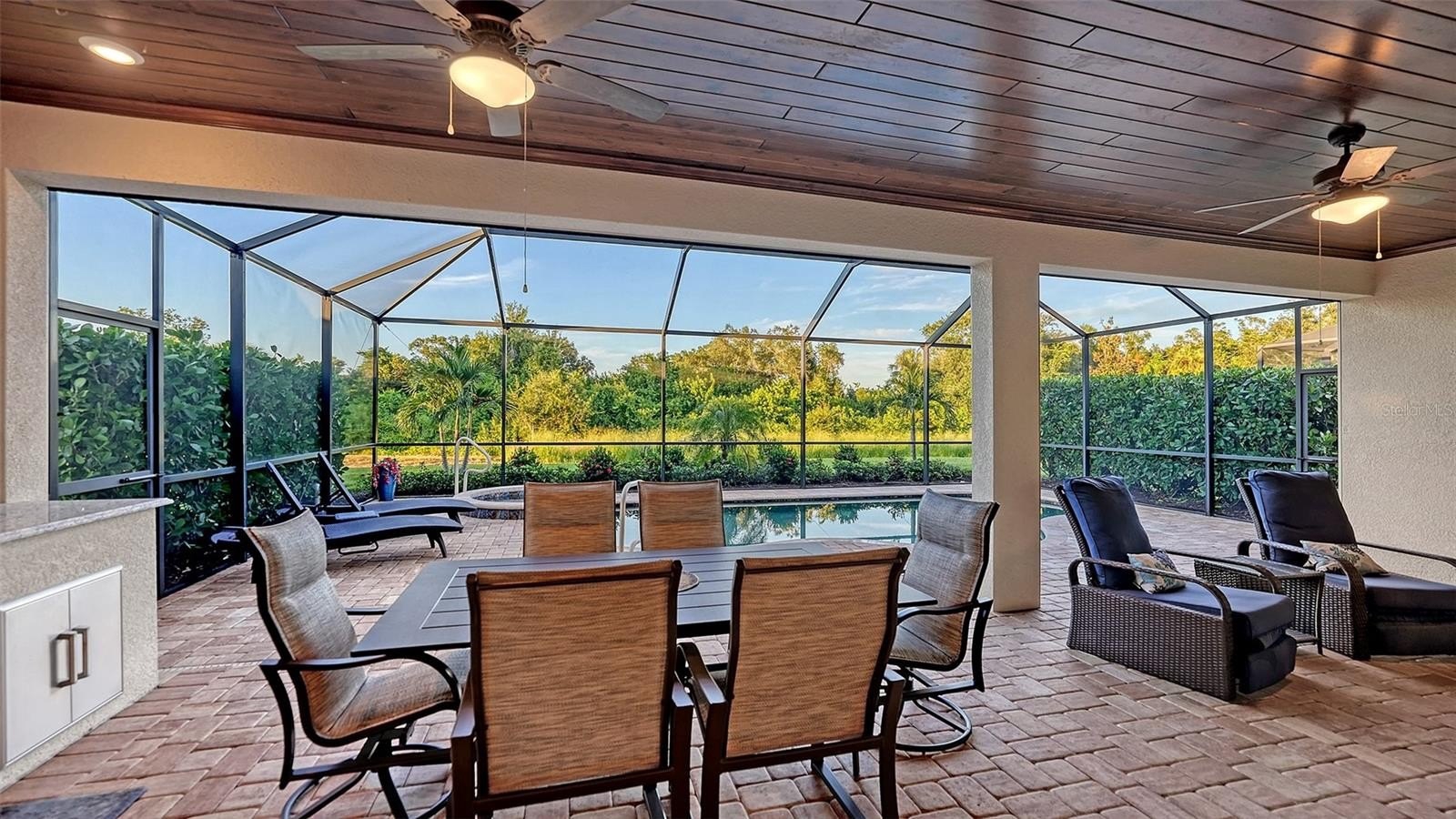 Designed for entertaining, the expansive screened lanai includes Powered Hurricane Storm Shades, a Heated Pool, Relaxing Hot Tub, and fully equipped Outdoor Kitchen. The home also includes IMPACT GLASS Windows and a WHOLE-HOME GENERATOR for peace of mind and safety.