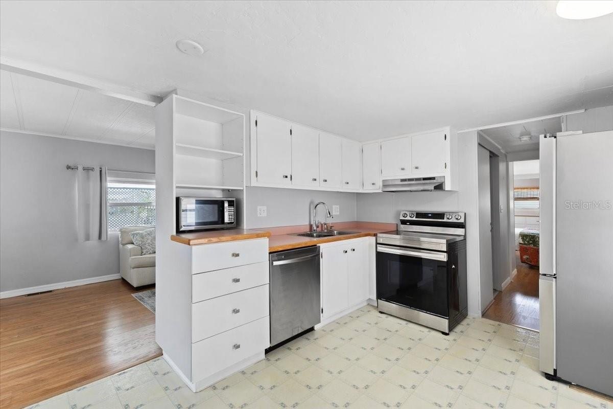 Freshly Updated 2 Bedroom, 2 Bath Home in Trailer Estates Marina Community on Sarasota Bay. This charming home features all-new appliances and has been freshly painted, offering a move-in ready experience. Enjoy a cozy screened front porch and a covered back porch, perfect for relaxing or entertaining. The generous-sized addition boasts extra tall ceilings, providing ample space for laundry, a workshop, or storage. A carport and pavered parking area completes the exterior, combining functionality with curb appeal. Located in Trailer Estates, a Special Park and Recreation District governed under Chapter 418, Florida Statutes. Residents own their land—no lot rent, CDD, or HOA fees. The annual park tax covers cable, high-speed internet, trash pickup, and access to outstanding amenities including a marina with rentable boat slips, private beach, pool, hot tub, fitness center, shuffleboard, bocce ball, pickleball, woodshop, and nearly 60 active clubs and social events. Experience one of Sarasota Bay’s most vibrant and welcoming 55+ communities.