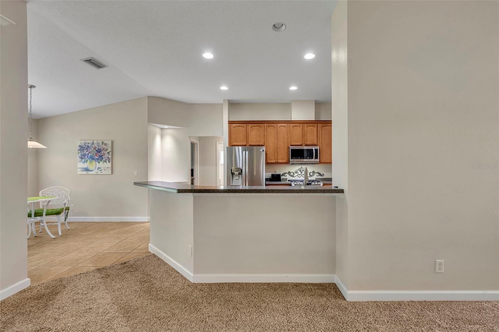 One or more photo(s) has been virtually staged. This 3-bedroom, 2-bathroom home is located on a corner lot in the 55+ Lakes of Mount Dora community. The open floor plan includes a living and dining area, a kitchen with newer LG stainless steel appliances, dinette and a breakfast bar.
