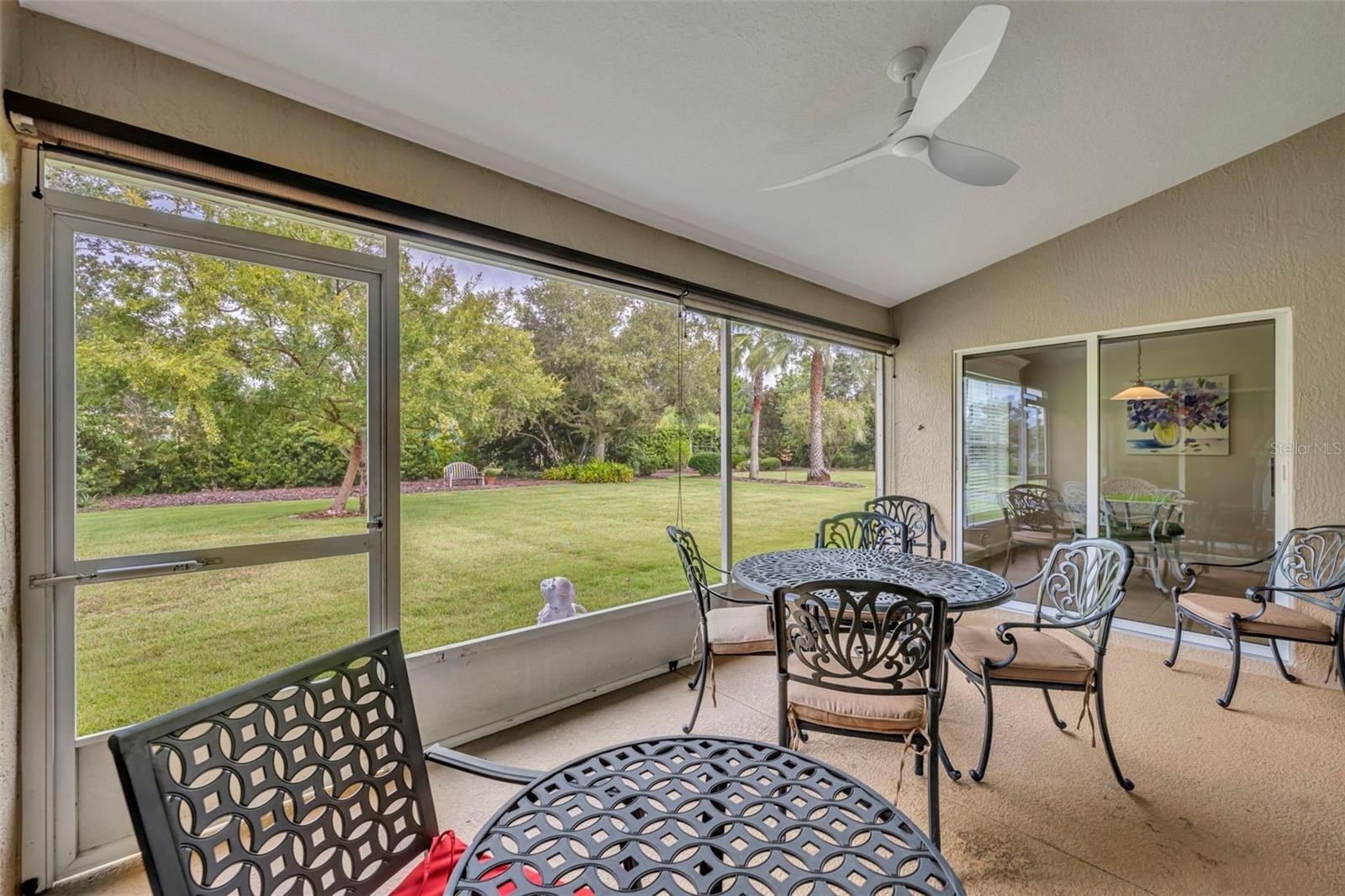 The primary suite features a walk-in closet, dual vanities, private water closet and a separate walk-in shower. Two additional bedrooms provide space for guests or an office. A screened enclosed lanai overlooks the backyard, providing a comfortable outdoor living area.