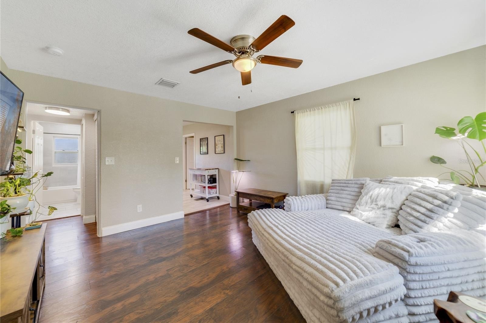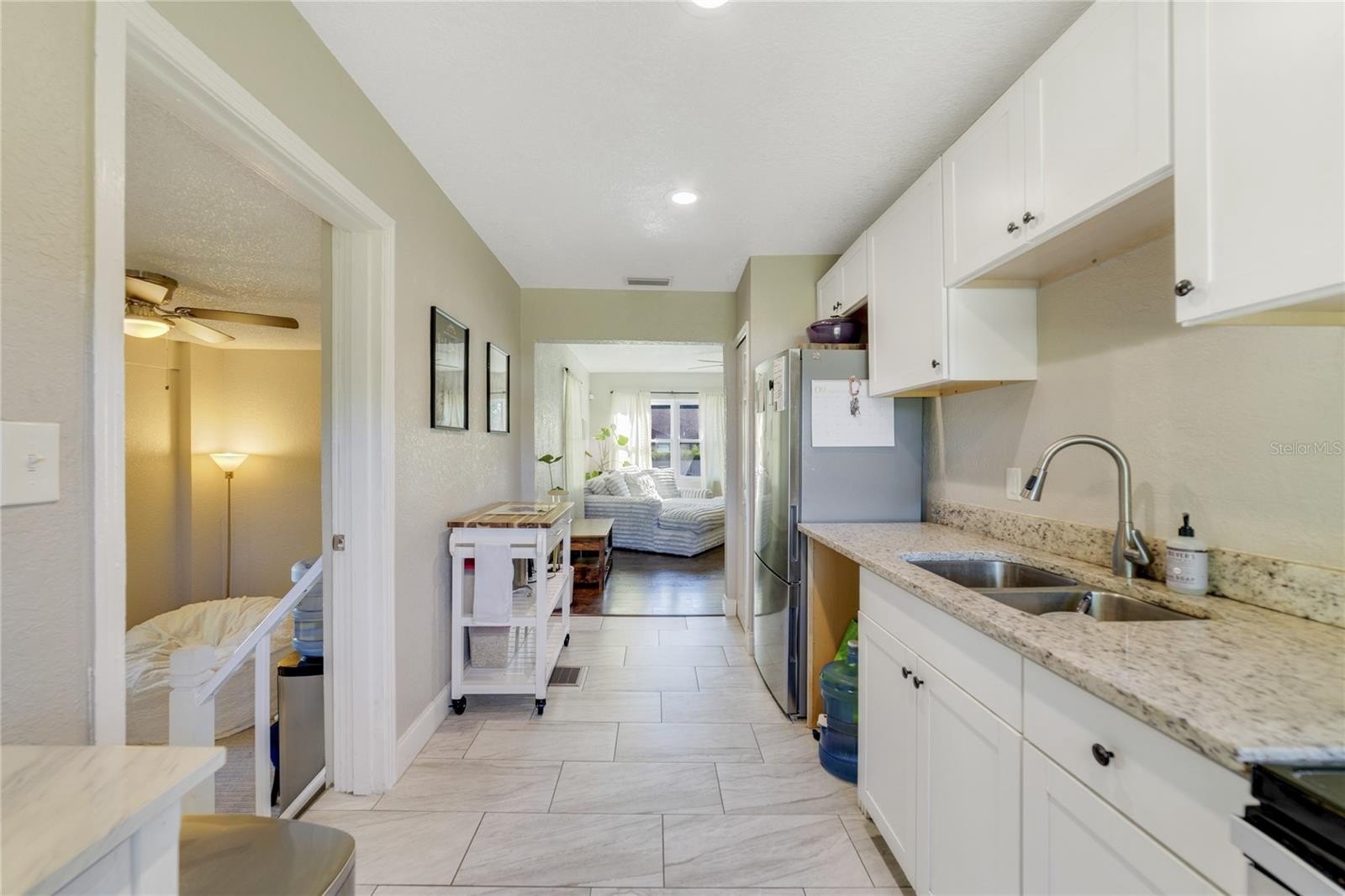 The layout offers both functionality and flexibility. The primary and second bedrooms are tucked away for privacy, while the third bedroom, located just off the kitchen, offers a versatile space ideal for a home office, creative studio, playroom, or guest suite.