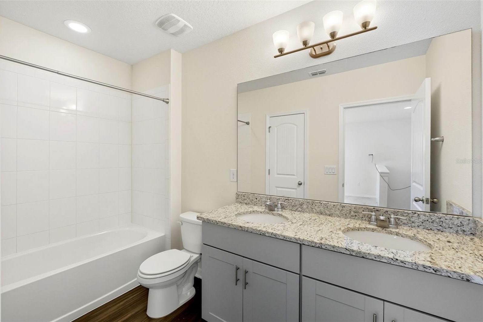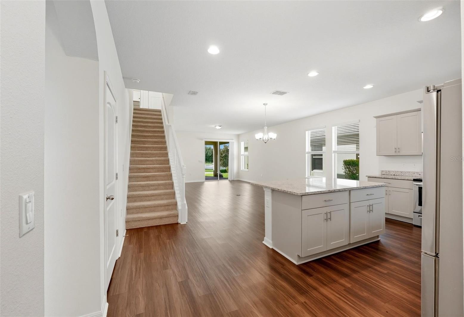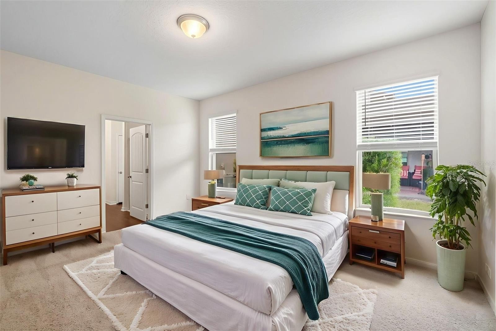 One or more photo(s) has been virtually staged. Stunning Corsdale model in immaculate condition featuring 3 bedrooms and 2.5 bathrooms with an open feel and downstairs master suite that creates a space that is comfortable, inviting, and perfect for entertaining. As you enter, a beautiful front porch welcomes you to this home. The well appointed kitchen overlooks the family room, dining room, and oversized lanai giving the impression of a large communal area. The kitchen features granite counters, stainless steel Whirlpool appliances, spacious walk in pantry, and island bar with seating. The downstairs master bath features a double sink with granite tops. The second floor features a loft area and 2 bedrooms that share a bathroom and linen closet. The luxury vinyl in living areas add a touch of warmth to the space and designer fixtures create a luxurious space that will accommodate just about any style of living. The community of Waterliegh offers world class amenities including: 2 beautiful clubhouses with 2 resort style pools, 2 fitness centers, putt-putt golf, beach volleyball court, picnic area with lake views, dog park, and more. It’s better than new with so much to offer. You’re home!