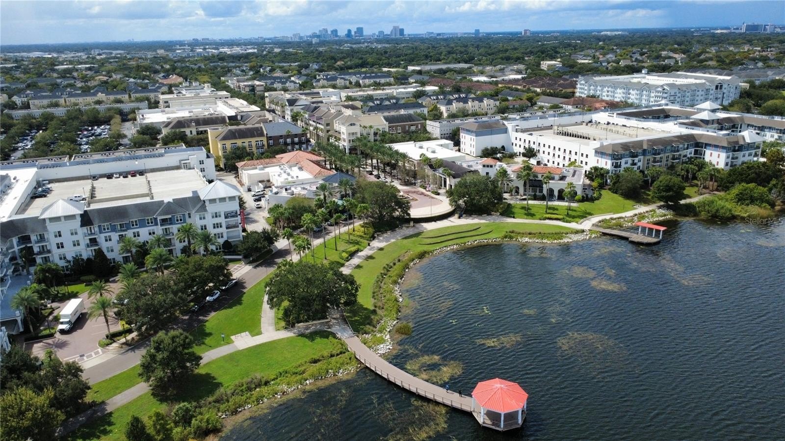 Discover this beautifully updated one story home by David Weekley, nestled on a picturesque street in Baldwin Park. Enjoy the peaceful pond views and breathtaking western sunsets from the welcoming front porch. This inviting space sets the tone for relaxed Baldwin Park living, making it an ideal spot for morning coffee or evening sunsets. Inside, the home offers three spacious bedrooms plus a private studio apartment above the garage - a versatile fourth bedroom complete with a full kitchen and bath. With access from the main home, the studio is perfect for guests, in-laws, or a quiet home office. At the heart of the home, the stunning kitchen features custom white cabinetry with detailed molding and dark hardware provides a timeless, elegant look, complemented by gleaming quartz countertops and a matching full height quartz backsplash for a seamless, high end finish. The oversized island offers a built in cooktop, abundant workspace, a built in wine rack, and comfortable seating for casual dining. Premium stainless steel appliances, including a double wall oven, dishwasher, and oversized refrigerator, make the space both beautiful and highly functional. A softly white washed brick archway frames the kitchen, adding texture and architectural charm, while warm hardwood floors introduce comfort and contrast. The family room features both a wet bar and a dry bar, complete with a wine or beverage cooler, offering the perfect setup for entertaining or relaxed evenings at home. The formal dining room is ideal for hosting gatherings, with room for a long table and elegant setting. Step through to the covered back porch, an inviting retreat featuring electric screen shutters and a tongue and groove wood ceiling for added architectural charm. Overlooking a beautifully landscaped patio and fire pit, this space is perfect for outdoor dining, entertaining, or simply unwinding in the peaceful backyard garden. The private primary suite is located at the rear of the home and offers a custom walk in closet and a spa inspired bath with separate tub and shower. Two secondary bedrooms share a flex space, ideal for a study, playroom, or reading nook. One bedroom has an ensuite bath, and an additional full bathroom serves the other bedroom and the flex space. A half bath conveniently serves guests and the outdoor area. Major updates include new double pane windows, dual 2024 AC systems. The home features wood and tile flooring throughout, creating a cohesive and low maintenance design. Enjoy the best of Baldwin Park living with tree lined streets, scenic lakes and walking trails, community pools, gyms, parks, and local shopping and dining just moments away. Schedule your private showing today to experience one of Baldwin Park’s most distinctive homes.