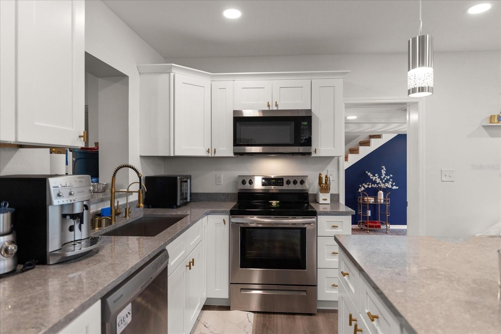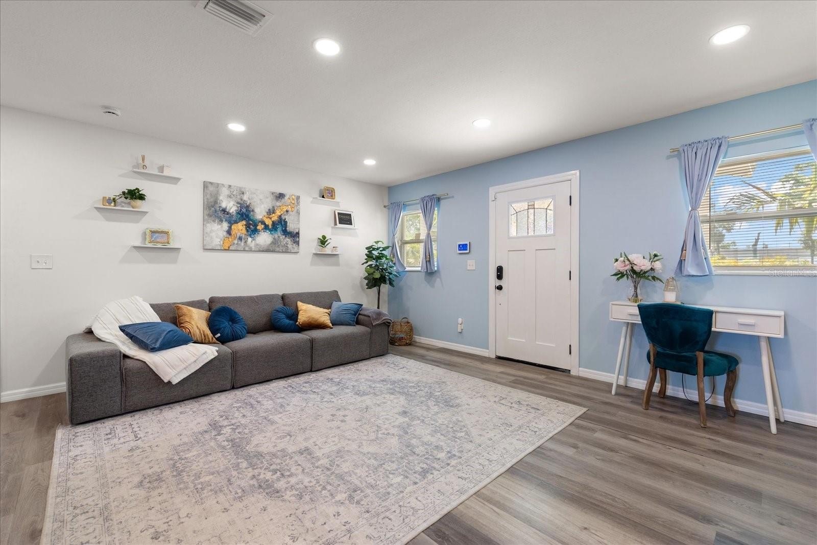 Priced 10% below recent appraised value. Motivated seller. Live, Work, Play in the Heart of Pinellas County! This fully renovated, move-in ready 3-bedroom, 2-bathroom two story home sits on over a quarter of an acre in a prime central location with easy access to Tampa, St. Pete, and Clearwater. Located just 3 minutes from Largo Mall, all your daily conveniences are right at your fingertips! Zoned E-2 Commercial and grandfathered as residential, this rare UNINCORPORATED property is perfect as a primary home, AirBnB, or home-based business, offering unmatched versatility and investment potential! Inside, the home boasts an open and airy floor plan filled with natural light, perfect for both entertaining and everyday living. The kitchen has been fully updated with granite countertops, soft-close cabinetry, modern gold hardware, and a farmhouse-style sink with a reverse osmosis (RO) drinking water system. Stainless steel appliances give the space a clean, modern touch, and a large back room just off the kitchen serves as a walk-in pantry and laundry area, adding valuable utility space. The primary suite is a standout, featuring an oversized walk-in closet that’s nearly as large as the bedroom itself, offering abundant space for wardrobes and storage. Both bathrooms have been fully renovated with elegant tile showers, updated vanities, and granite countertops, creating spa-like retreats. Carpeted bedrooms and scratch-resistant laminate flooring throughout the main areas ties it all together with contemporary style. Upstairs, a versatile bonus room offers extra space for a home office, media room, or guest area—whatever suits your lifestyle! The home also features numerous recent upgrades including: new roof (2021), new HVAC system (2022), updated plumbing (2022), updated electrical system (2022) and new panel (2025), new windows (2022), plus a whole-home water softener system. Outside, the fully fenced backyard offers privacy and potential. Whether you envision a pool or outdoor entertaining area, there’s tons of room to bring your dream yard to life! The double driveway and gated entrance provide ample parking for multiple vehicles, boats, trailers, or even work equipment. A large shed (2022), already pre-wired for electricity, makes the perfect storage space for tools, seasonal décor, or could be transformed into a workshop! And best of all, this turn-key home is located on a quiet dead-end street in a NON-FLOOD ZONE (no flood insurance required!), offering peace of mind and room to grow—plus just 15 minutes to Indian Rocks, Reddington, and Clearwater Beaches!! Schedule your private showing today and explore the freedom, flexibility, and functionality this one-of-a-kind Largo property has to its next buyer !
