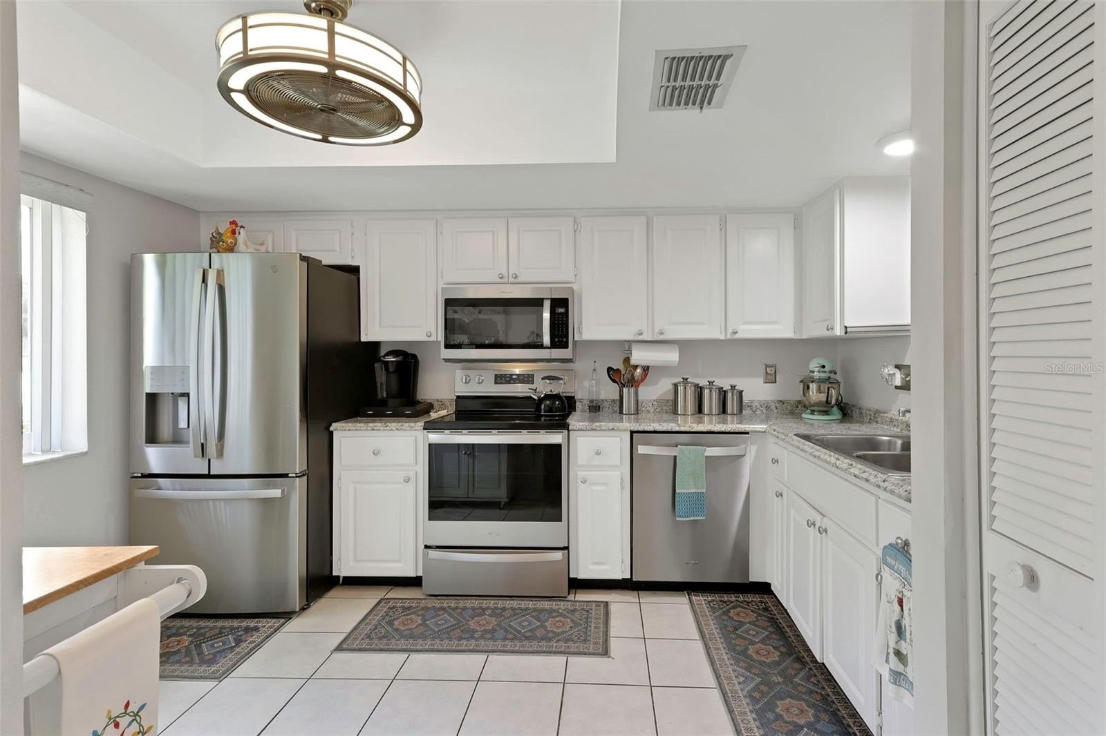 With 1,230 sq ft of thoughtfully designed space, you'll enjoy an updated kitchen with stainless steel appliances, an inside laundry room, and a spacious living area that includes a bright sunroom. Both bedrooms are oversized, and the rear patio leads to a tranquil, private backyard with shade tree—ideal for morning coffee, grilling, gardening, or simply relaxing with a good book.