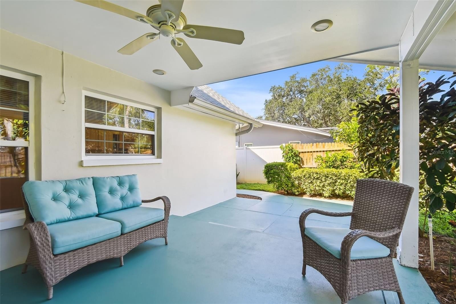 The spacious floor plan includes both a separate living room and family room, an inside laundry room, and two of the three bedrooms with ensuite bathrooms. Thoughtfully designed with abundant closet space throughout, this home provides plenty of room for storage and organization. Step outside to a covered patio overlooking the lush, landscaped backyard, complete with a sprinkler system, perfect for relaxing or entertaining. Exceptionally clean and move-in ready, the home has great curb appeal, a new roof, and the added assurance of no flooding during last year’s hurricanes.