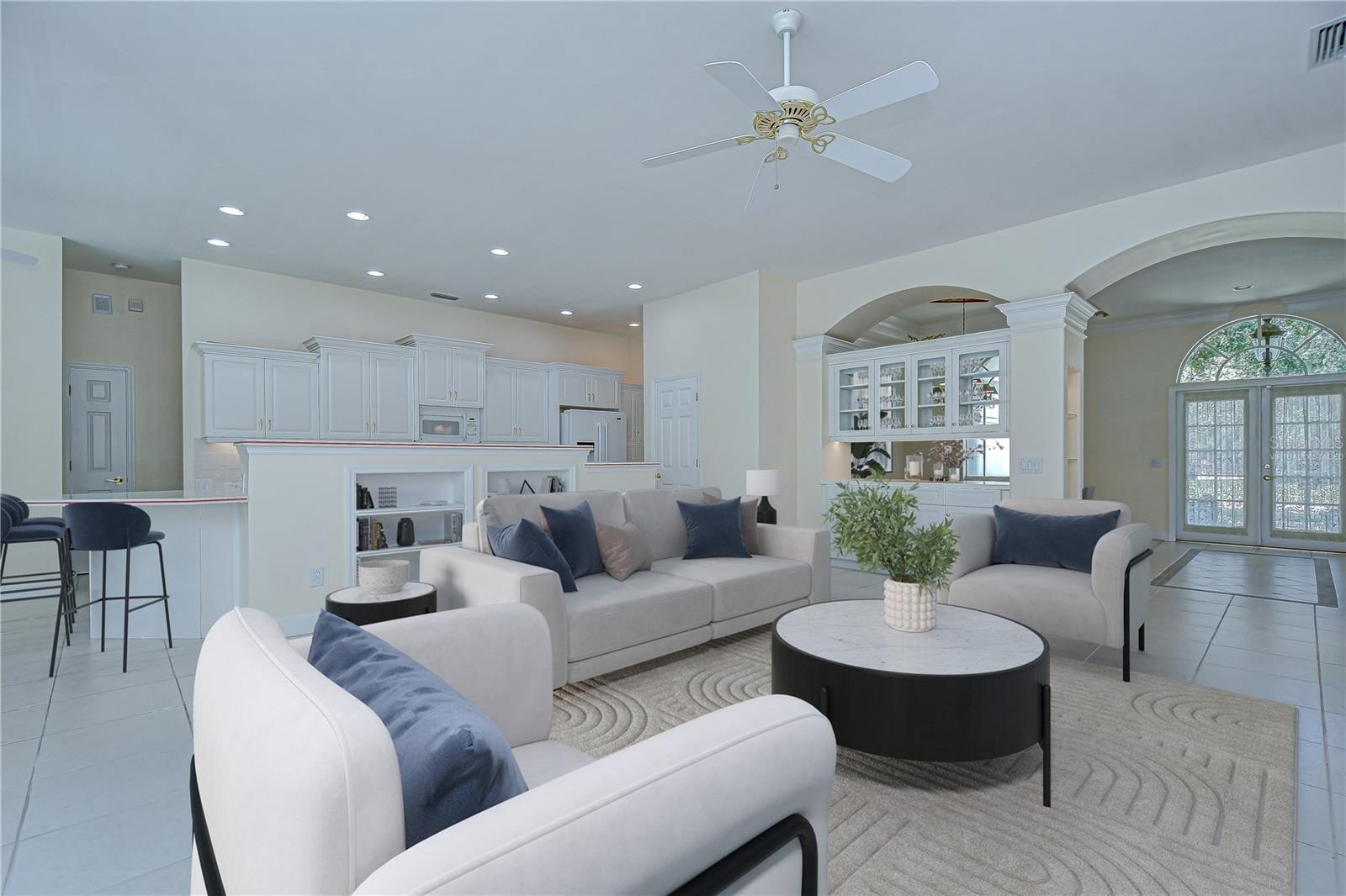 One or more photo(s) has been virtually staged. Welcome to this beautifully crafted, custom built, single-family residence by premier builder Marc Rutenberg. Located in the distinguished and sought-after community of Grey Oaks. This incredible value is a thoughtfully designed home featuring 3 spacious bedrooms, 3 full bathrooms, and a versatile 12x17 bonus room—ideal as a 4th Bedroom, home office, guest suite, or media room. Enter through double doors into an impressive modern floor plan featuring a formal living room, separate dining room with built-in display cabinet and serving bar. In addition, the spacious great room flows seamlessly into the pristine kitchen which boasts abundant cabinetry, solid surface counter tops, walk-in pantry, table-height snack bar and bright casual dining area. The mitered windows all overlook the shimmering pool and attached spa. The split bedroom layout ensures privacy for all. A tranquil primary suite, separate from guest rooms, features a peaceful view of pool, en suite bath with his & hers vanities, dressing table, large walk-in shower, separate garden tub, toilet room and an expansive walk-in closet. A few of the many additional features are 12’ ceilings, crown molding, recessed art niches, built-in book shelves, overabundance of storage, beautifully appointed and substantial mantel above the wood burning fireplace in great room. Perfect for Florida living, the screened enclosed lanai with brick paver deck has a kitchen and plenty of room for all your favorite pastimes. Situated on an oversized corner homesite, this home is graced with lush mature landscaping, stately oak trees and enjoys added privacy with only one adjacent neighbor and a peaceful pond at the rear. Tucked away in a quiet, secluded setting, conveniently close to shopping, dining, Brooker Creek Preserve, beaches and everyday amenities. This home offers the perfect blend of luxury, comfort, and location. Contact us today for a complete list of additional features and your private tour of this treasure.