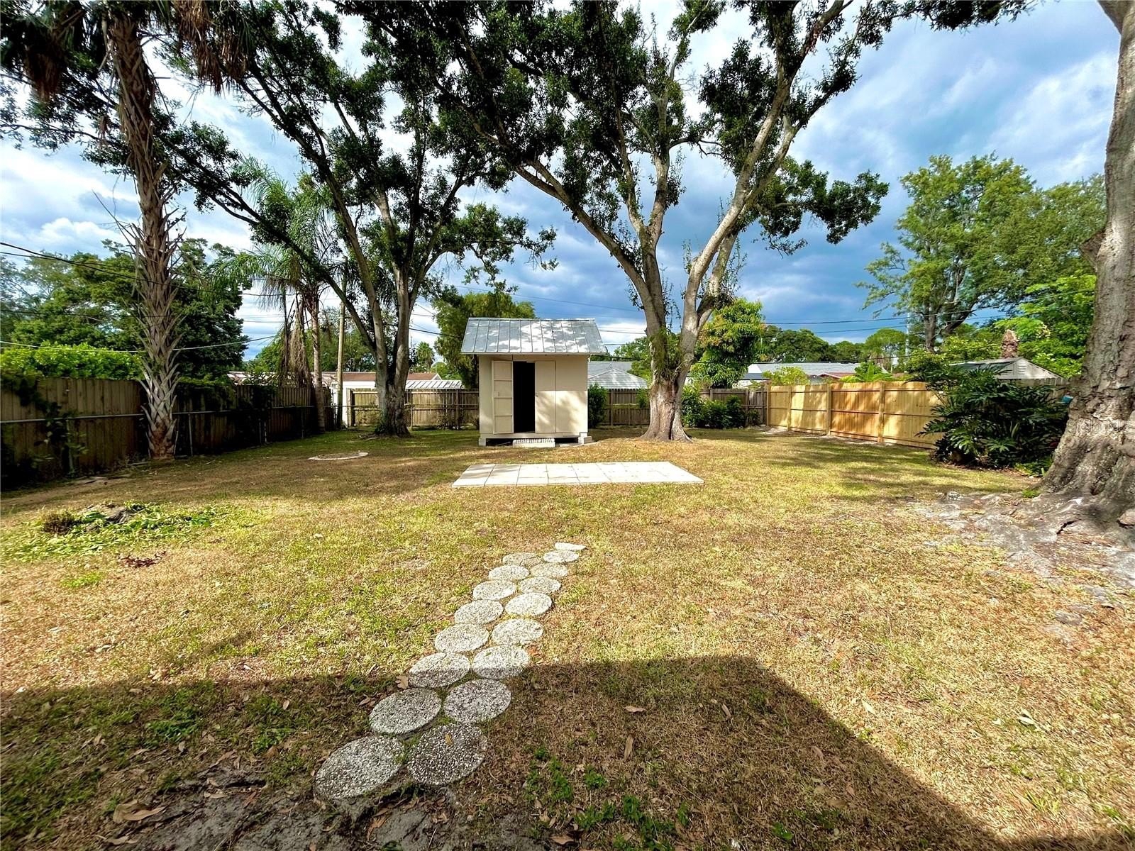 Beautiful original terrazzo floors run throughout, adding character and easy maintenance. The home also features an indoor laundry room for added convenience. Outside, enjoy a generous backyard with mature trees and a large shed equipped with electricity—ideal to transform into a workshop, storage, or creative studio. The property sits on a quiet street and has a newer roof (2021). It also held up exceptionally well during last year's storms, with only minimal water intrusion reported.