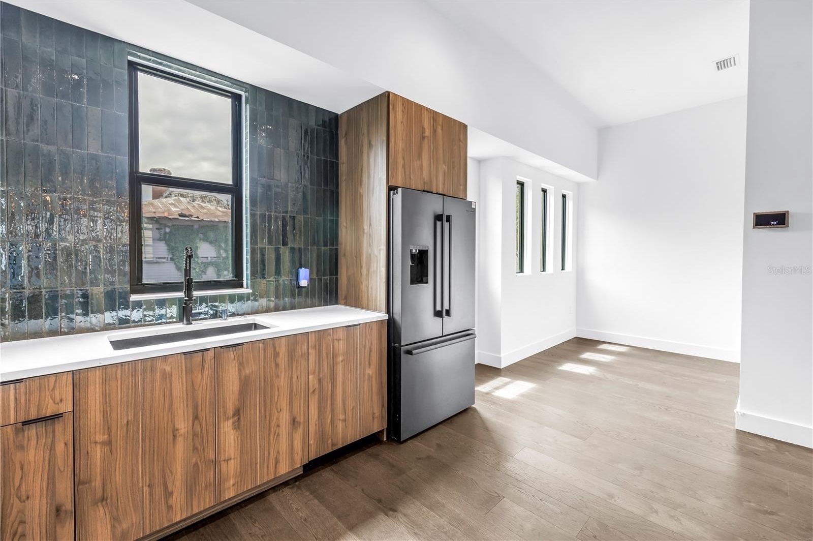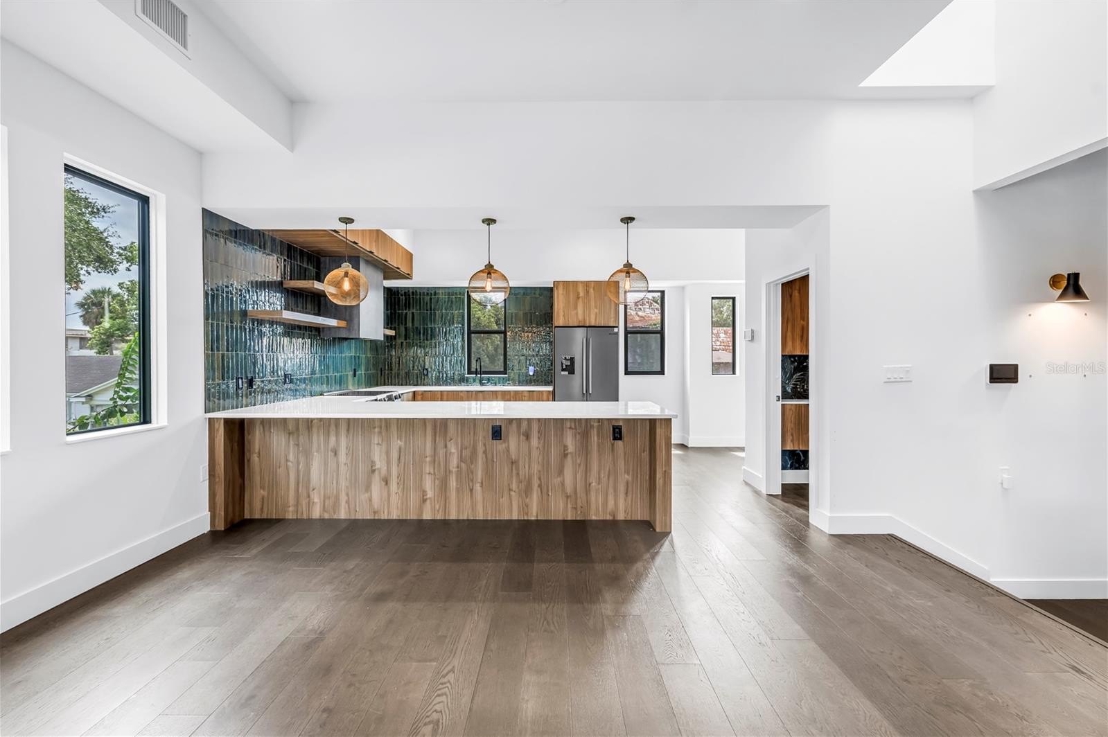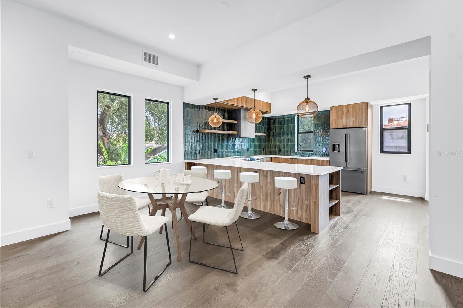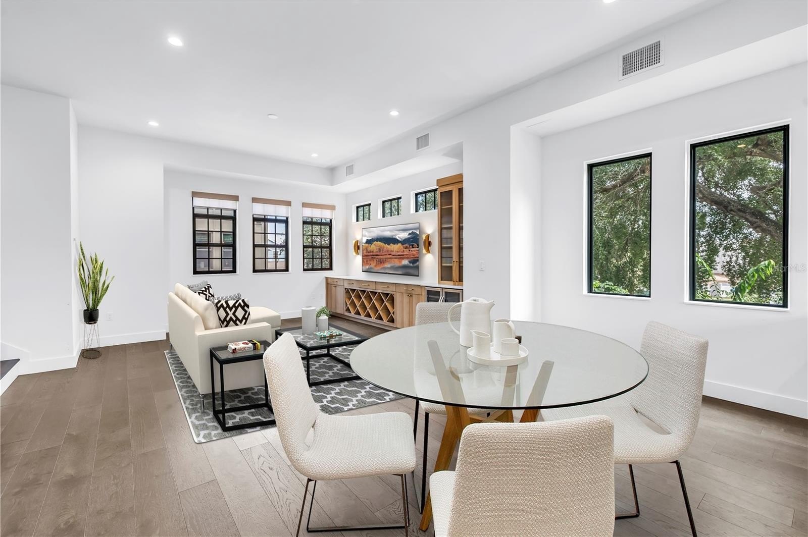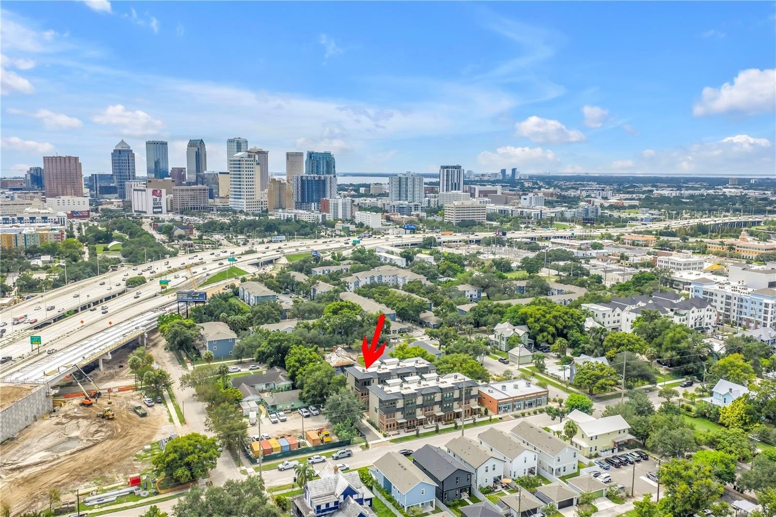 One or more photo(s) has been virtually staged. The seller is offering a $7,500.00 closing cost credit to the buyer. Welcome to this three-story masterpiece that exemplifies design and craftmanship. Located in the vibrant neighborhood of Tampa Heights, this home has great curb appeal with stunning architectural style featuring shale and brick accents and a Redwood entry porch. This home has engineered Oak hardwood flooring throughout. The first floor has a bedroom with designer wallpaper, closet with a built-in and a full bath. This bedroom could also be used as a home office. The staircase in this home is stunning with open custom steel with Oak treads. With an open concept living, the second floor is the main living area featuring a gourmet kitchen, breakfast nook, half bath, dining and living areas. The kitchen has custom solid wood cabinetry, Quartz counters, stainless steel appliances, pendent lighting, walk-in pantry and gorgeous glass tile backsplash. This living room has a built-in with a wine refrigerator. The third floor of this home has the primary suite, secondary bedroom with a full bath and a laundry closet. The primary suite has a large custom designed walk-in closet. The primary bath has double sinks, water closet and a walk-in shower with dual shower heads. Completing this home is an attached 2-car garage with an electric vehicle charging station. Built to last, this steel framed home is hurricane and termite resistant. Not in a flood zone, this home is located in one of the city’s most dynamic neighborhoods and it is close to sought after destinations such as Riverwalk, Armature Works and Downtown Tampa.