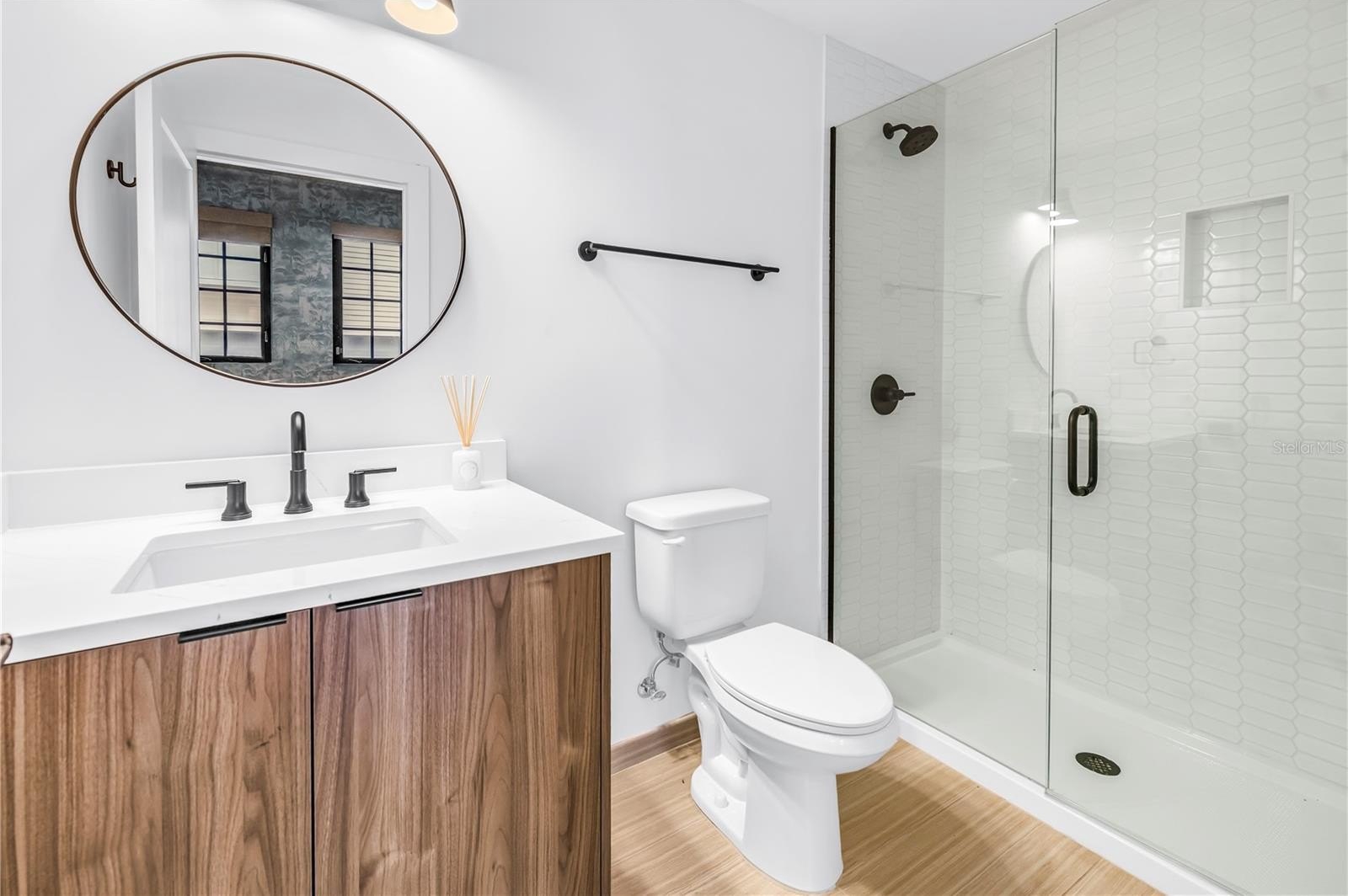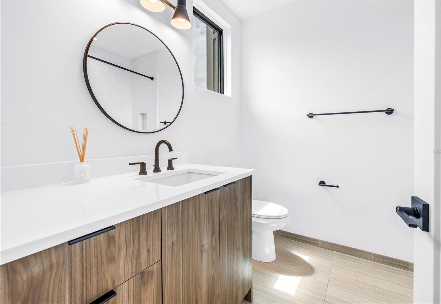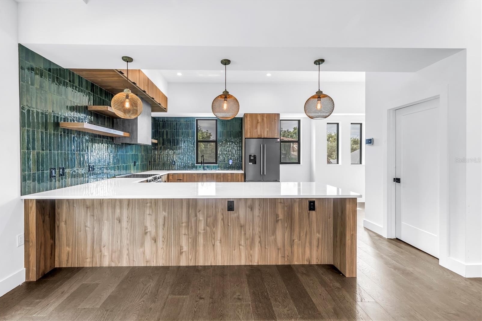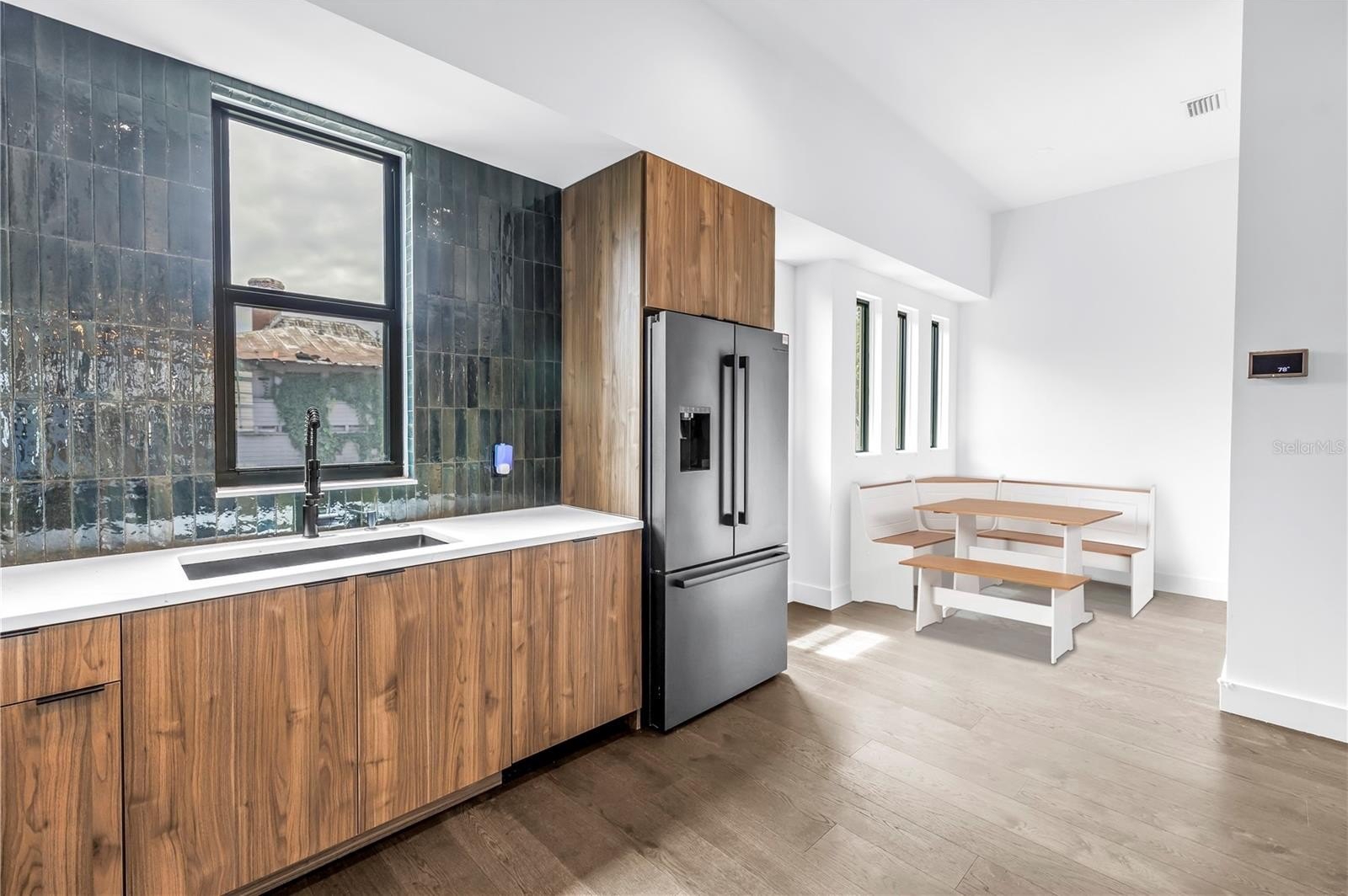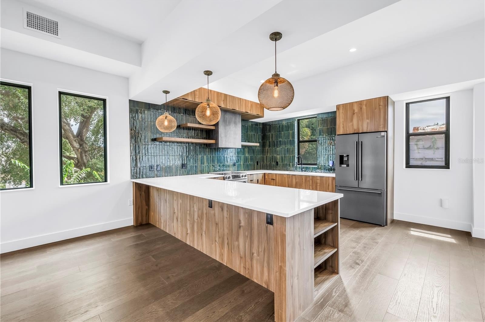 One or more photo(s) has been virtually staged. The seller is offering a $7,500.00 closing cost credit to the buyer. Welcome to this three-story masterpiece that exemplifies design and craftmanship. Located in the vibrant neighborhood of Tampa Heights, this home has great curb appeal with stunning architectural style featuring shale and brick accents and a Redwood entry porch. This home has engineered Oak hardwood flooring throughout. The first floor has a bedroom with designer wallpaper, closet with a built-in and a full bath. This bedroom could also be used as a home office. The staircase in this home is stunning with open custom steel with Oak treads. With an open concept living, the second floor is the main living area featuring a gourmet kitchen, breakfast nook, half bath, dining and living areas. The kitchen has custom solid wood cabinetry, Quartz counters, stainless steel appliances, pendent lighting, walk-in pantry and gorgeous glass tile backsplash. This living room has a built-in with a wine refrigerator. The third floor of this home has the primary suite, secondary bedroom with a full bath and a laundry closet. The primary suite has a large custom designed walk-in closet. The primary bath has double sinks, water closet and a walk-in shower with dual shower heads. Completing this home is an attached 2-car garage with an electric vehicle charging station. Built to last, this steel framed home is hurricane and termite resistant. Not in a flood zone, this home is located in one of the city’s most dynamic neighborhoods and it is close to sought after destinations such as Riverwalk, Armature Works and Downtown Tampa.
