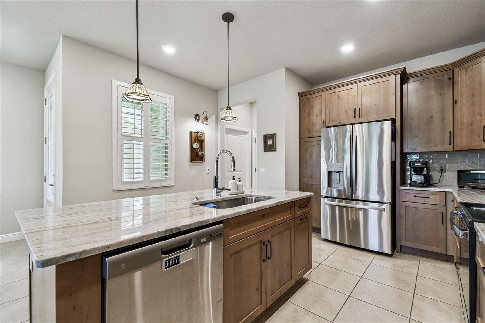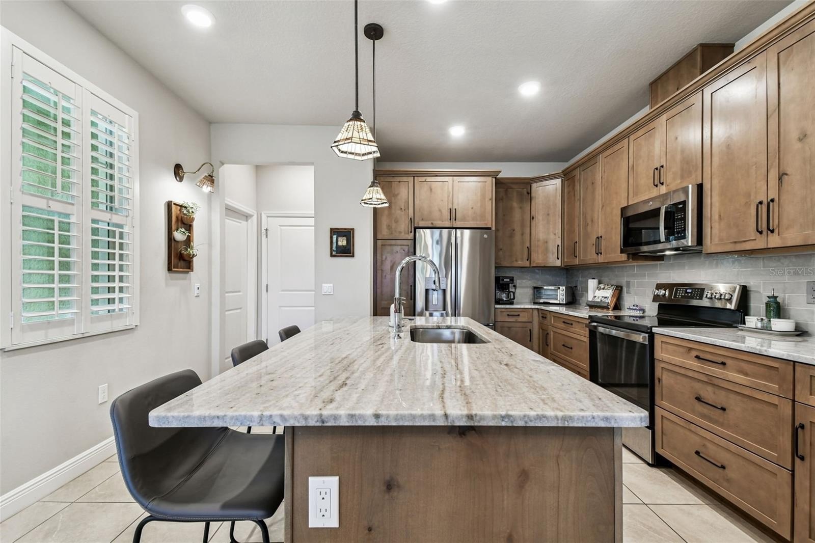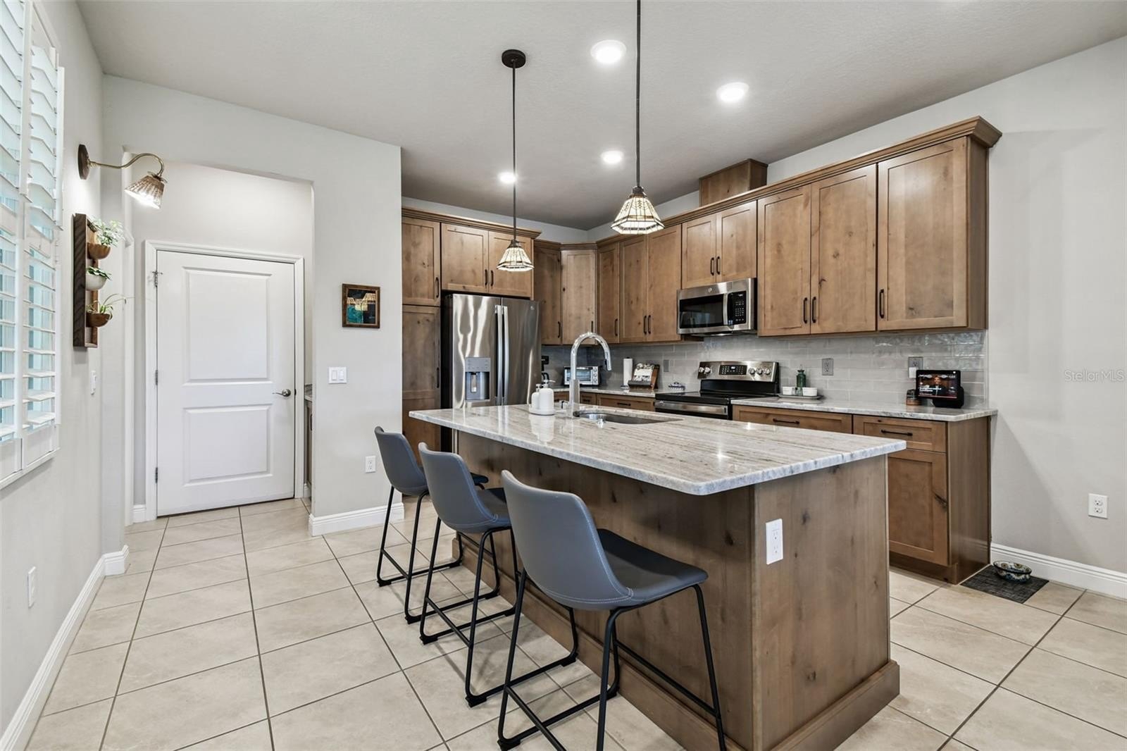 Welcome to your luxurious Palm Harbor townhome! Built in 2022 and thoughtfully upgraded with meticulous attention to detail, this stunning end-unit townhome blends comfort, style, and functionality. From the moment you step inside, you’ll feel right at home. At the heart of the home is a spacious open-concept great room, anchored by a chef’s kitchen featuring a large island that doubles as a breakfast bar—perfect for keeping the cook, family, and guests connected. A walk-in pantry offers ample storage, and every square foot has been maximized for smart living. Even your favorite pet has their own cozy retreat tucked under the staircase! Step through the sliding glass doors to your own private outdoor oasis—ideal for gathering around a firepit, sharing laughs, and making lasting memories. Upstairs, you’ll find a custom-designed laundry area and a generously sized primary suite that easily accommodates a king-size bed. The primary suite also features a walk-in closet and a beautifully appointed en-suite bathroom with a walk-in glass shower and dual vanities. Two additional bedrooms offer ample space for family, guests, or a home office. Natural light pours into this end-unit home, enhancing every room. The Plantation Shutters throughout are a wonderful touch. The attached two-car garage provides plenty of space for vehicles, motorcycles, or even a golf cart. The hurricane shutters are included and stored in the garage. Located just off the scenic Pinellas Trail, you’re perfectly positioned for an active lifestyle—bike to watch the sunset, stroll to the community pool, or enjoy quick access to shopping, dining, and Florida’s world-famous beaches.