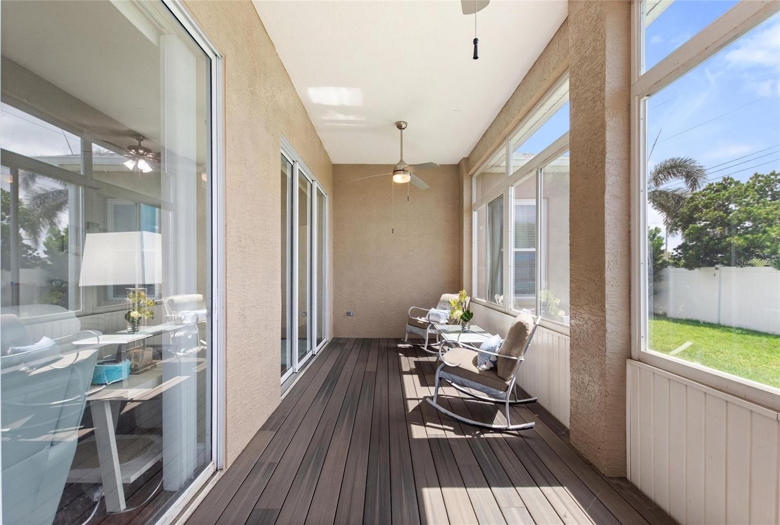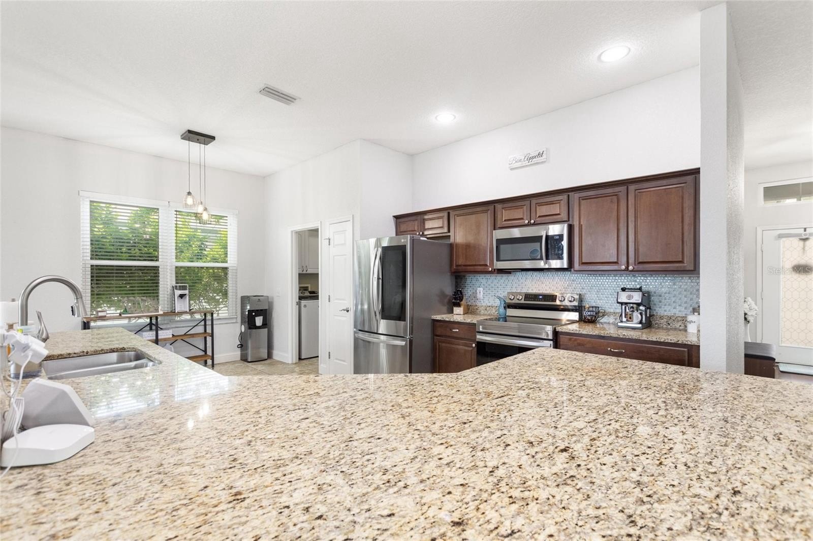 Welcome to 5104 52nd Ave W in Bradenton, a delightful four-bedroom, two-bathroom home located on a corner lot in the Glenn Lakes community. The property makes a striking first impression with its paved driveway and an inviting front porch featuring screen and double glass doors. Inside, the open floor plan is highlighted by engineered hardwood floors that flow throughout the living spaces and the primary bedroom. The spacious kitchen boasts granite countertops and stainless steel appliances, complemented by a large wrap-around breakfast bar that connects seamlessly to the great room, creating an excellent environment for entertaining. Adjacent to the kitchen and great room is a generous dining area. The three front bedrooms, which can also serve as two bedrooms and a den, feature laminate flooring, built-in closets, and ample natural light, sharing a full bath with a tub/shower combination. The primary bedroom offers a walk-in closet and an en-suite bath adorned with custom tile, a large soaking tub, and dual sinks with mirrors. The outdoor living area offers an ideal setting for enjoying your morning coffee or unwinding with a captivating book. The yard is fully enclosed, ensuring your privacy. Conveniently situated near beaches, shopping centers, restaurants, and major highways, this home provides easy access to various amenities. Schedule your appointment today; you will not be disappointed.