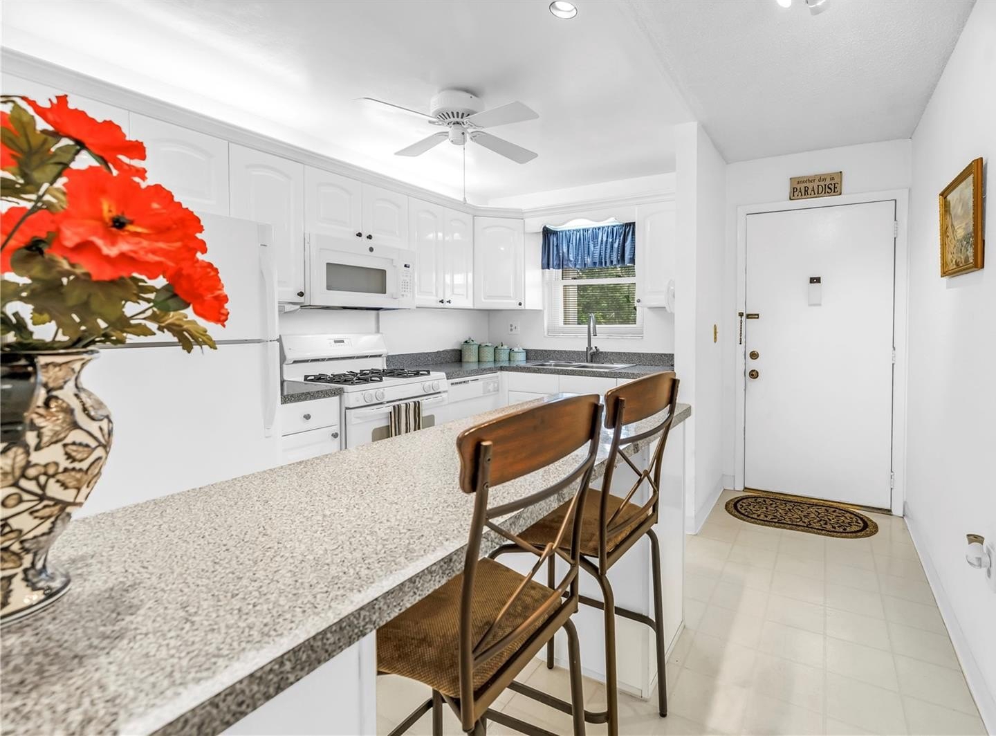 Tucked away in a serene, gated 55+ community, this desirable 2-bedroom, 2-bath corner-unit condo offers both comfort and convenience. Overflowing with natural light, the open-concept layout welcomes you into a spacious living area perfect for relaxing or entertaining. The kitchen features updated cabinetry, a generous breakfast bar, and gas cooking—plus a brand new (2024) gas HVAC system, helping to keep energy costs low.