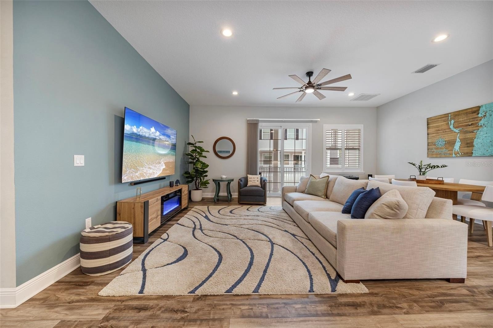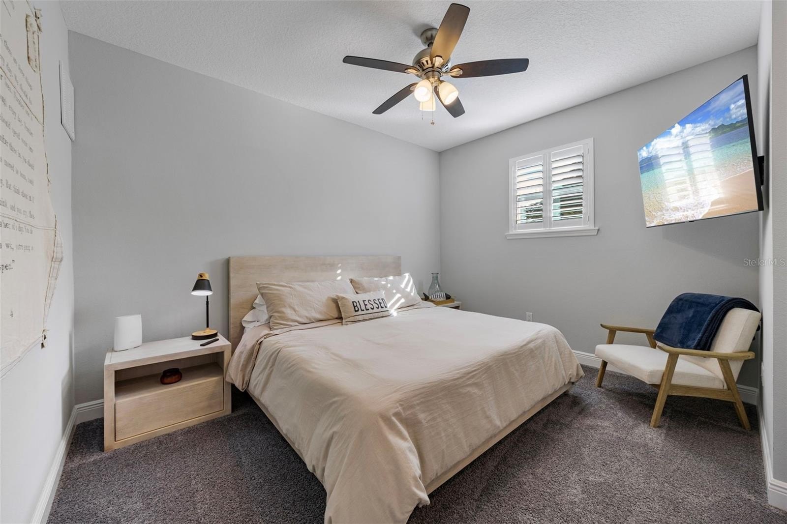 The main living area opens to a breezy balcony—perfect for morning coffee or sunset gatherings—while the lower-level suite offers a private retreat for guests or in-laws with its own lanai and newly extended patio pavers. Upstairs, the primary suite is joined by two additional bedrooms and a versatile loft ideal for an office or cozy den.