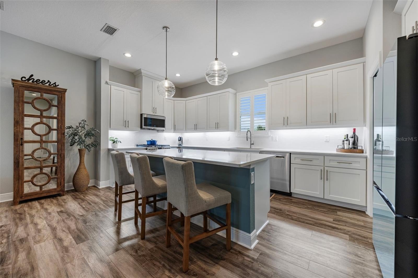 Every element reflects thoughtful craftsmanship and refined taste. The kitchen features new, upgraded appliances, custom cabinetry with pull-out drawers for smart storage, and fresh quartz countertops—all set within a bright, open layout that blends seamlessly into the home’s modern design. Throughout the home, curated finishes, coastal shutters, custom closets, and design-forward details speak to both quality and intention, while tongue-and-groove ceilings in the inviting outdoor spaces add warmth and character. A new tankless water heater and whole-home filtration system complete the list of thoughtful updates designed for everyday comfort and efficiency.