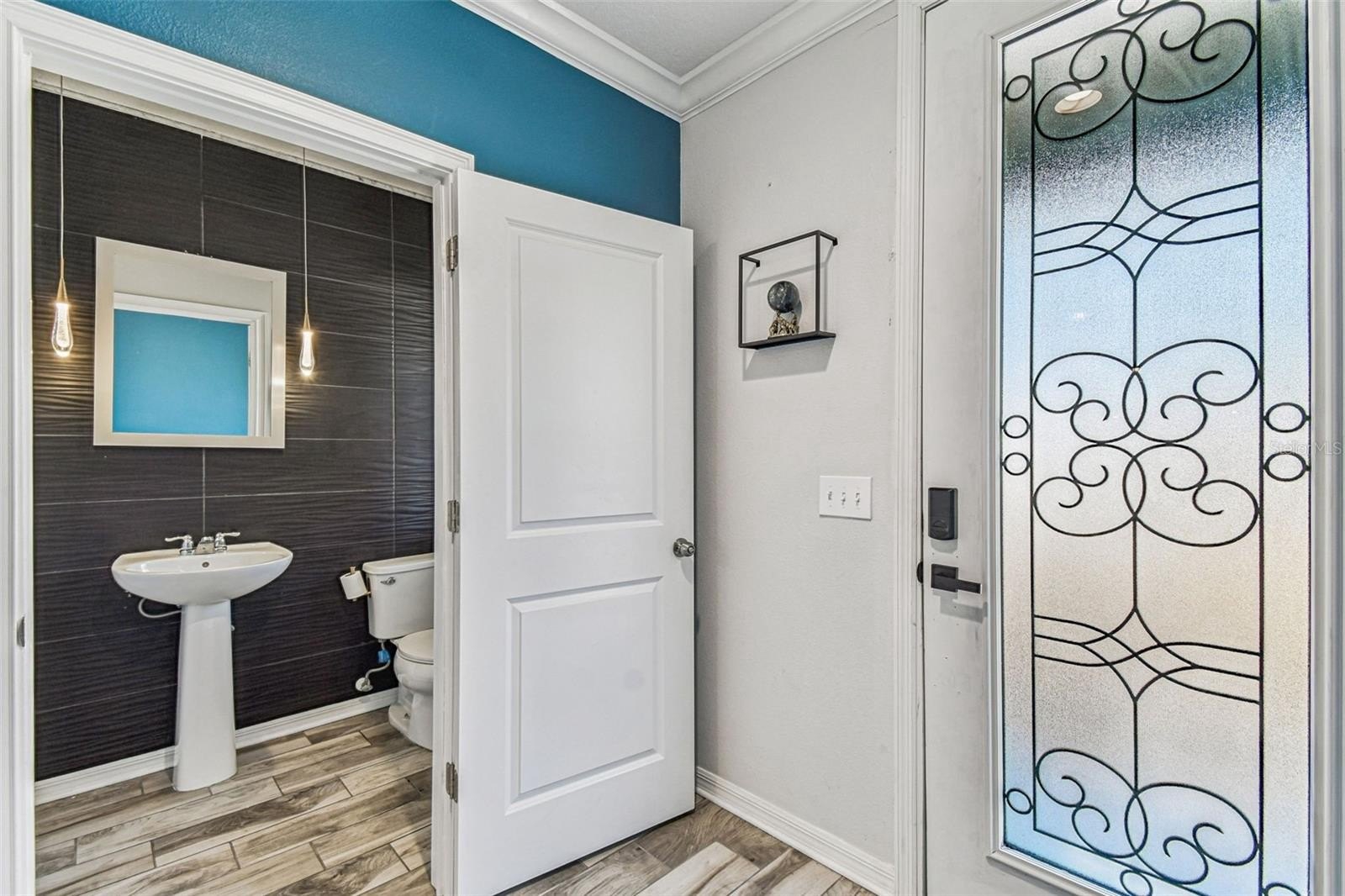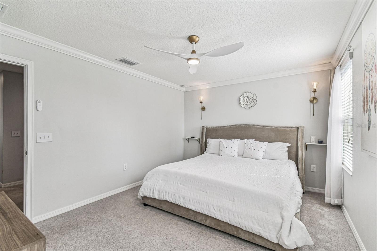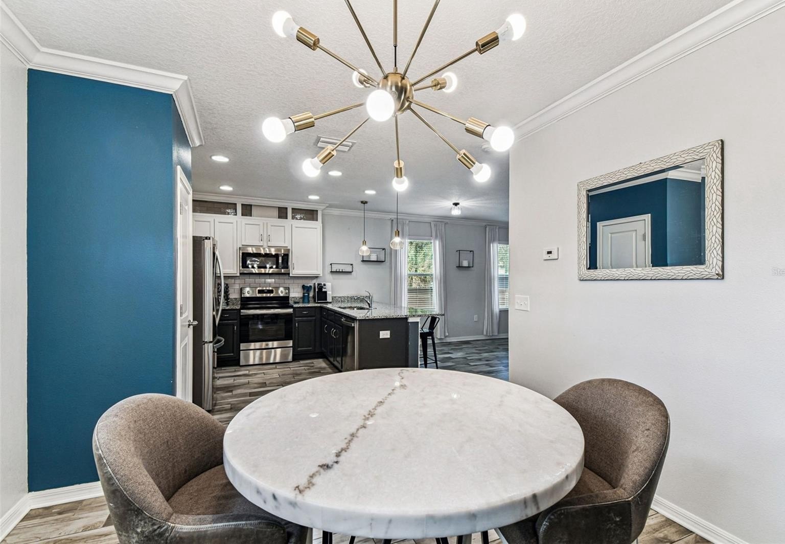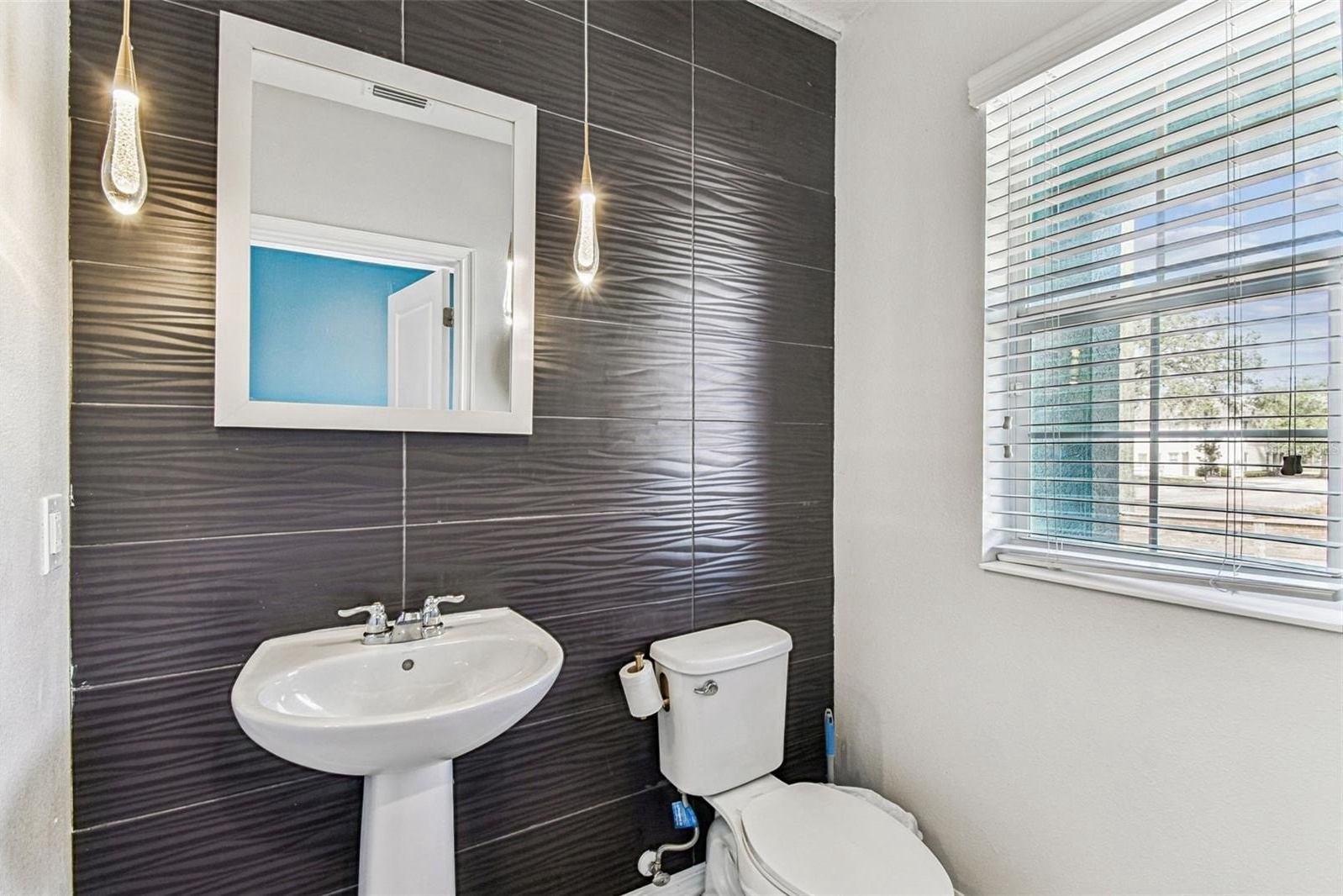 Recent upgrades include CROWN MOLDING throughout the first floor and primary suite, CUSTOM BUILT KITCHEN CABINETS with a coordinating backsplash, and built-in storage cabinetry for added functionality. The living and dining rooms feature decorative 3D porcelain ACCENT WALLS, while the kitchen includes added pendant lighting and UPGRADED WIRING.