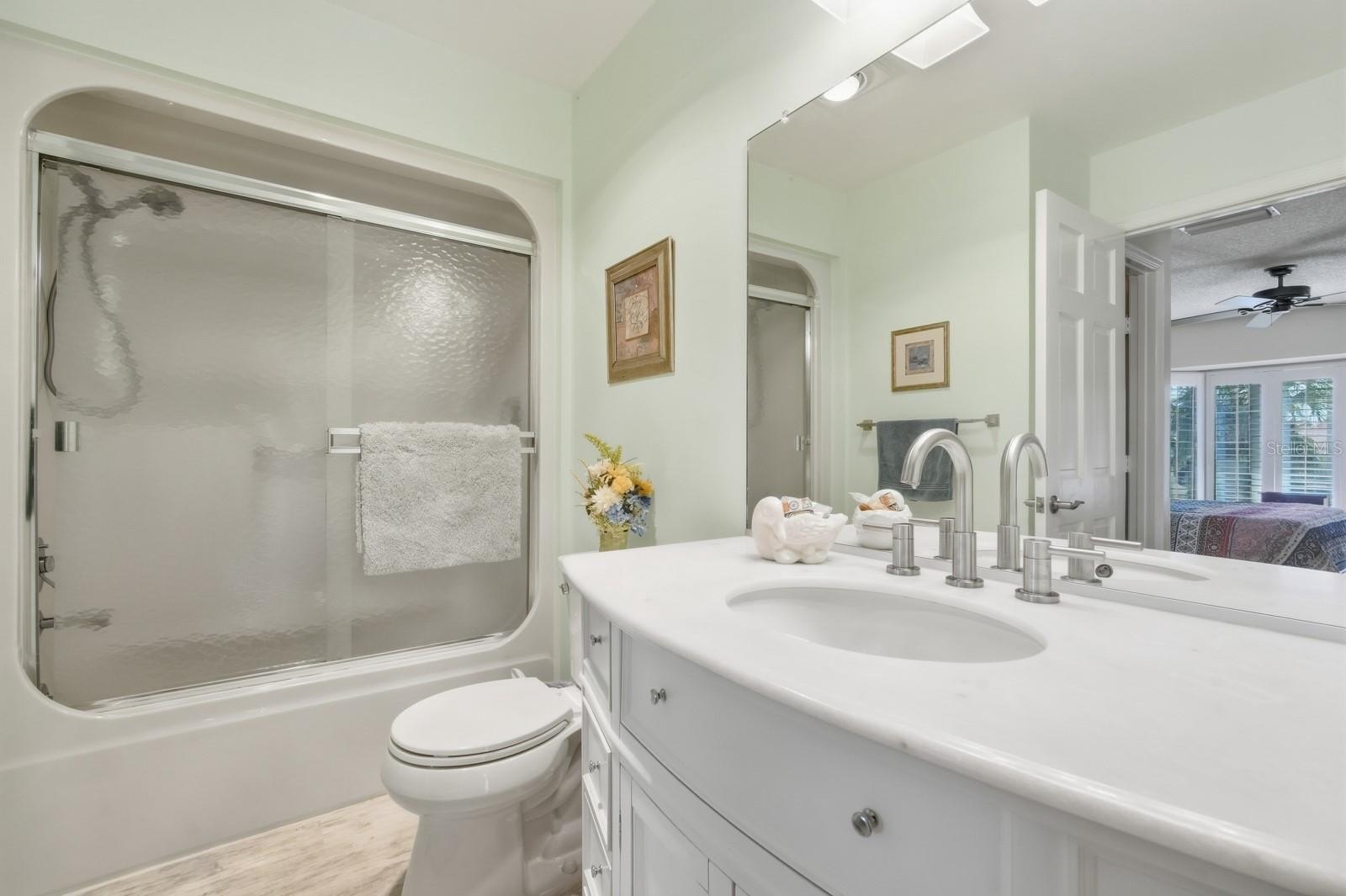 Inside, you’ll find a bright open floor plan and a remodeled kitchen designed for both style and function. The primary suite feels like a spa retreat, featuring double sinks, a freestanding soaking tub, and a separate shower.
