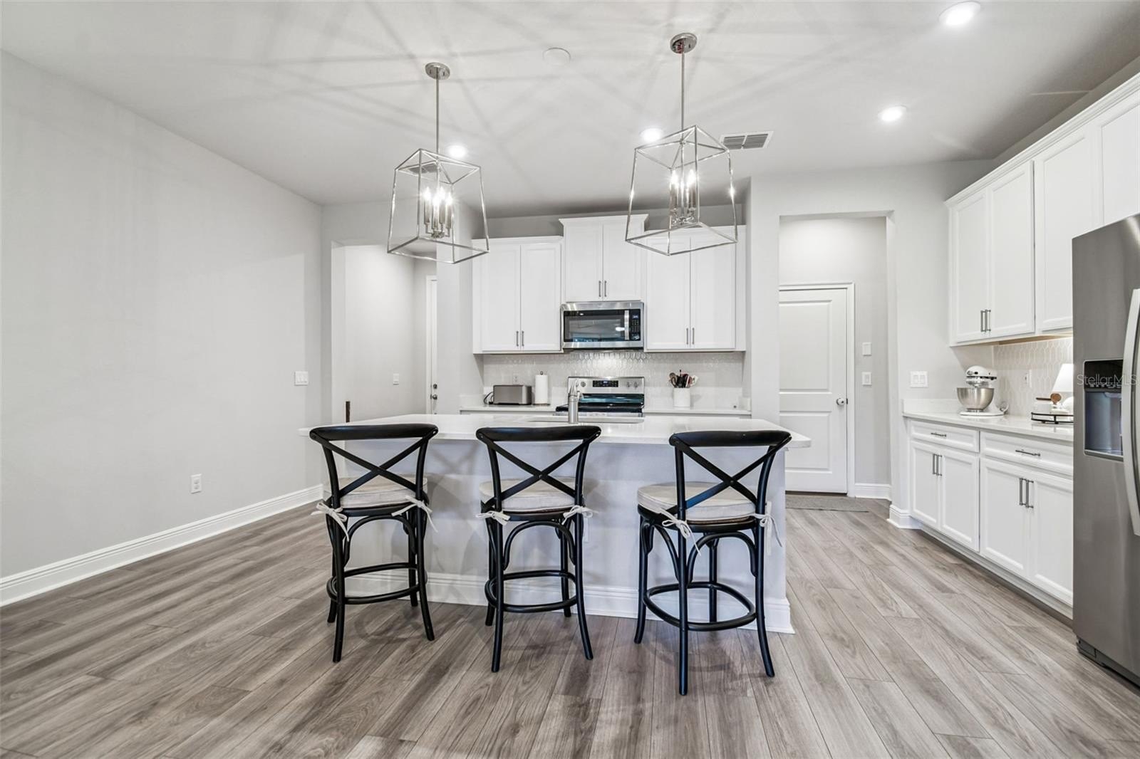 Welcome home to this beautiful townhome in the gated community of Avea Pointe in one of Hillsborough County’s most desirable areas! This move-in ready townhome offers a 3 bedroom with sizable loft, 2.5 bathroom, 1 car garage with an extended driveway, and WATER VIEWS. Built in 2020 by Mattamy Homes, this home offers low maintenance living. Come inside to a breathtaking yet modern cozy design that is light and bright. Open floor plan leads you to the heart of the home to include the kitchen and living space. The kitchen has been elegantly designed with 42 inch cabinets and trim detail, stainless steel appliances, a neutral tile backsplash, sparkling quartz countertops, and tons of storage. There is extra space for a coffee bar. Spacious center island provides additional seating and allows for easy conversation. There is space for a dining room table as well. Living area has high ceilings, luxury vinyl flooring throughout the main floor for durability and style, and serene views of the outside. 1/2 bath for convenience. Upstairs, a large loft offers flexible space for a media room, home office, or play area. The primary retreat is situated on one end of the upstairs for privacy. Beautiful bathroom with tiled walk in shower and glass enclosure, dual quartz vanities, and ample storage. There are two closets for convenience, one being a spacious walk-in. The primary space is the perfect spot to relax. Down the hallway are 2 large bedrooms with generous closet space that share a full bathroom. Storage closets throughout this amazing floor plan provide extra space. The screened in back porch overlooking the water is complete with sun shades for year round comfort. The backyard space is stunning and the local wildlife is everywhere. Residents of Avea Pointe enjoy resort-like style amenities including a community swimming pool with an inviting deck area, grill area, and play park. Easy access to the Veterans Expressway for travel to Tampa and the International Airport. Zoned for A+ schools which are nearby, hospital, grocery stores, restaurants, high-end shopping/outlet mall, and entertainment are all at your fingertips. Make sure to view the guided video.