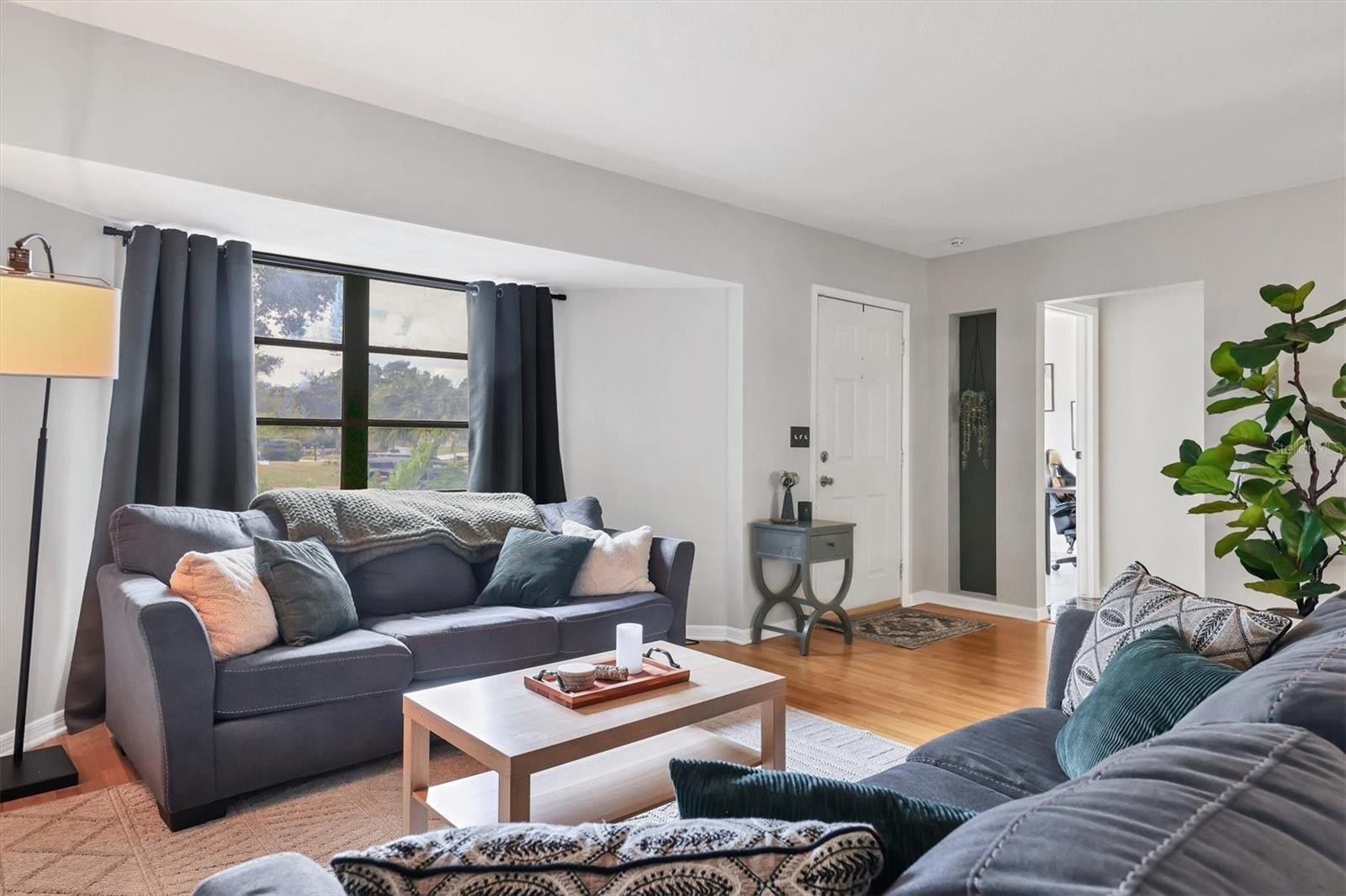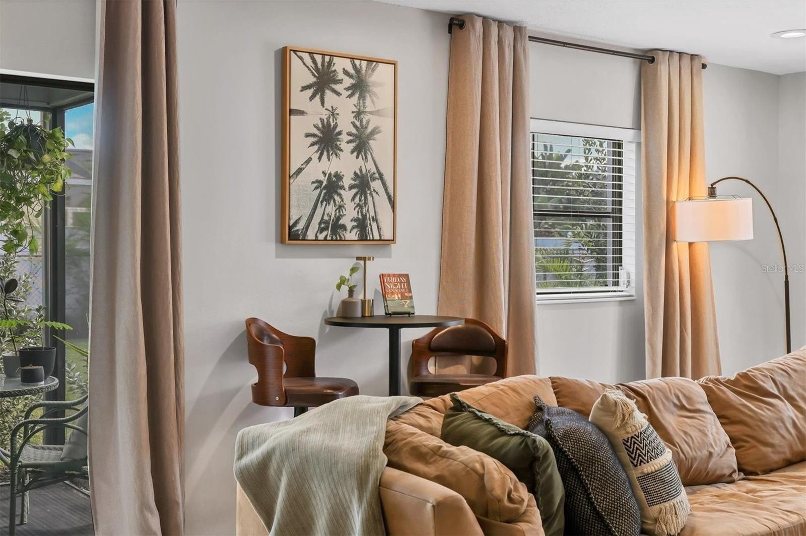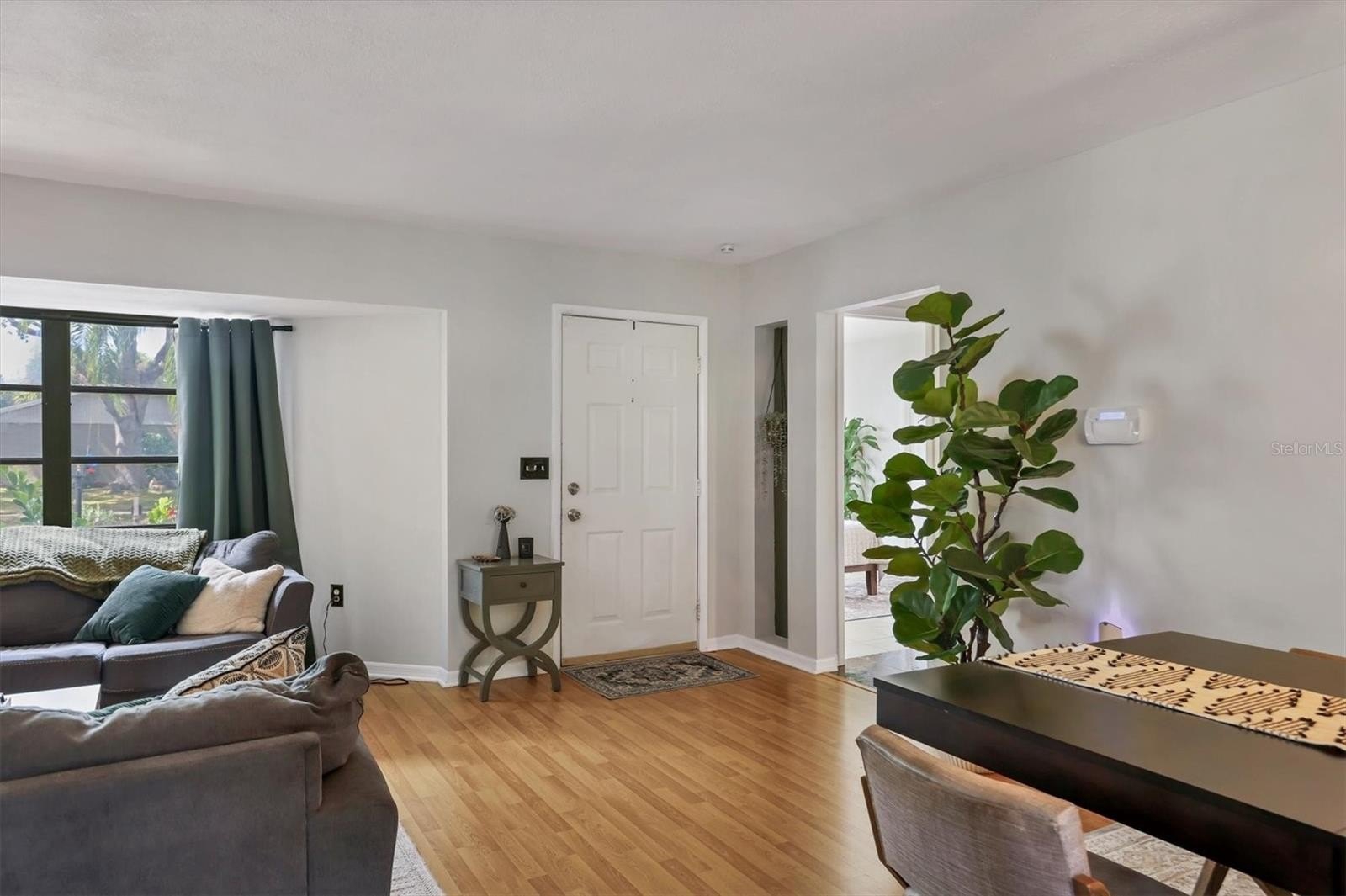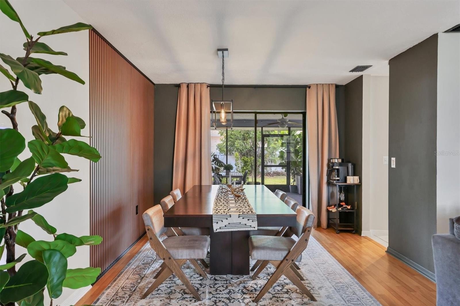 From the moment you step through the door, you’ll notice the meticulous care and attention this home has received. The inviting living and dining areas feature continuous laminate flooring and a stylish modern boho-inspired accent wall. The open great room design includes pocket sliding glass doors that lead to the lanai, seamlessly blending indoor and outdoor living.