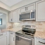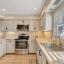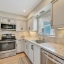 The modern kitchen features updated countertops, stainless steel appliances, recessed lighting, and cabinets with pull-outs for convenience.