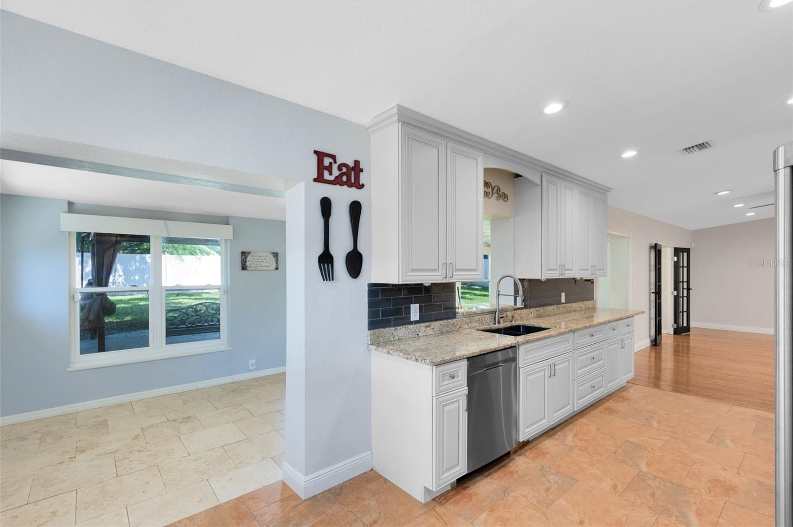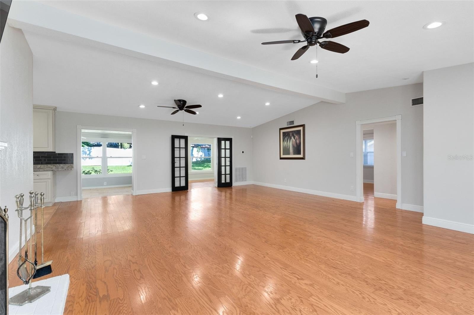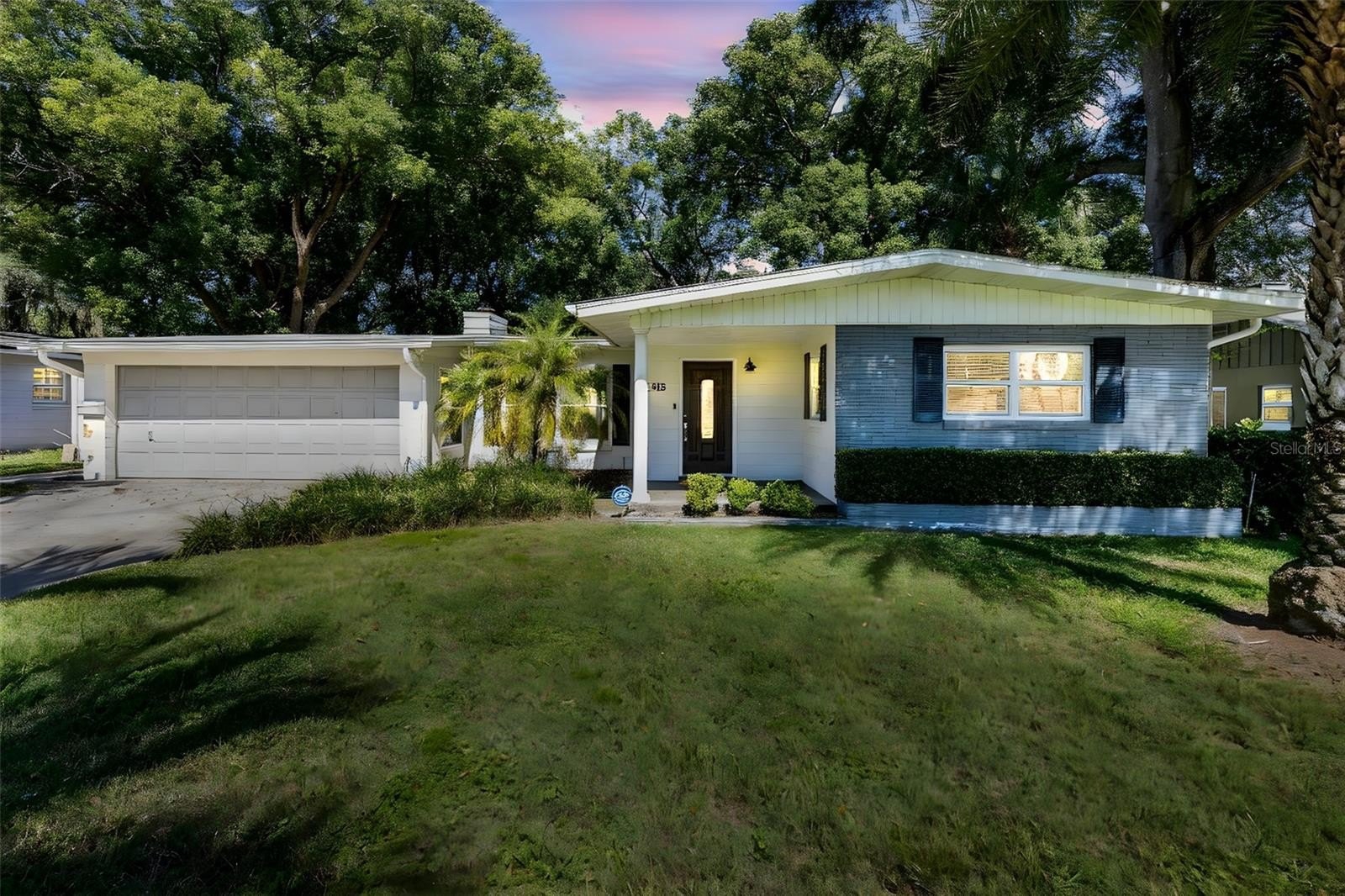 Beautiful mid-century modern 3 bed, 2 bath, 2 car garage + OFFICE, one-story home on the tree-lined street of Oakland Shores Neighborhood in Maitland. Special highlights in this sunny, open floor plan home include warm hardwood flooring (no carpet!), vaulted ceilings, a large Florida room overlooking the fully fenced-in backyard, updated kitchen and baths, and a wood-burning fireplace in the family room. NEW energy-efficient WINDOWS throughout, professionally-installed built-in closets, smart house lighting + floodlight cameras, and soothing paint colors make this house a beautiful place to come home to. The kitchen is a chef’s delight with ample counter space, stainless steel appliances, a deep farmhouse sink, and lots of cabinetry for storage. Love to entertain? Dine al fresco on the large outdoor patio under the shade trees or take the party indoors and host family and friends in the beautiful Florida Room overlooking the big, grassy green backyard. A home office featuring french doors and backyard views is located just off the kitchen and family room. NO HOA. This well-loved and well-maintained Maitland home is just minutes to Maitland City Centre, the JCC, Publix Shopping Center, and about 10 minutes to Park Ave and all the shopping and dining you could want along 17-92. Call today for your private showing.